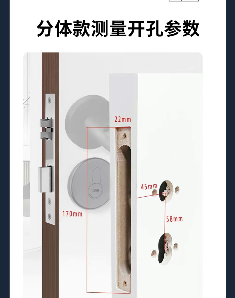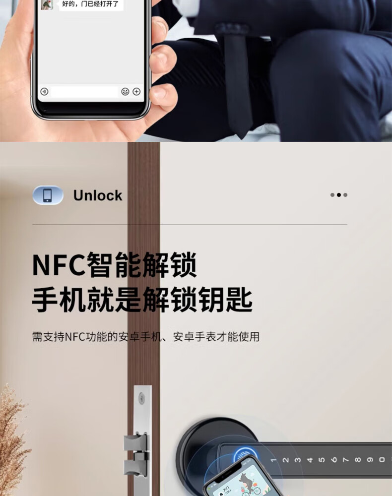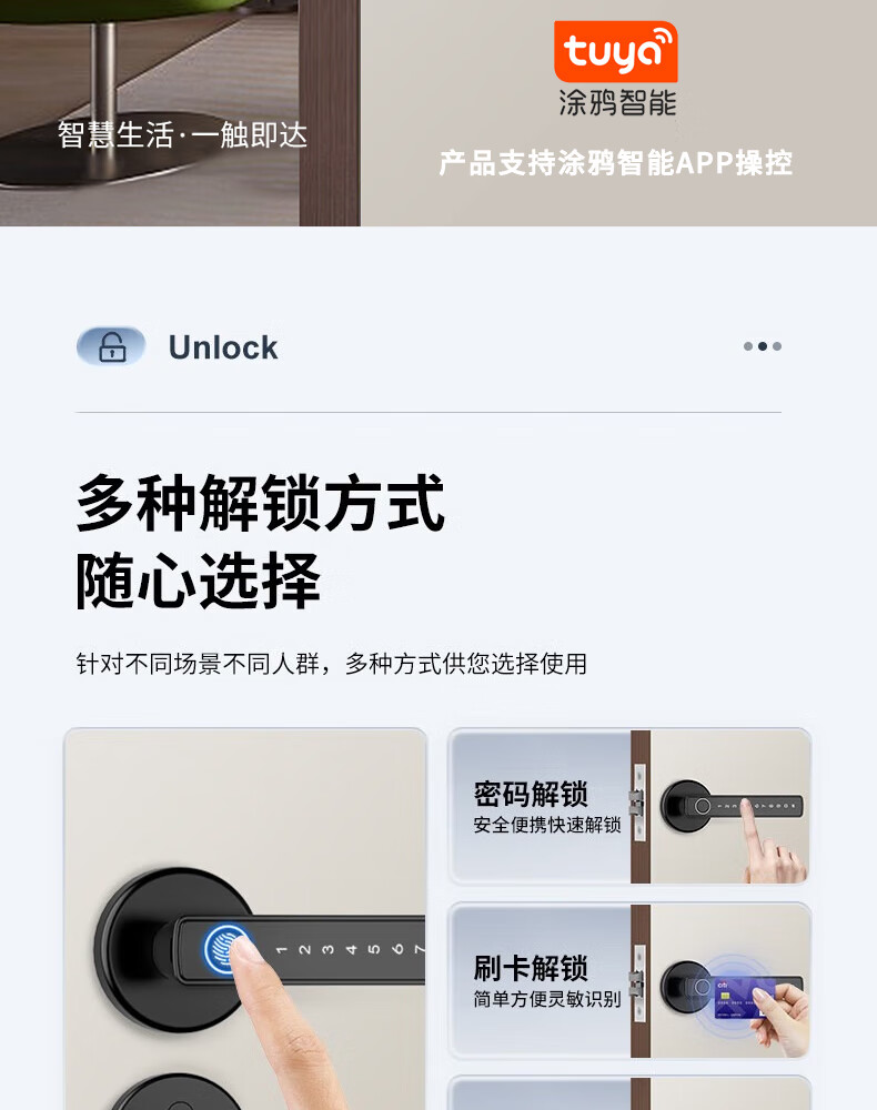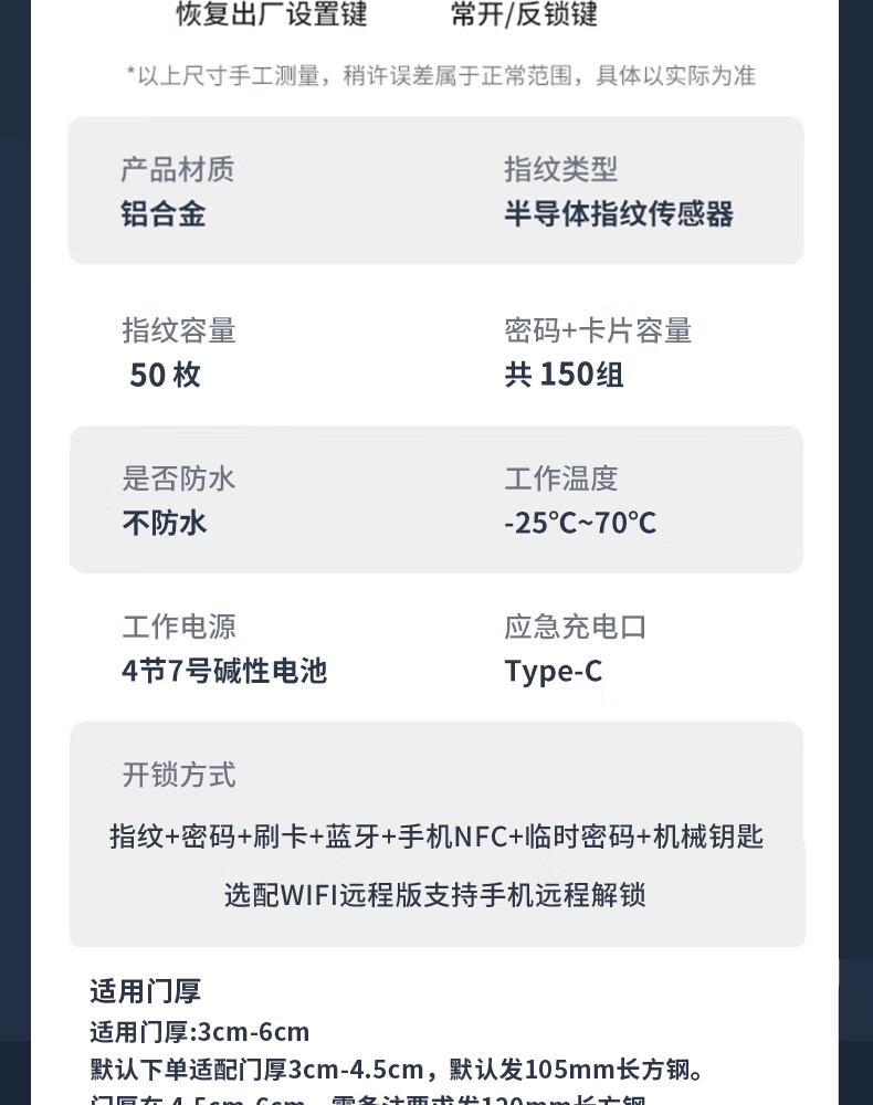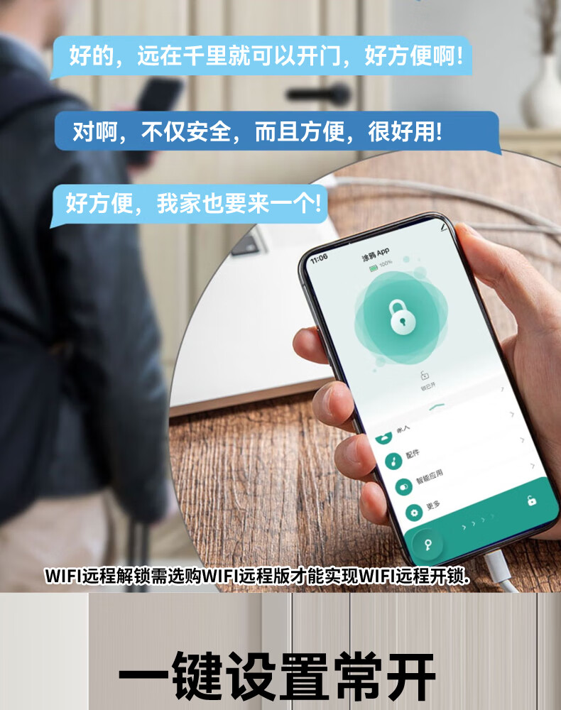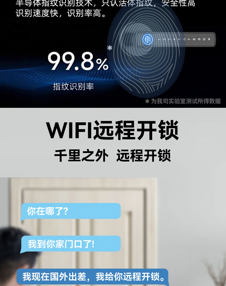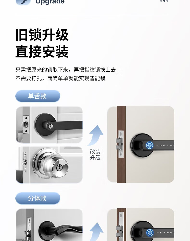 法雷斯顿 FALEISTON指纹木门锁室内门密码锁卧室智能门锁办公室门把手电子锁公寓民宿 黑色单舌款-智能蓝牙版(APP管理)