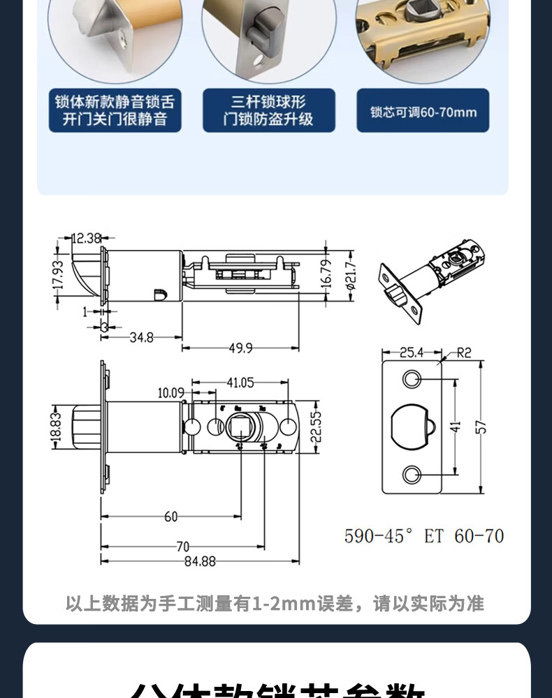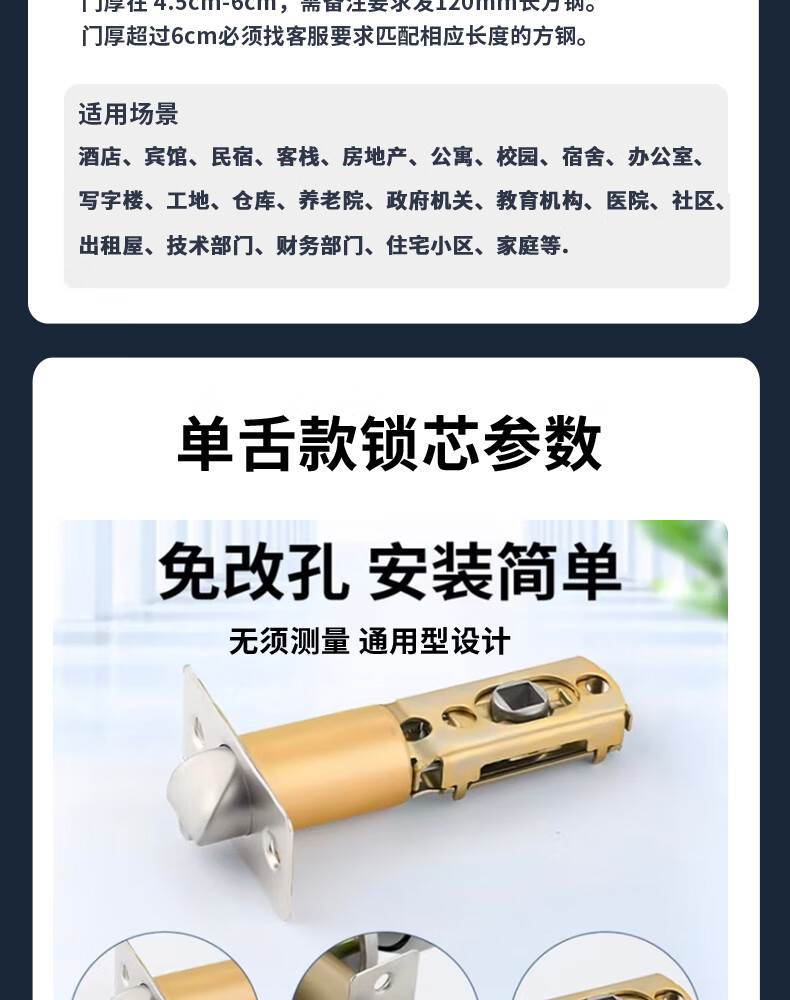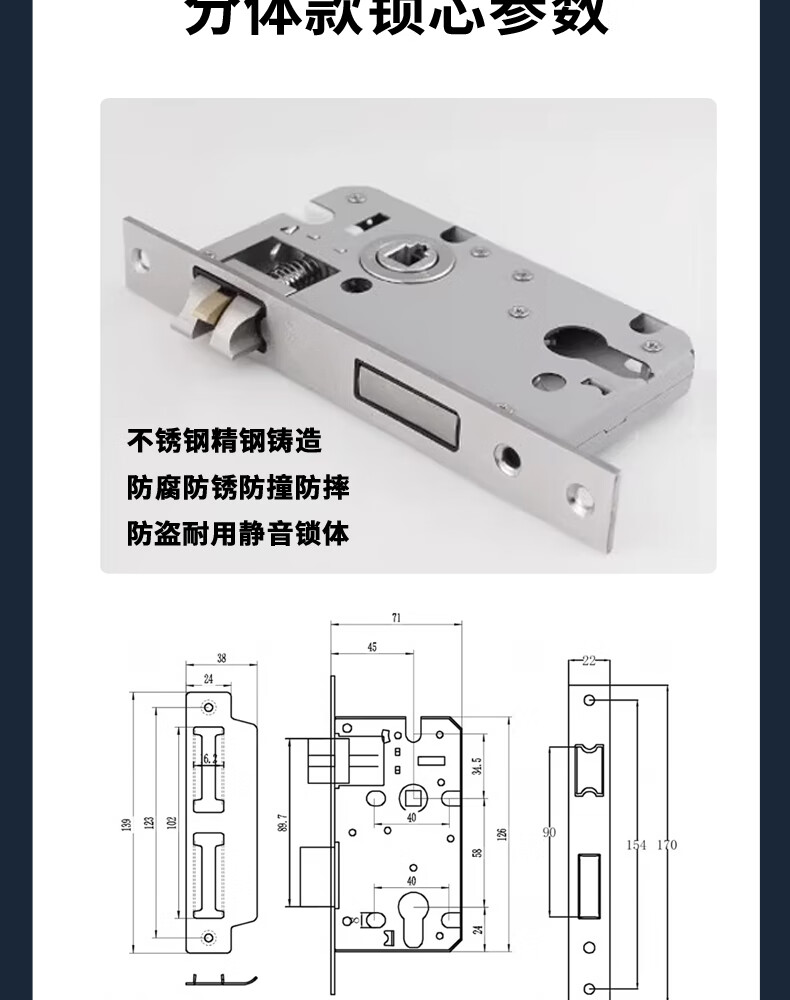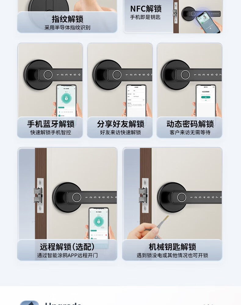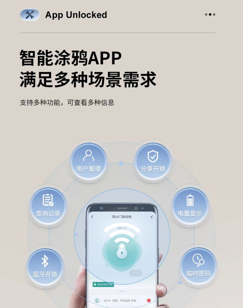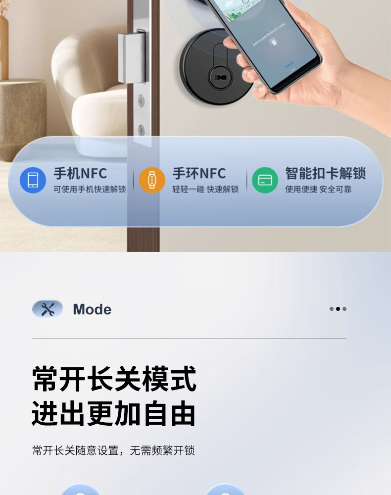 法雷斯顿 FALEISTON指纹木门锁室内门密码锁卧室智能门锁办公室门把手电子锁公寓民宿 黑色单舌款-智能蓝牙版(APP管理)
