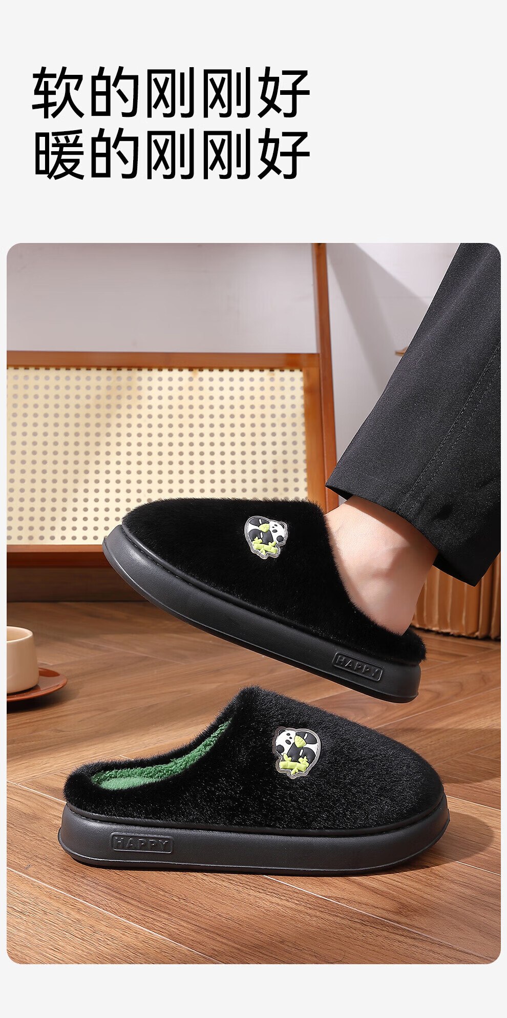 FZT踩屎感棉拖鞋男士秋冬季2025新款室内家居毛绒保暖防滑厚底棉拖男 黑绿【居家保暖、小熊猫】 42-43 标准码