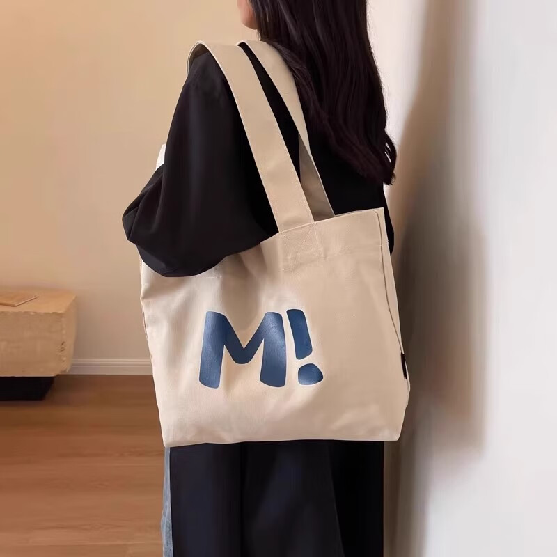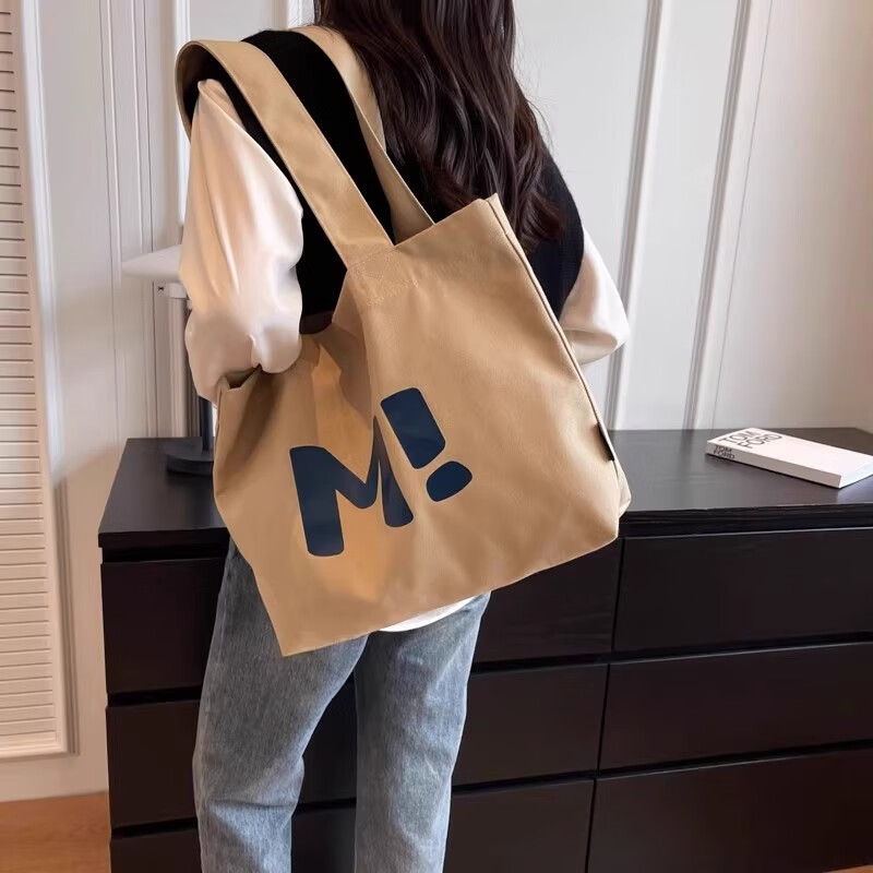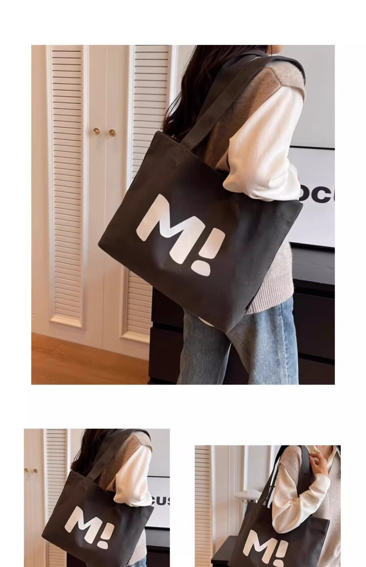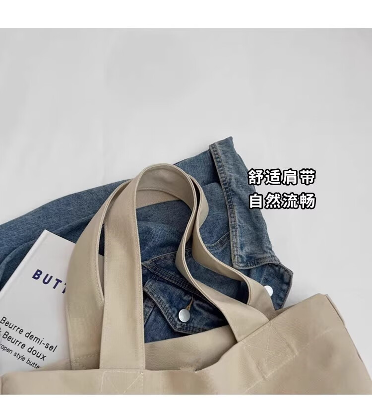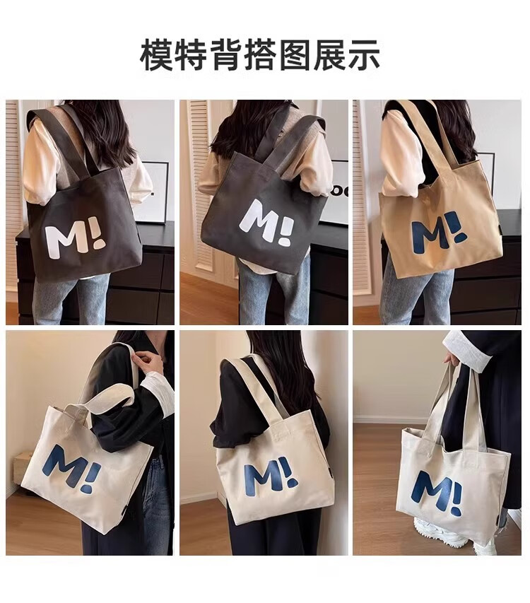 【直发】帆布包女2024新款单肩包休闲大容量韩版学生书包文艺百搭 黑色