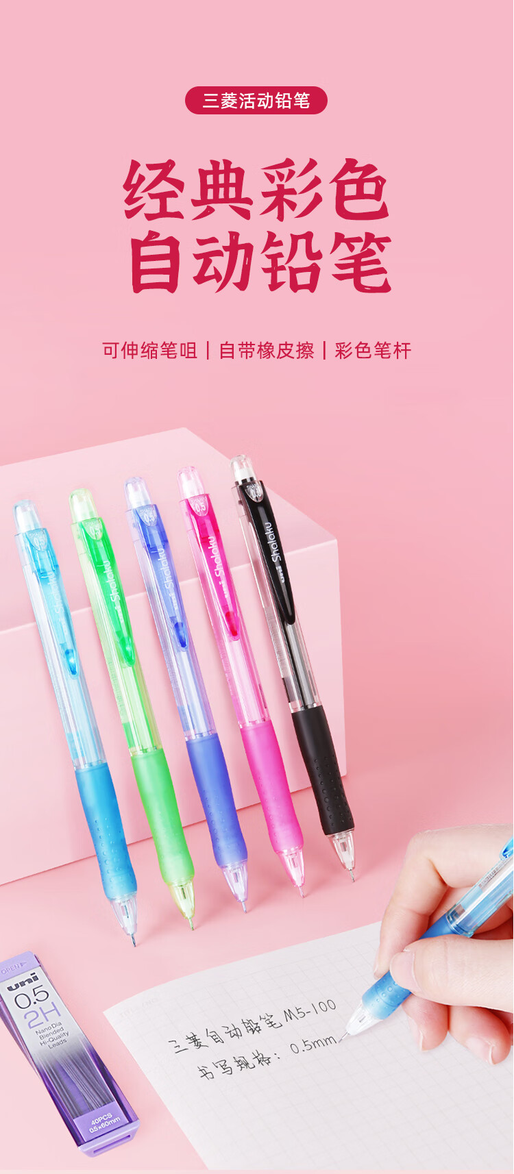uni三菱 M5-100自动铅笔0.5mm幼儿园小学生一年级活动铅笔高颜值带橡皮擦学习文具办公用品 1支