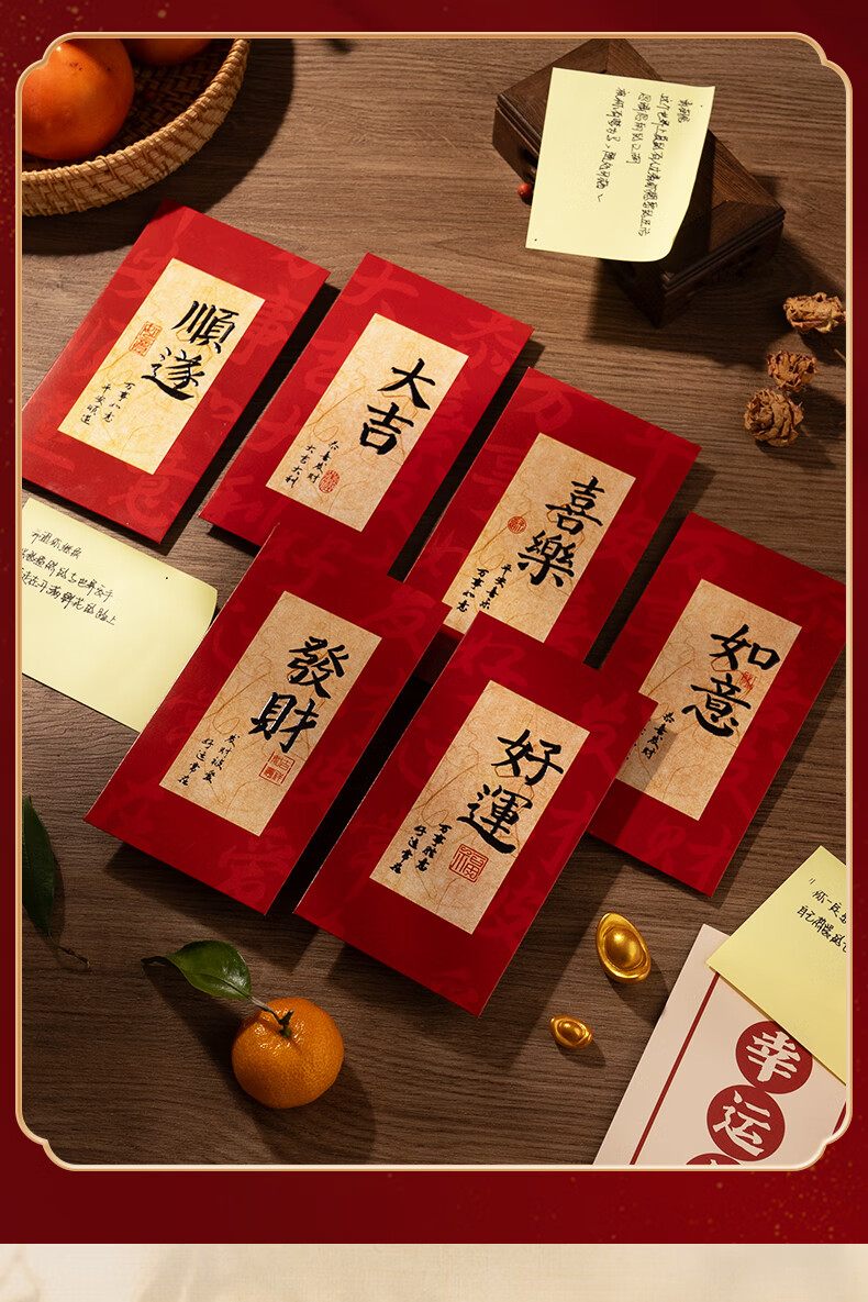 千棵树新年利是封大吉大利红包通用福字万元千元压岁过年2026书法红包袋 财神送福 24个装
