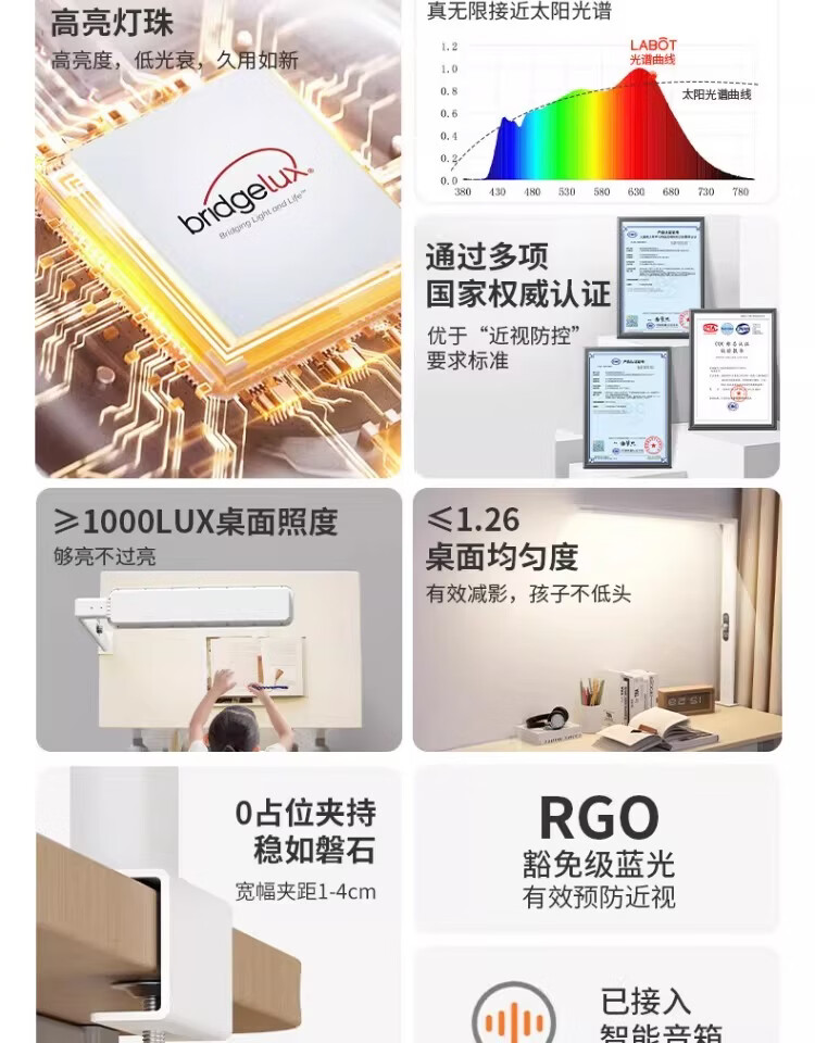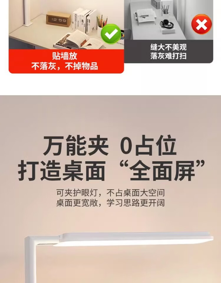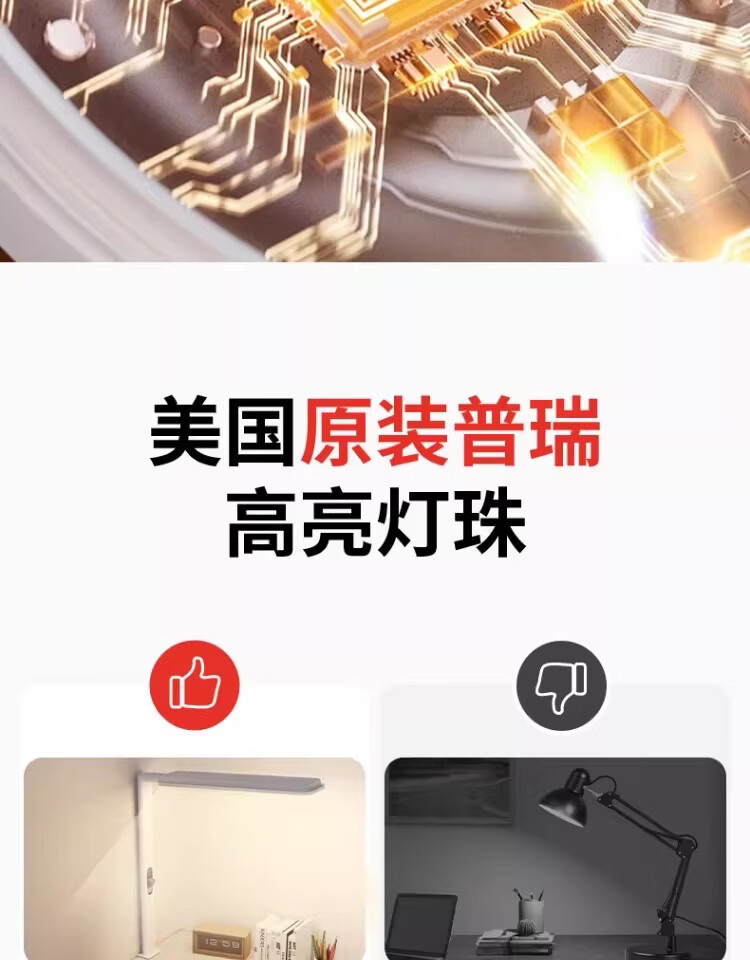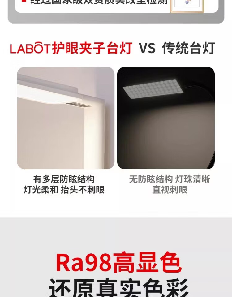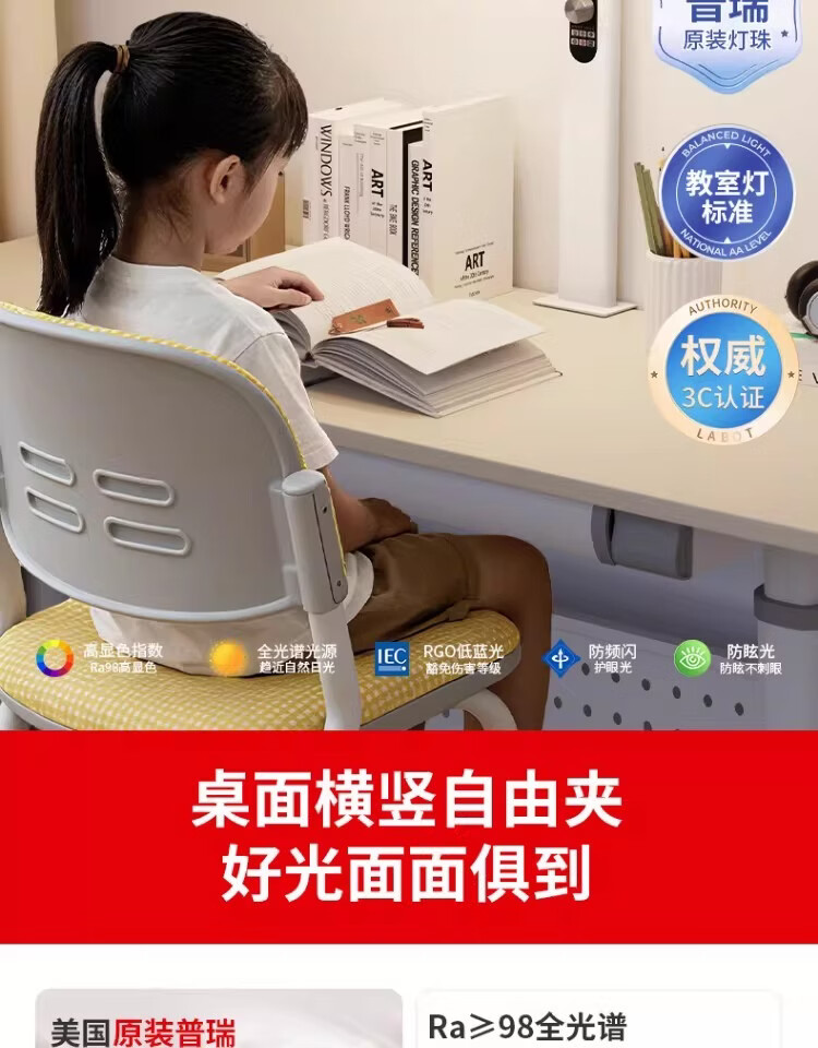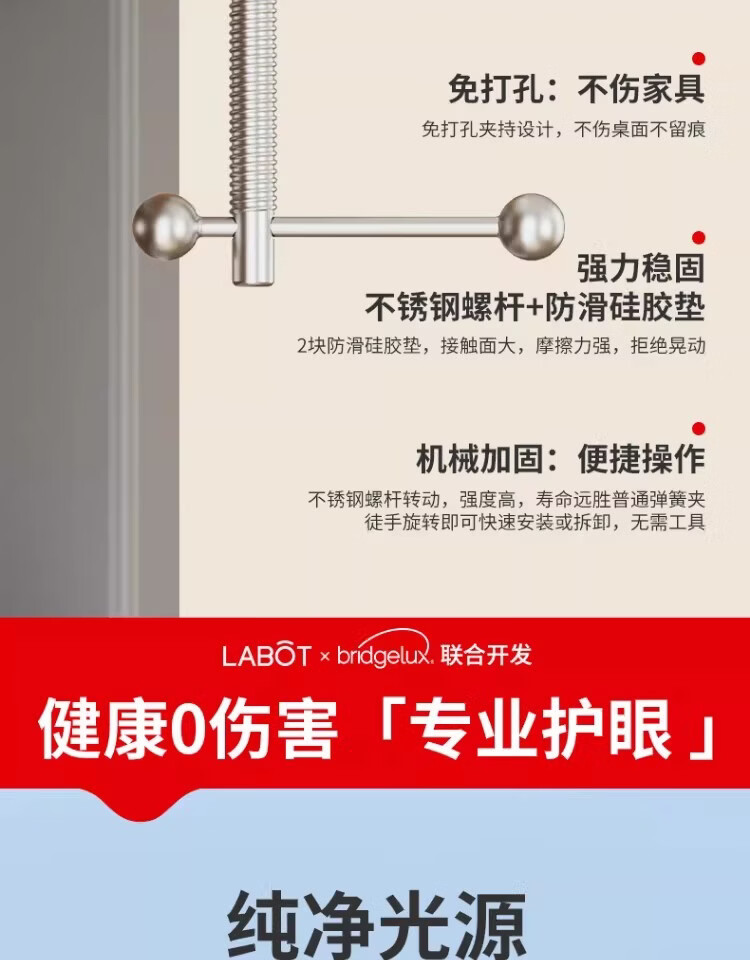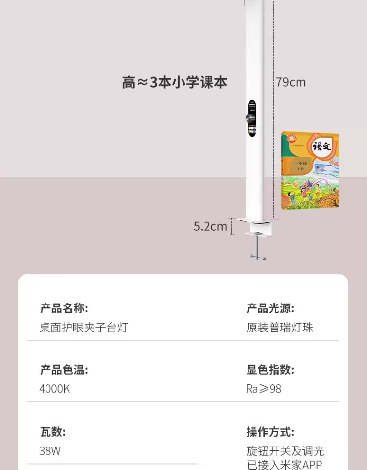 拉伯塔夹式台灯全光谱普瑞护眼儿童学习专用书桌面阅读防近视夹子大路灯 40W【夹子款】全光谱高显色 【自然光4000K】正品美国普瑞光源
