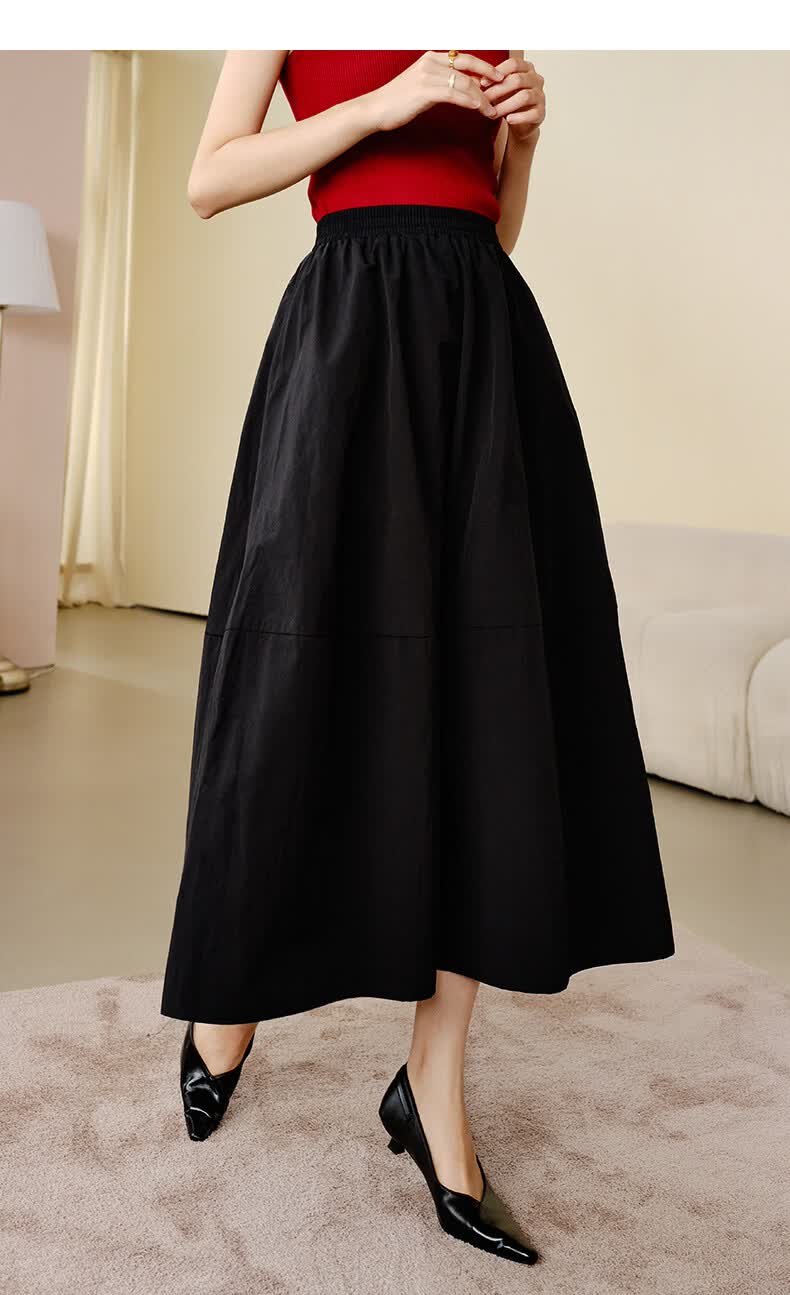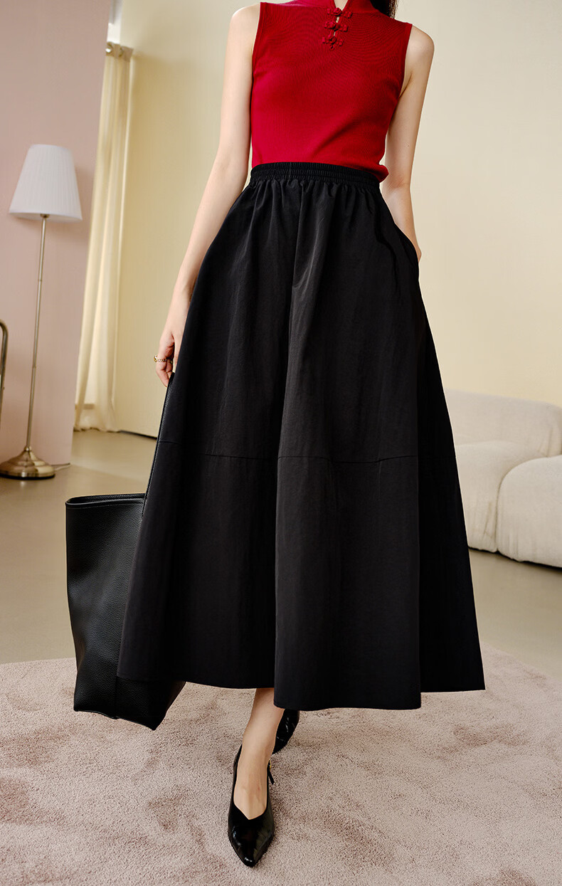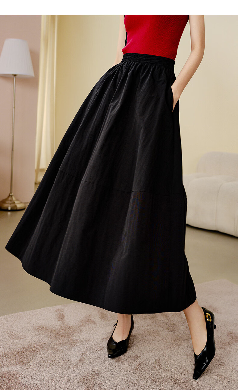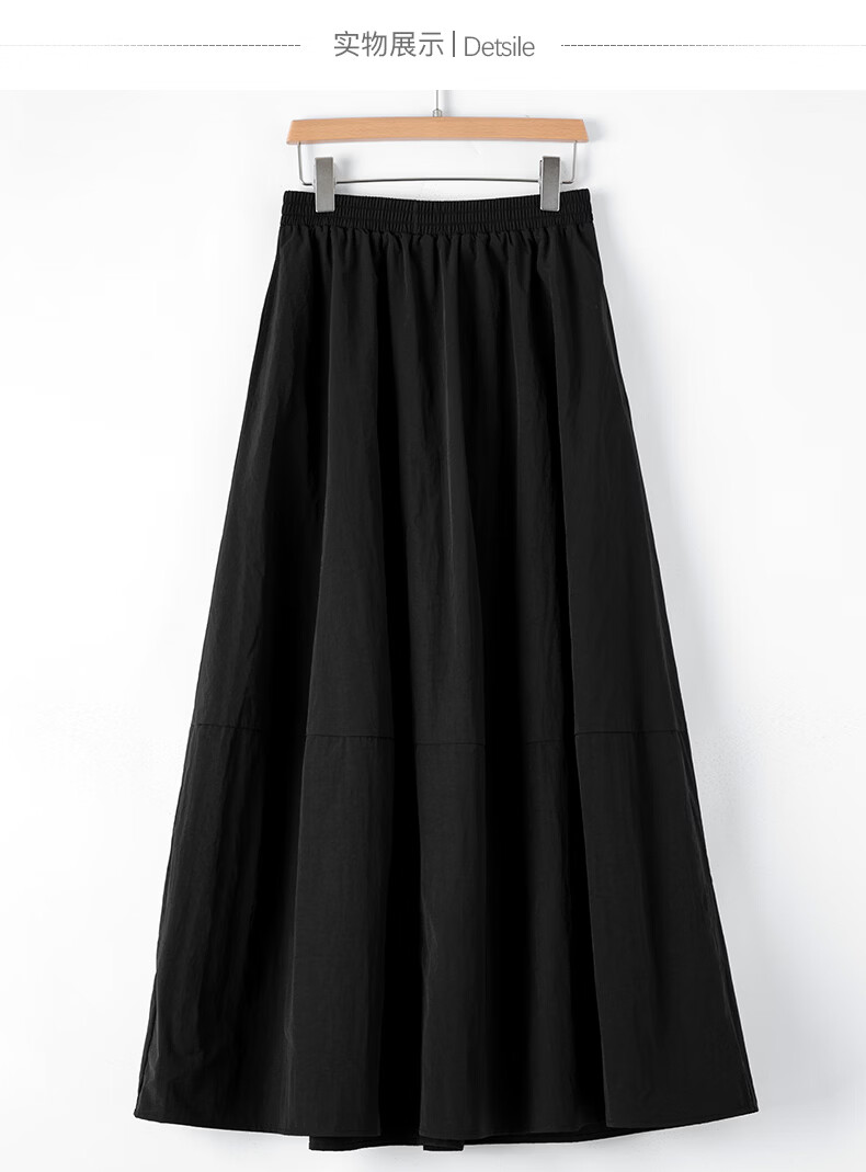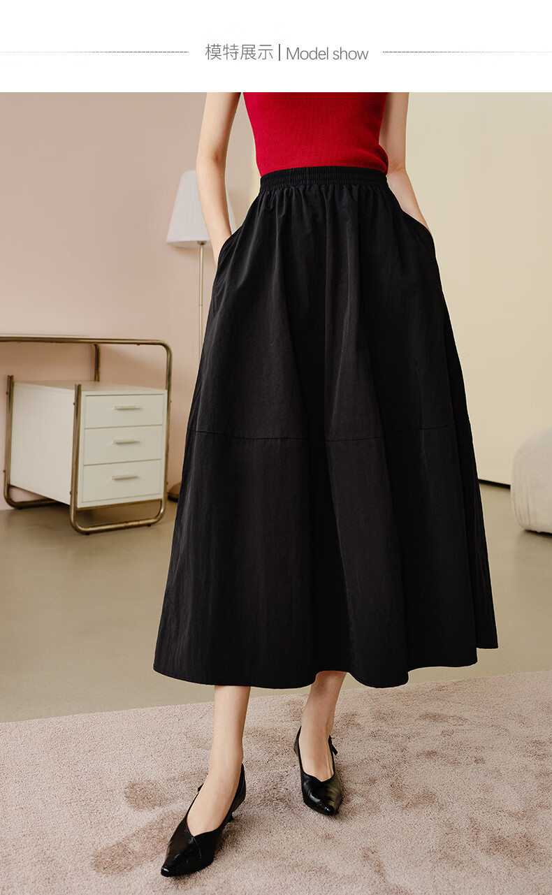 晚白【新品】2026年春款时尚休闲半裙松紧腰显瘦百搭大摆半身裙 黑色 L