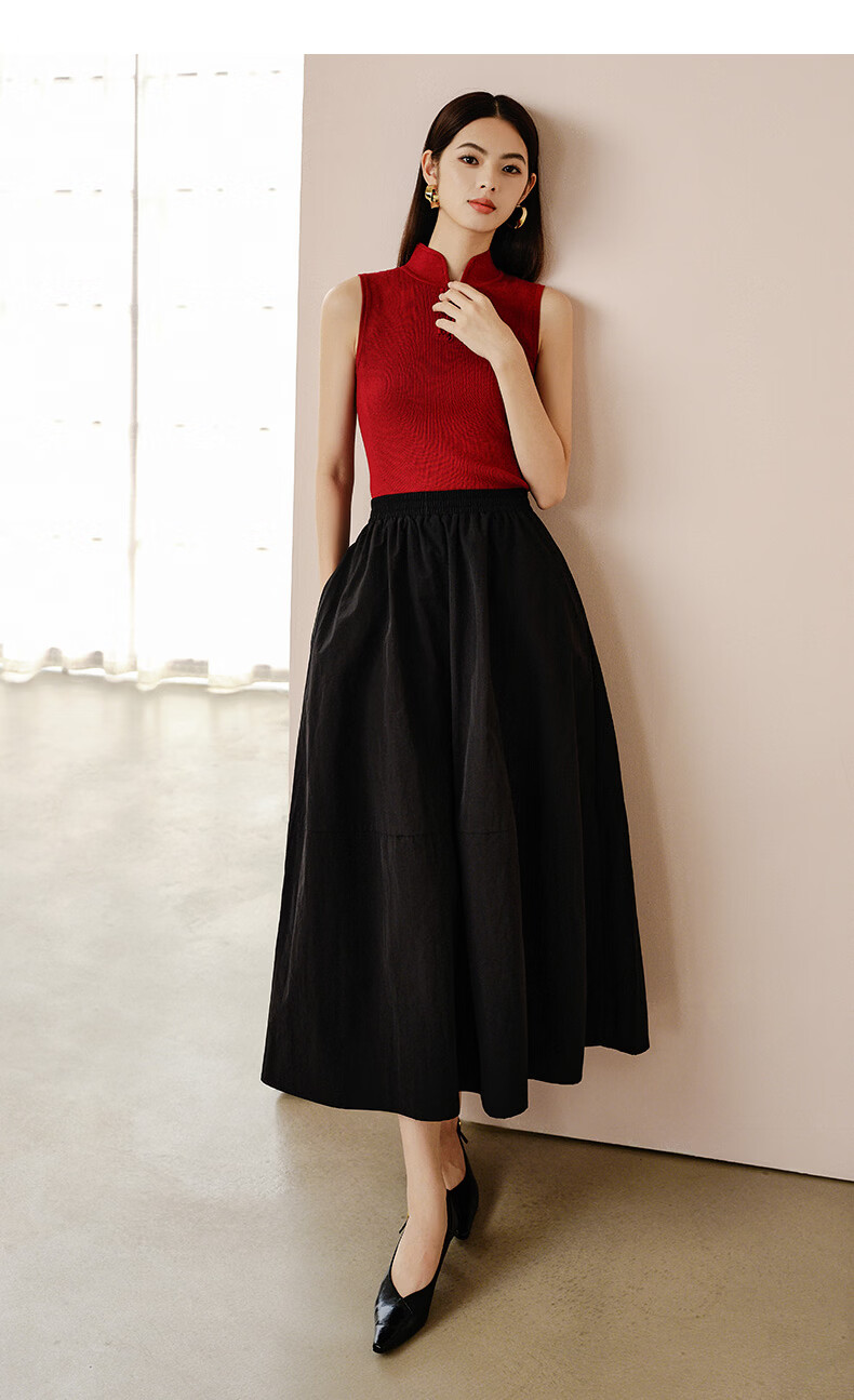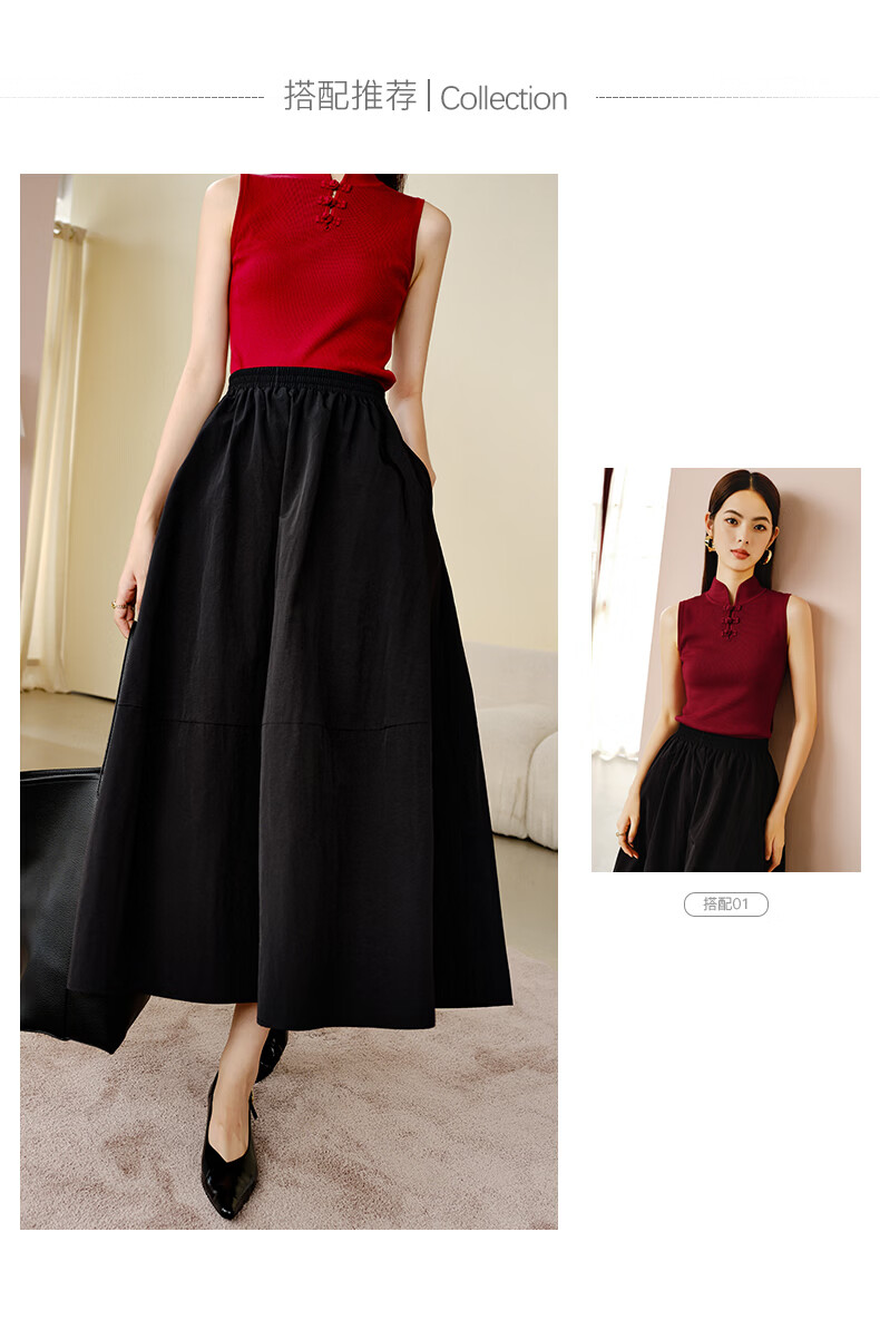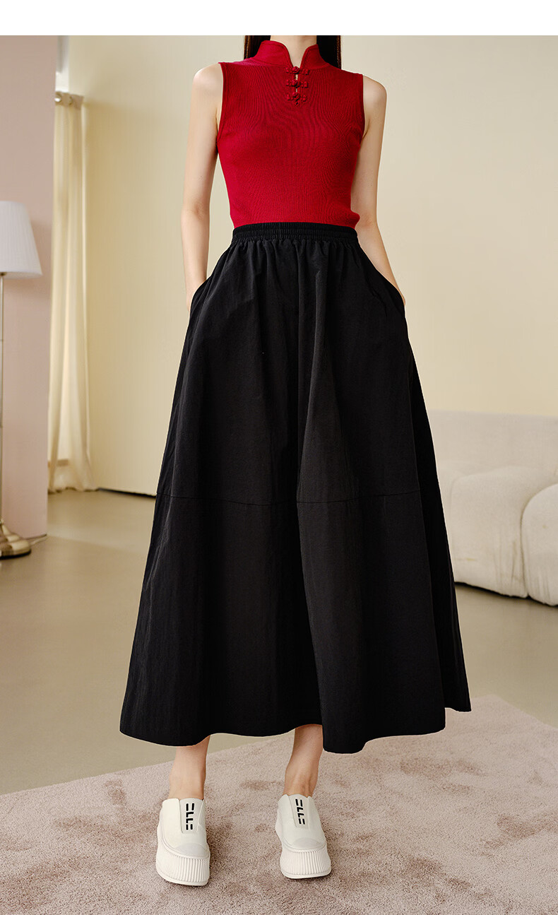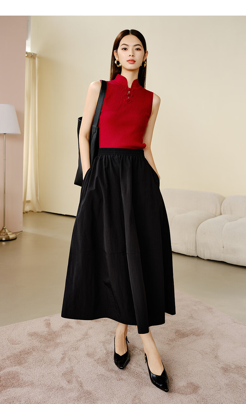 晚白【新品】2026年春款时尚休闲半裙松紧腰显瘦百搭大摆半身裙 黑色 L