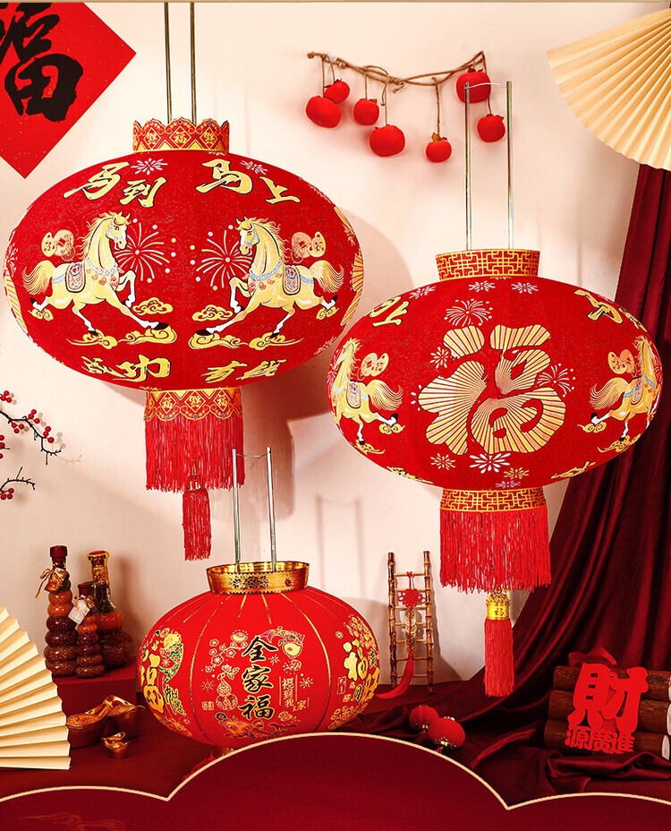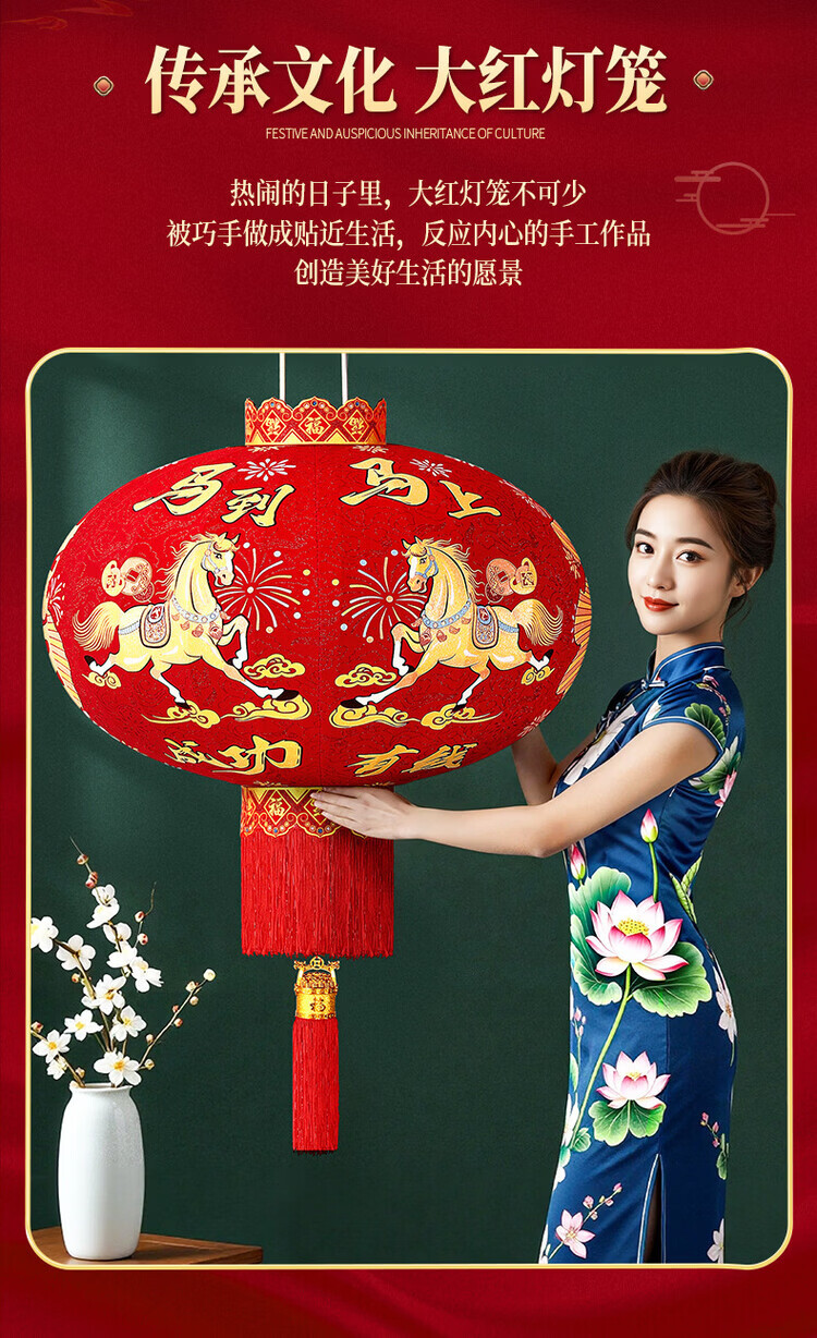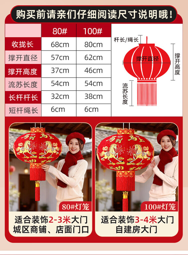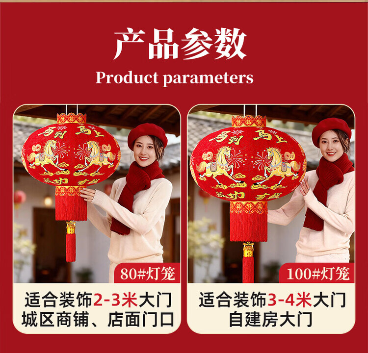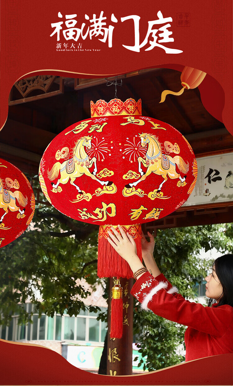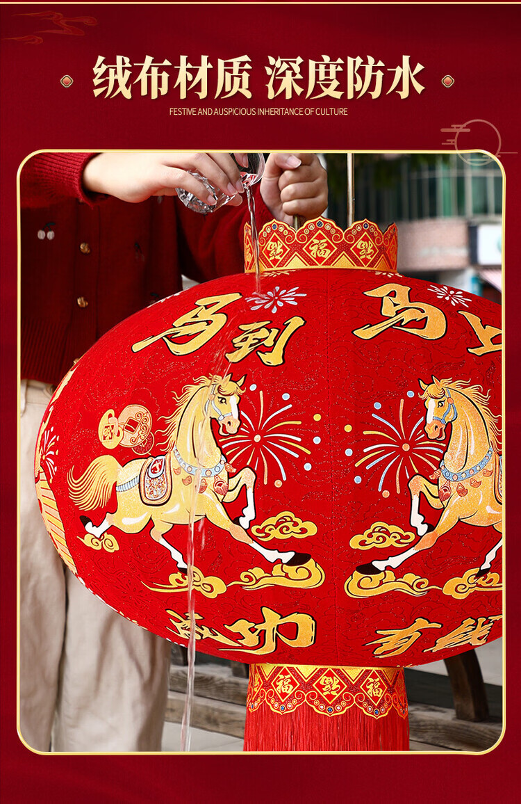 OYKTN马年大红植绒灯笼大门口一对户外防水新年春节厂家长杆灯笼批发 80#【马到成功A款】2个装+led灯(高档加厚绒