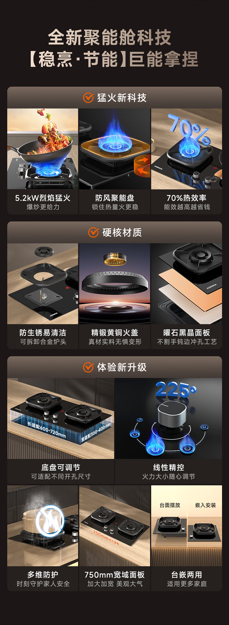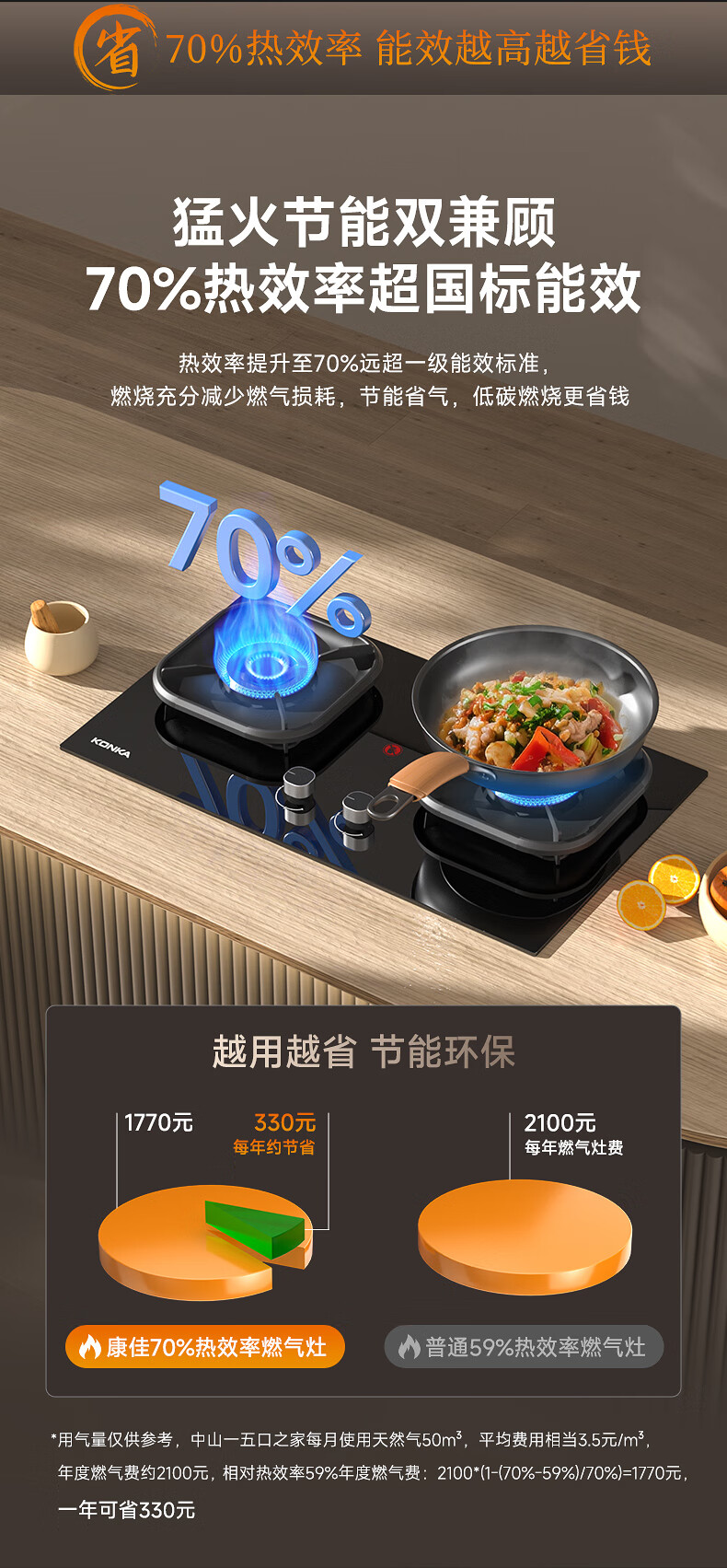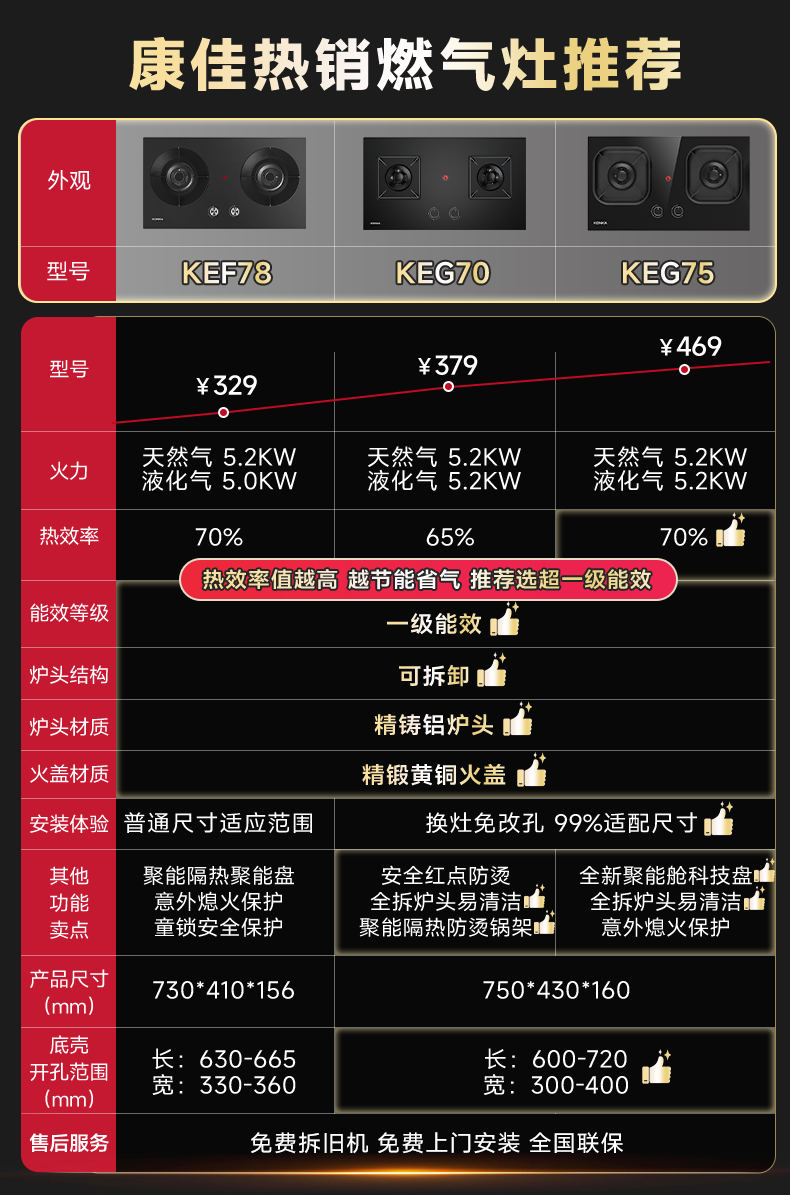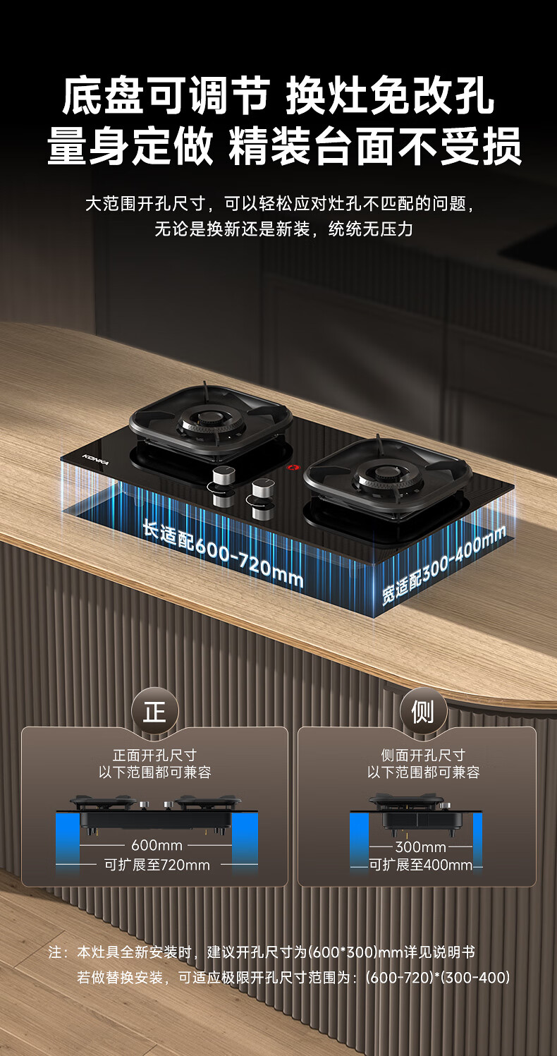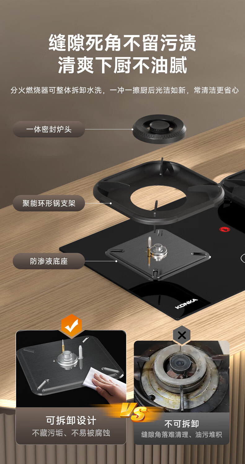 康佳(KONKA)燃气灶天然气煤气灶双灶嵌入式 大尺寸750mm大面板液化气灶免扩孔 5.2火力一级能效大开孔猛火灶 730mm面板 【铜火盖+铝炉头】KEF78 天然气(管道)