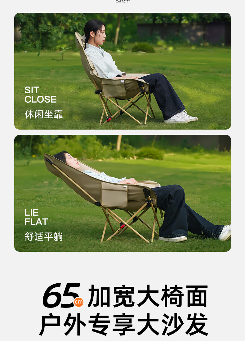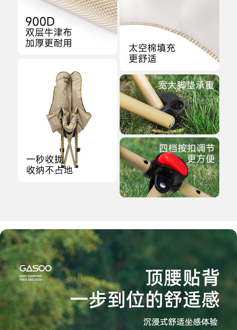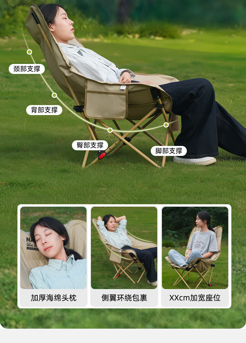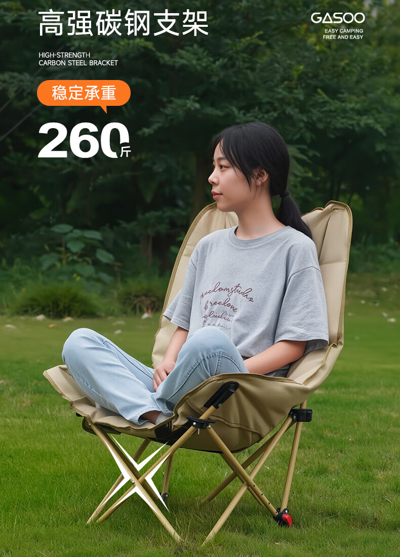 gosoo户外折叠椅露营椅子加厚高背月亮椅可躺可睡躺椅午休加棉午睡椅米
