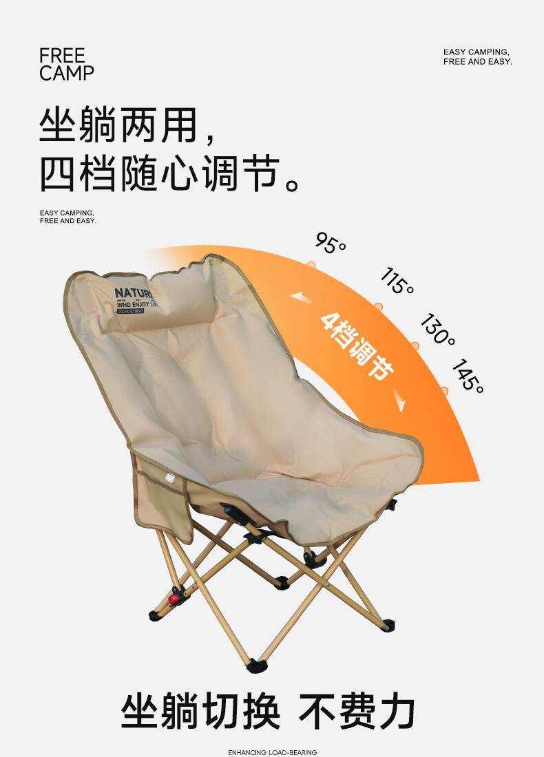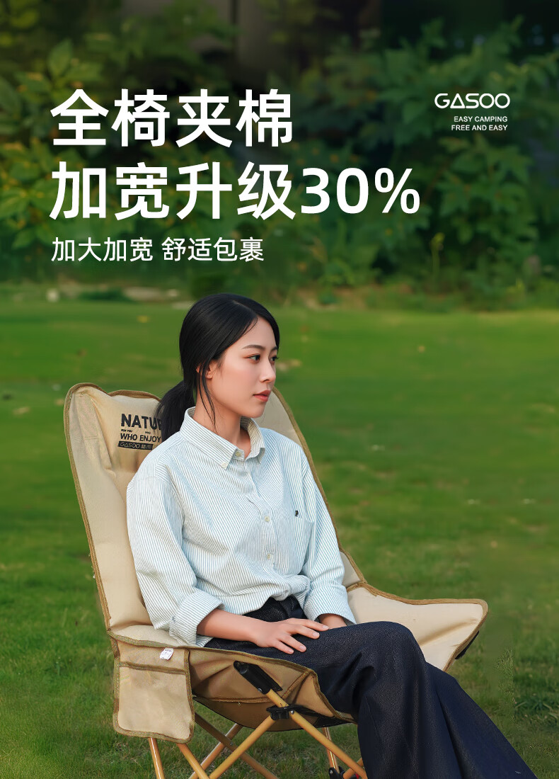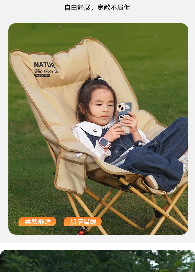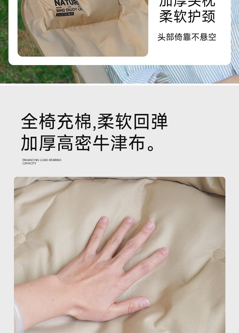 gosoo户外折叠椅露营椅子加厚高背月亮椅可躺可睡躺椅午休加棉午睡椅米
