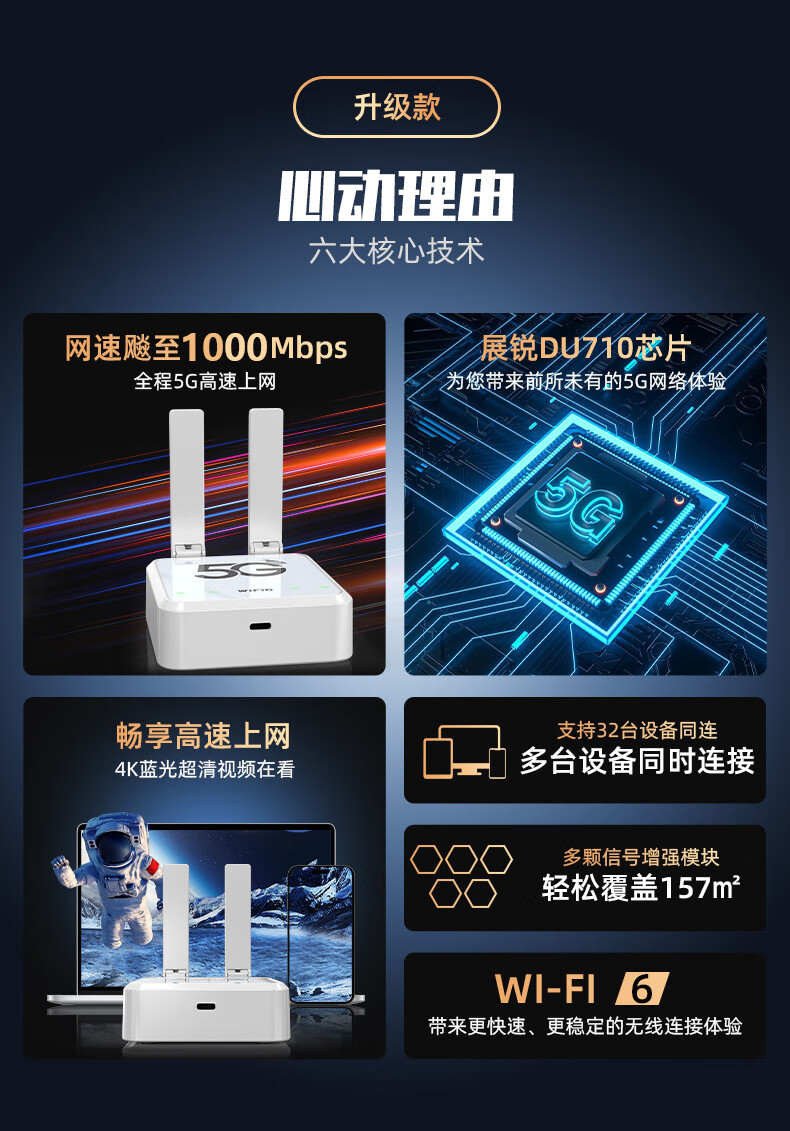 圣凡杜5gcpe路由器移动网络随身wifi无线网卡迷你便携千兆宽带全国通用无限超大流量不限速 【性能款】千兆双频突破极限