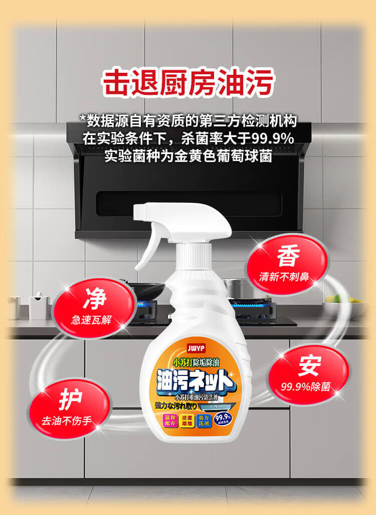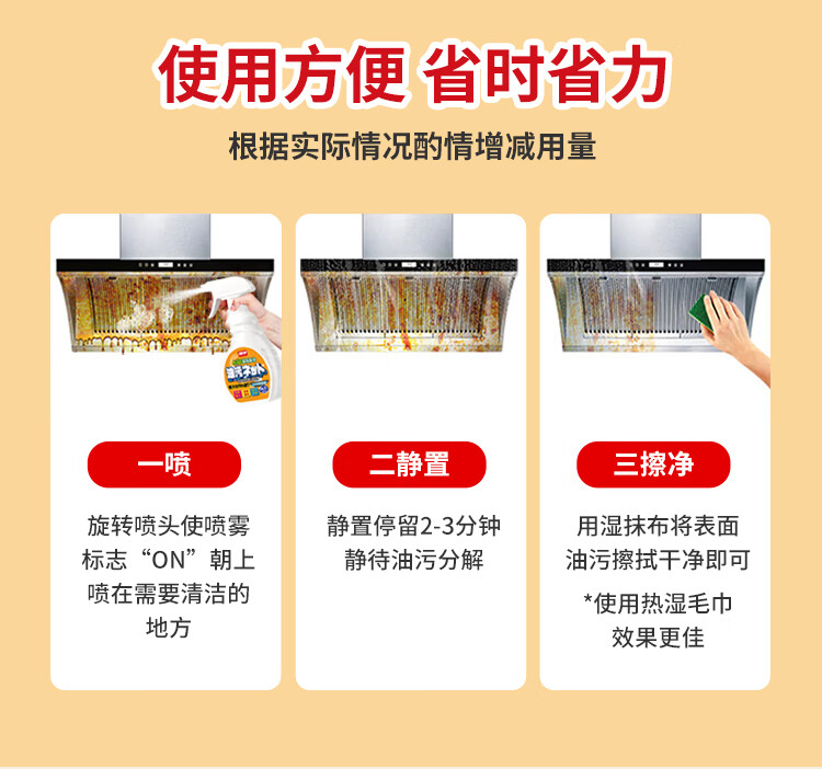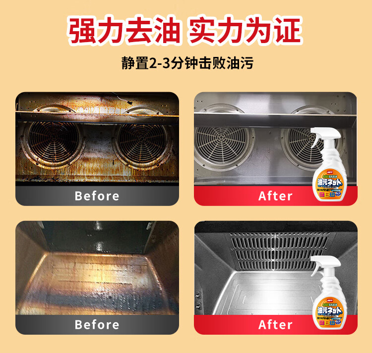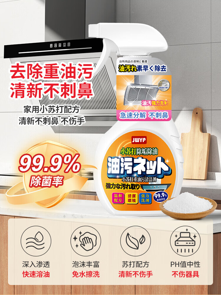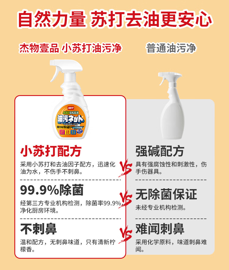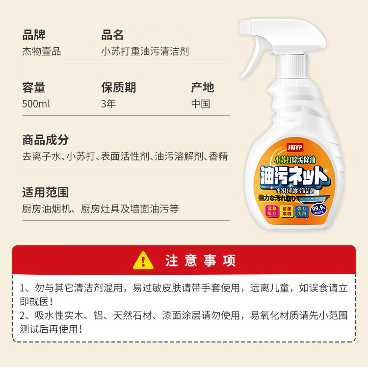杰物壹品小苏打去重油清洁剂 厨房油烟机强力去重油 重油污净 去重油清洁剂500ml*2瓶【一喷化水】