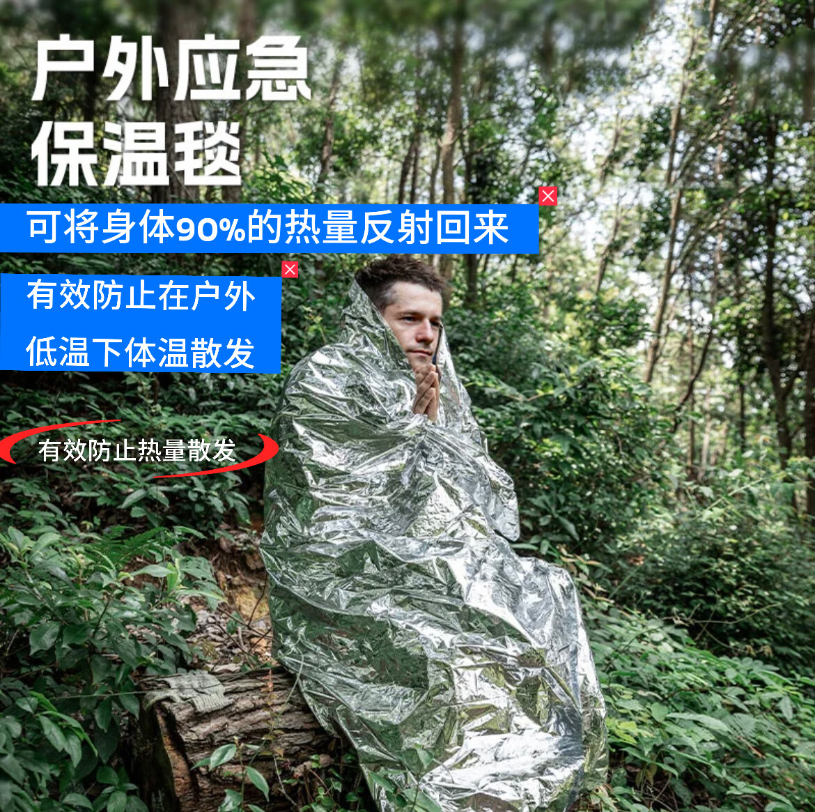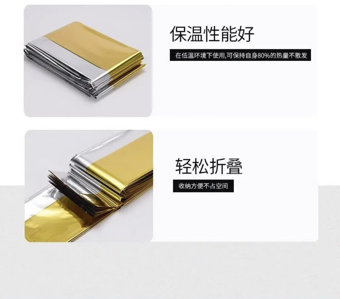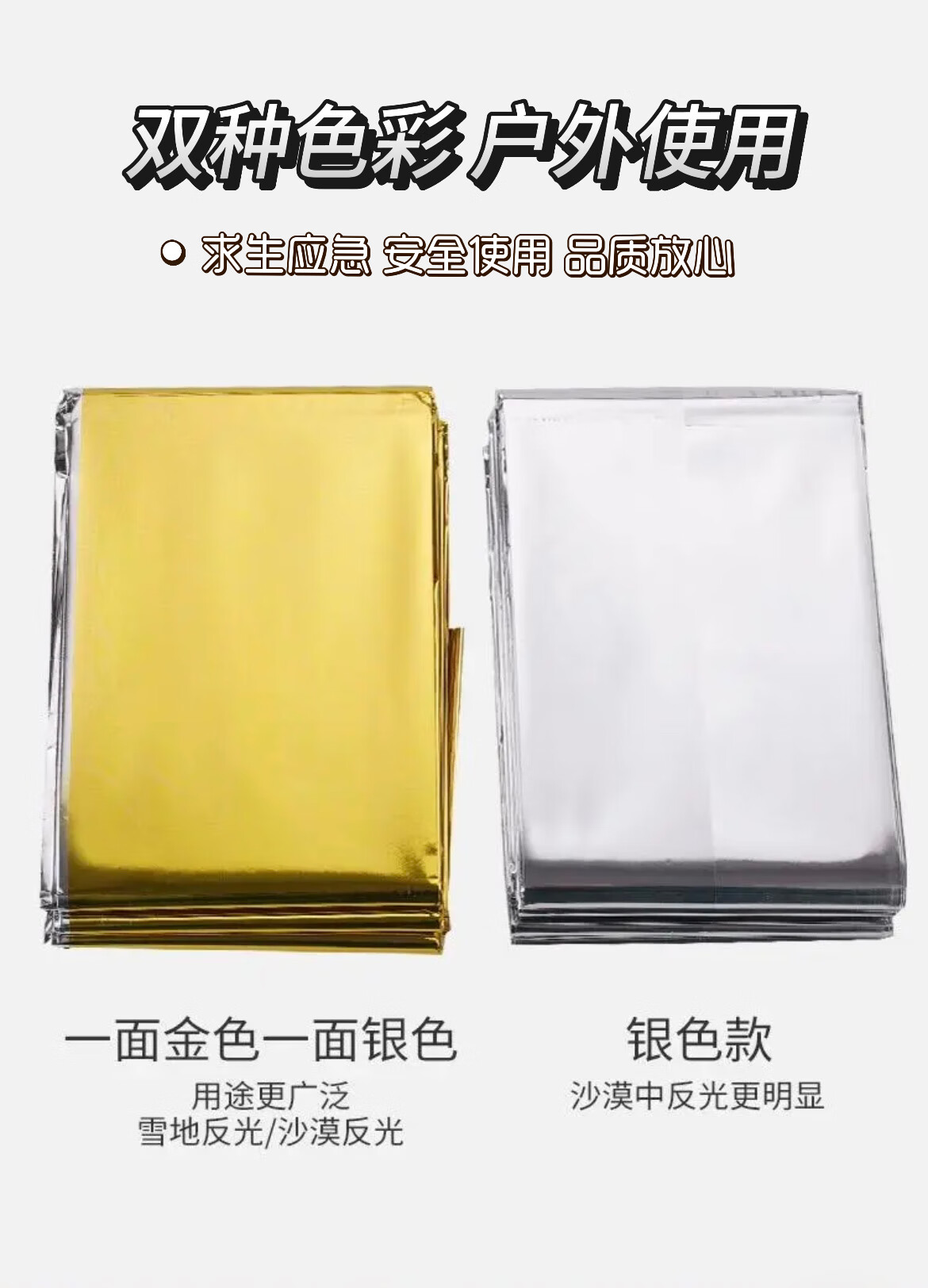 云启格户外应急救生毯抗寒保暖防失温防雨防晒旅行救命反光铝膜保温毯 金银双面160*210cm单个装