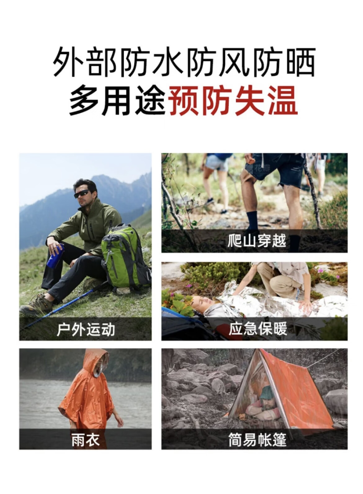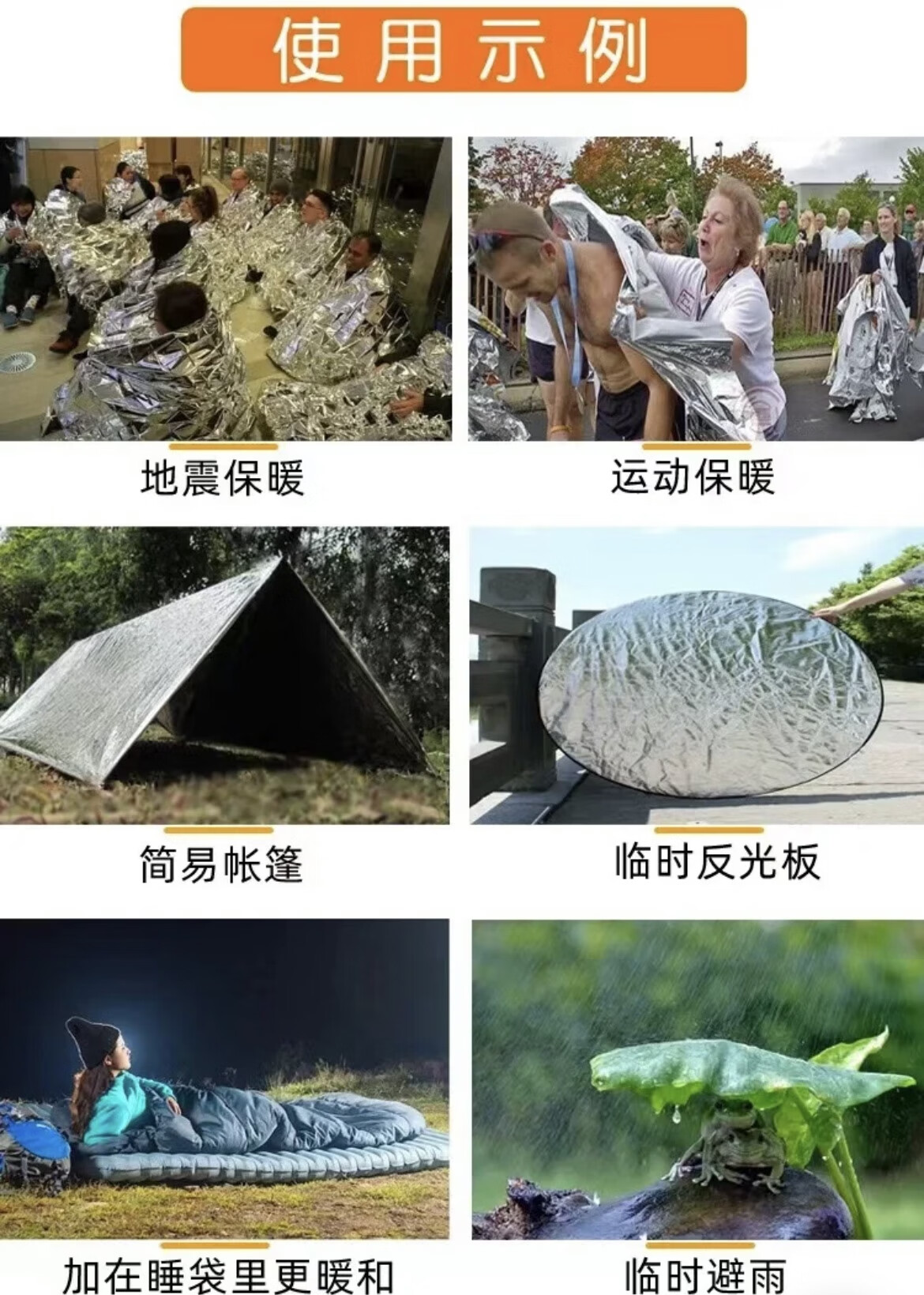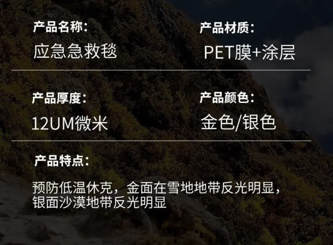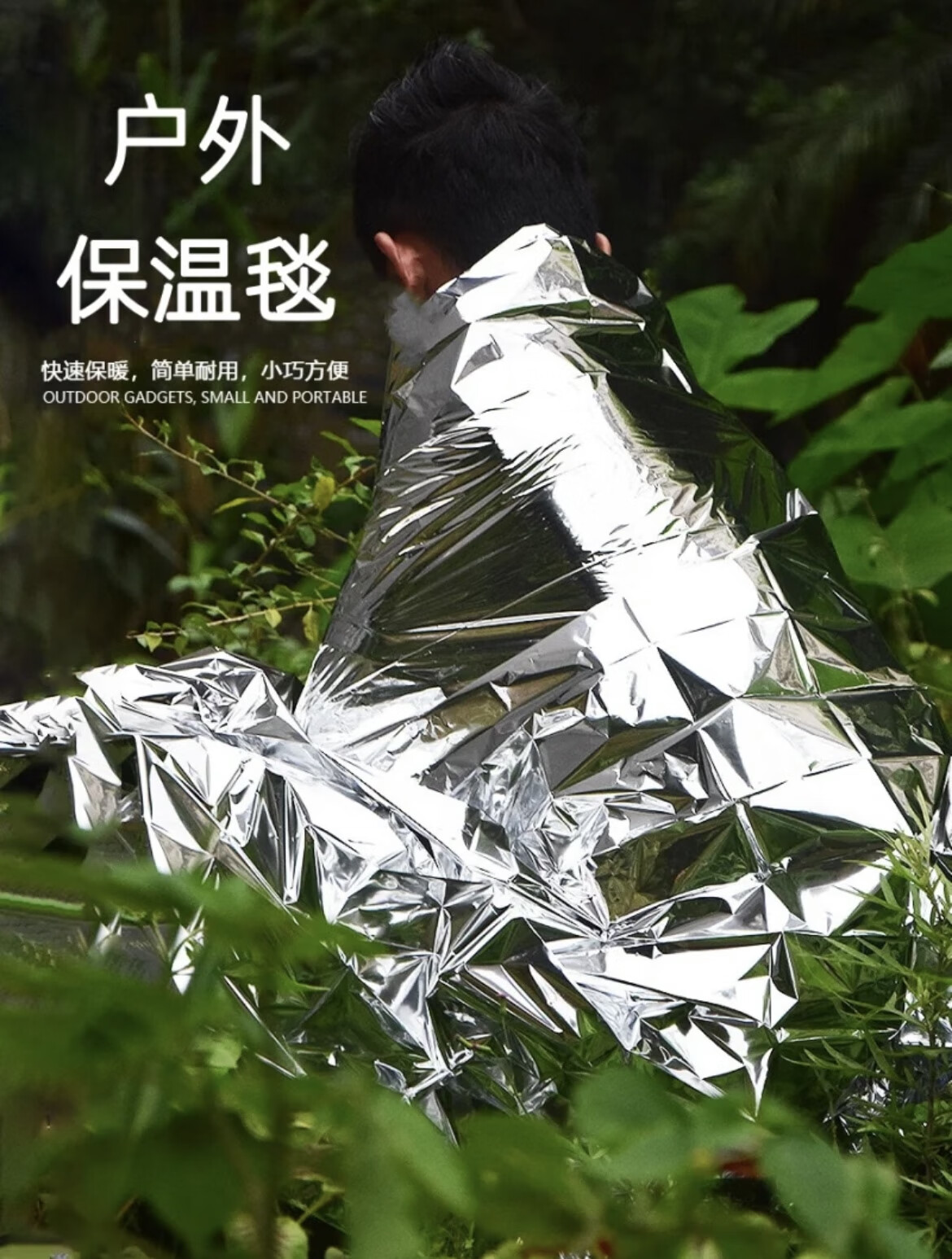 云启格户外应急救生毯抗寒保暖防失温防雨防晒旅行救命反光铝膜保温毯 金银双面160*210cm单个装