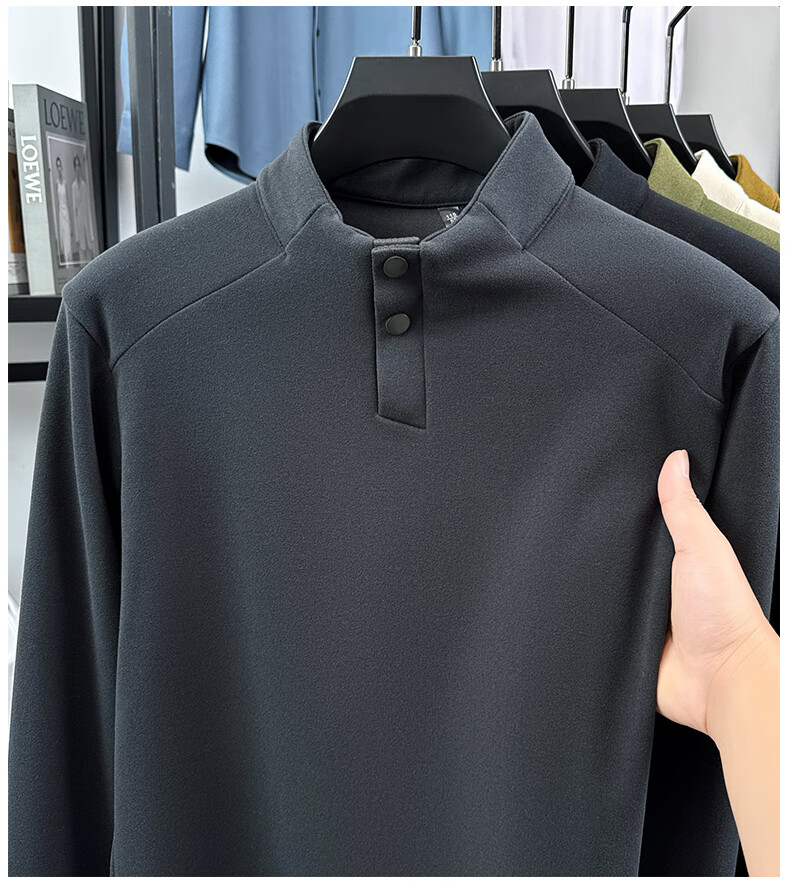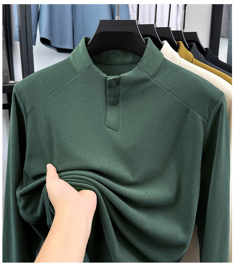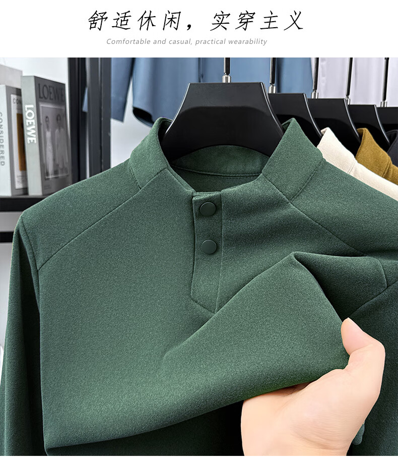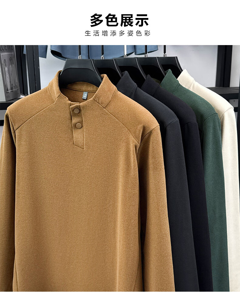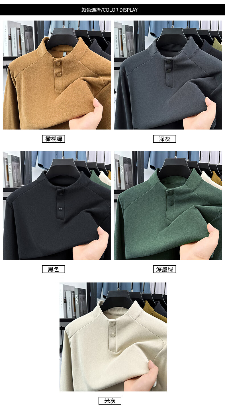 FULTON BAOLOO 富尔顿保罗男士德绒长袖t恤秋冬季保暖纯色打底衫中青年半高领百搭体恤衫潮 灰色 M (建议100到120斤穿)