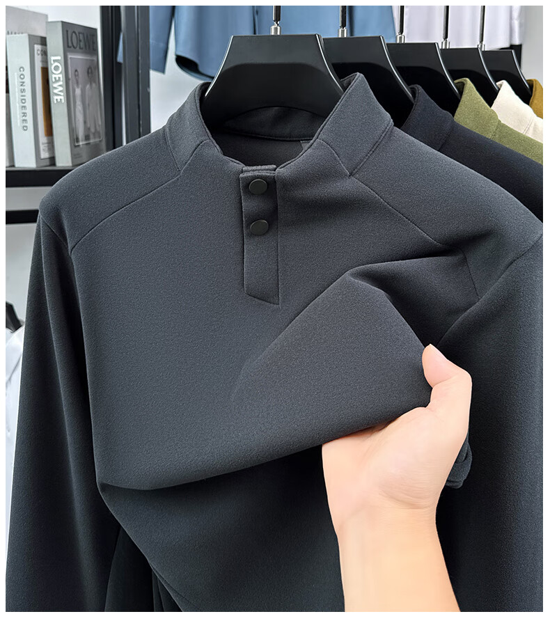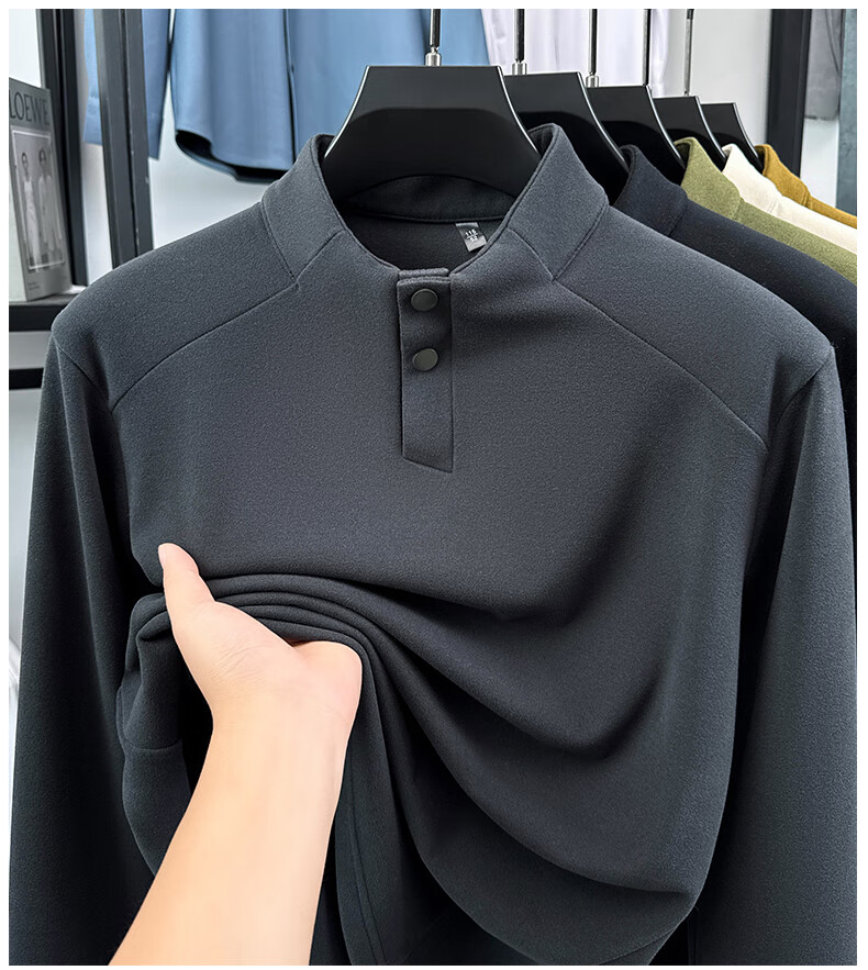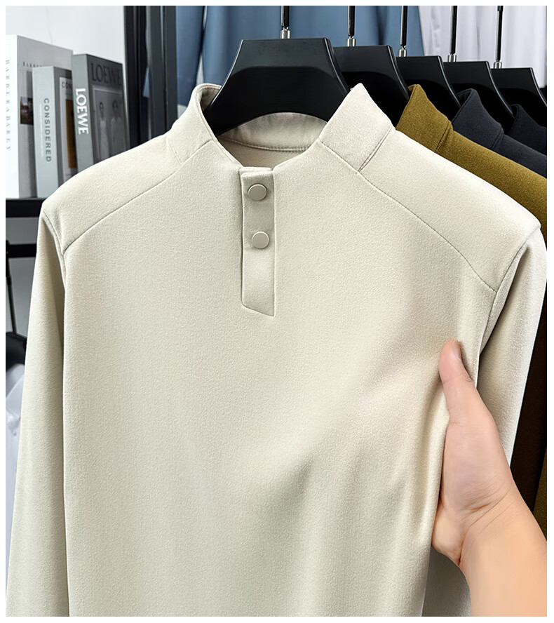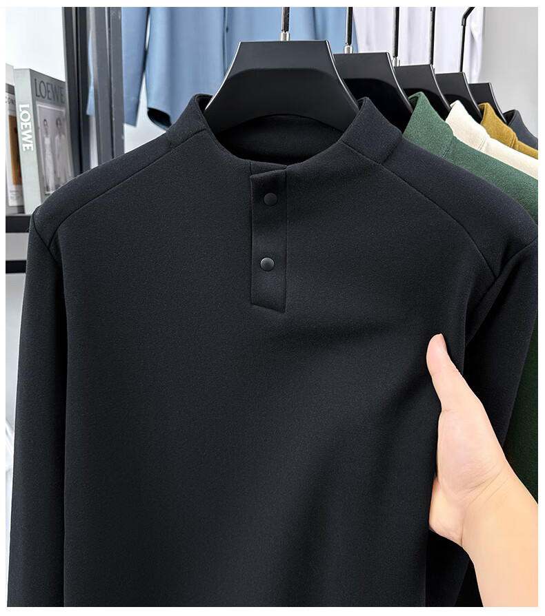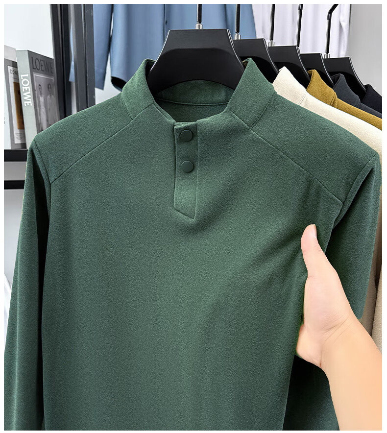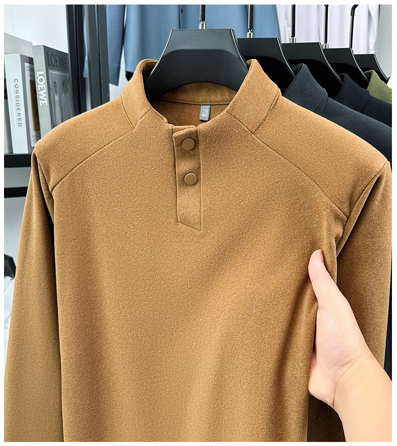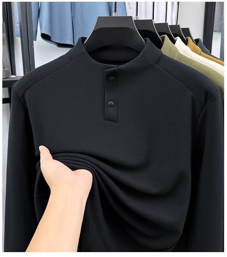 FULTON BAOLOO 富尔顿保罗男士德绒长袖t恤秋冬季保暖纯色打底衫中青年半高领百搭体恤衫潮 灰色 M (建议100到120斤穿)