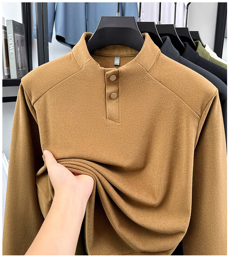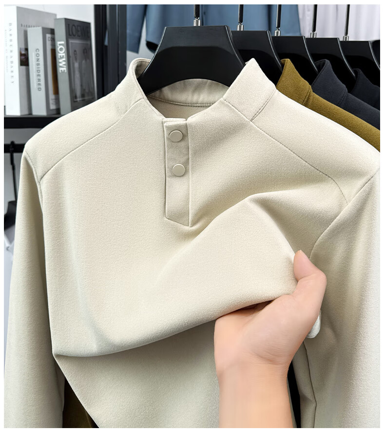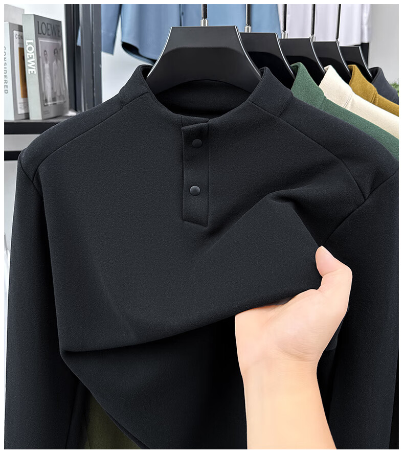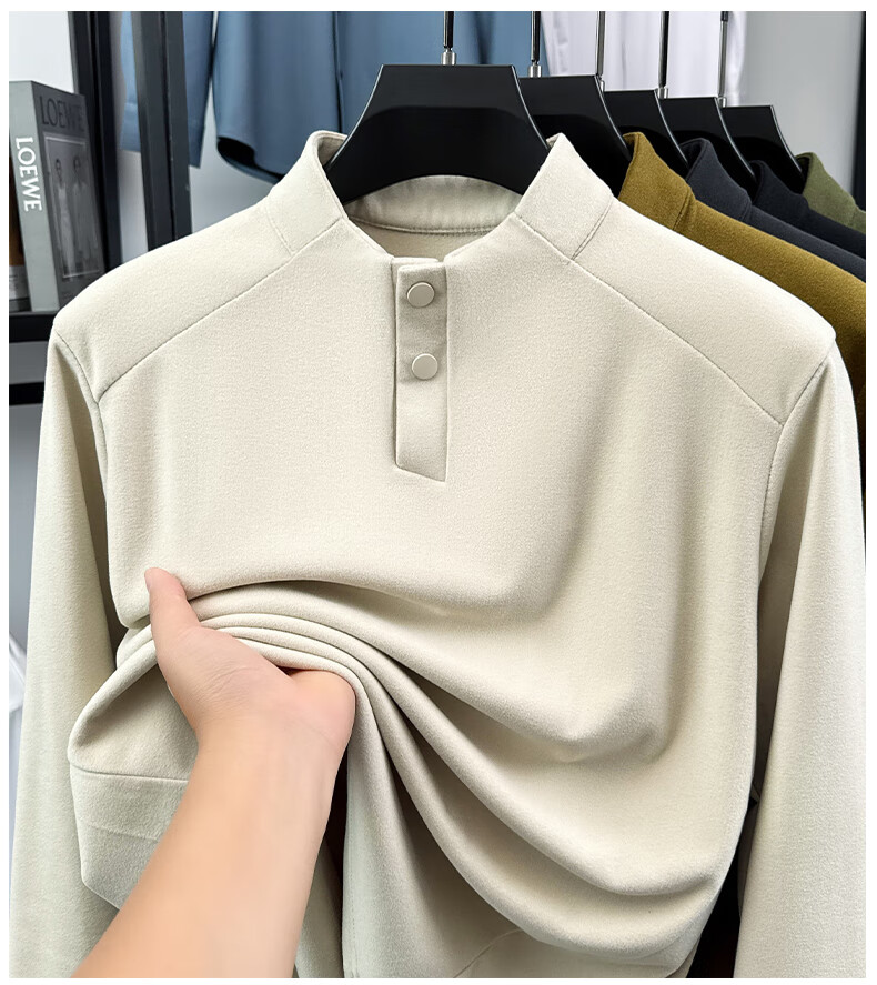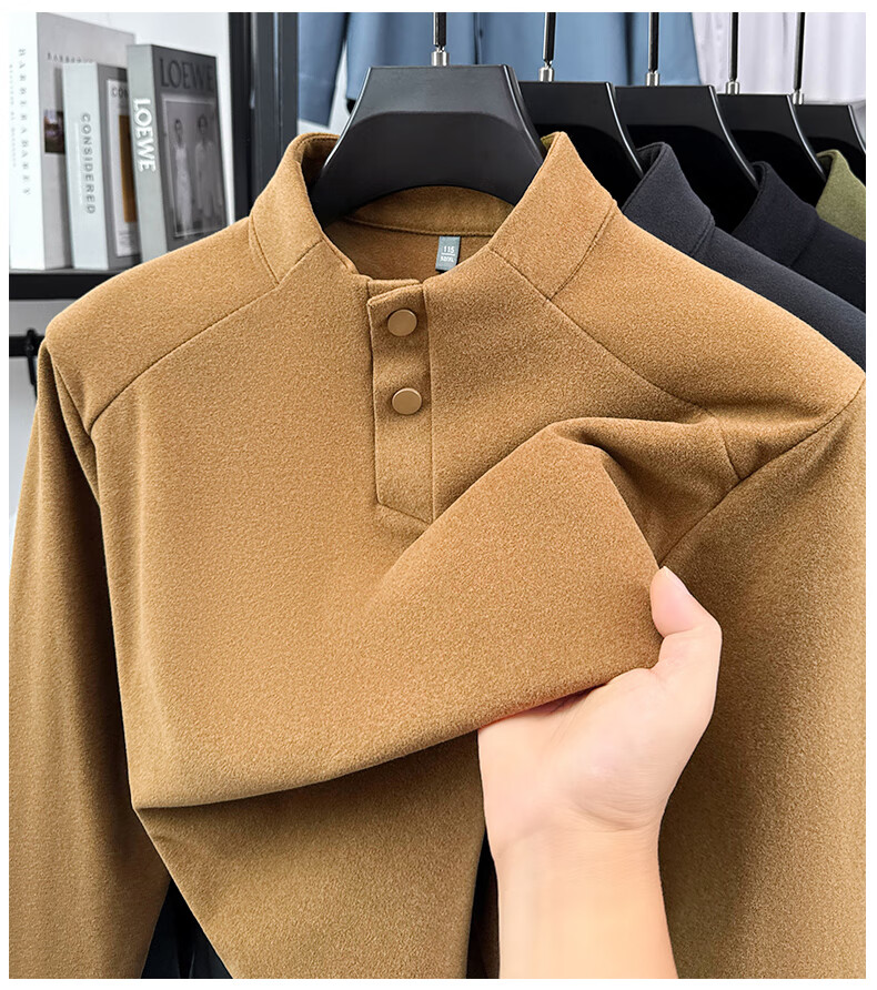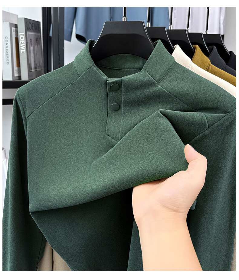 FULTON BAOLOO 富尔顿保罗男士德绒长袖t恤秋冬季保暖纯色打底衫中青年半高领百搭体恤衫潮 灰色 M (建议100到120斤穿)