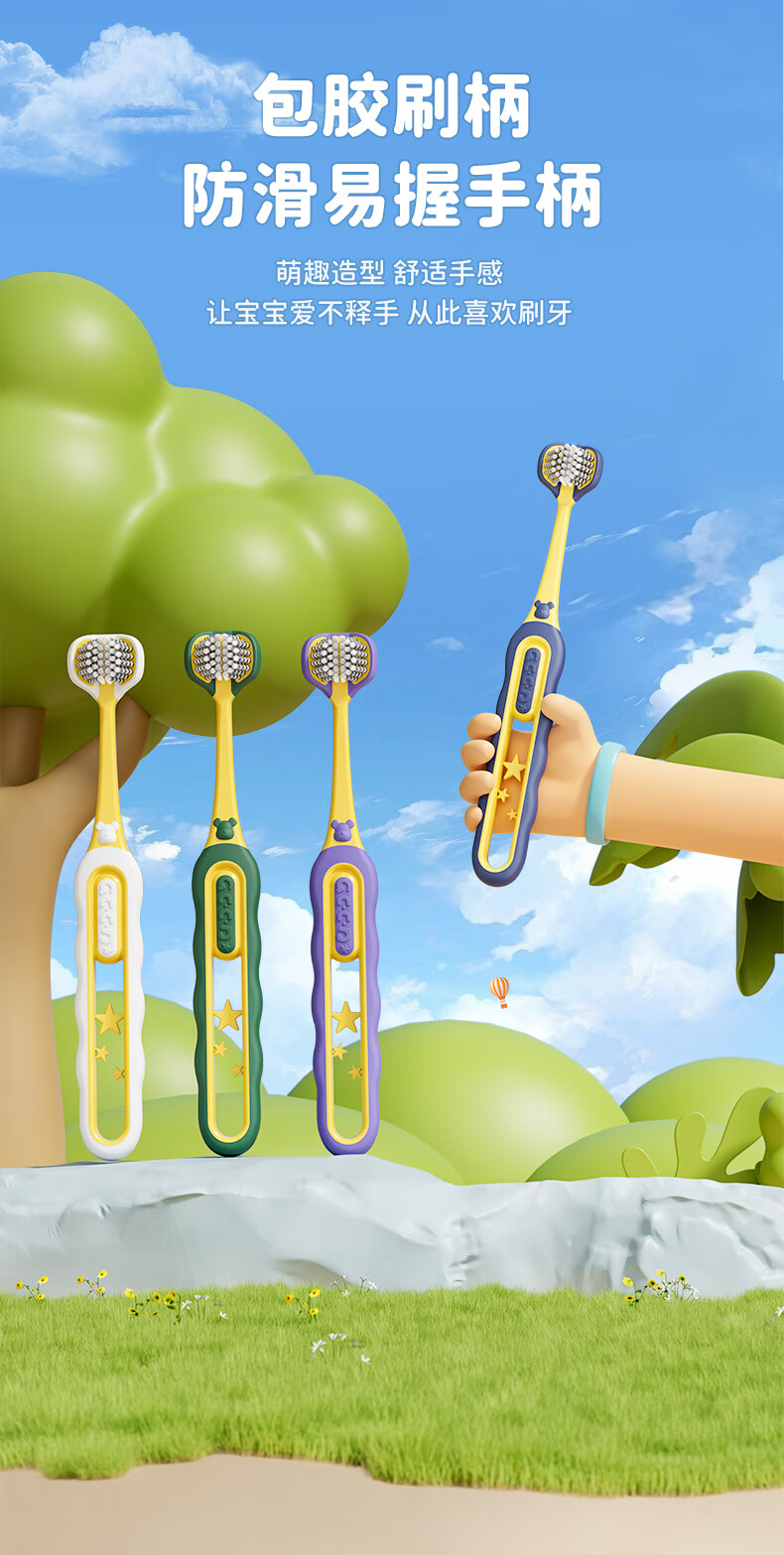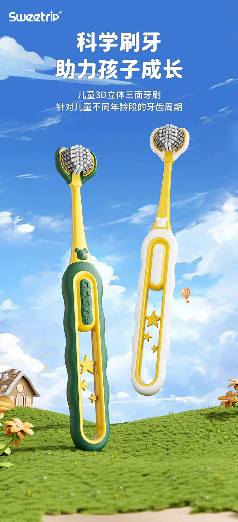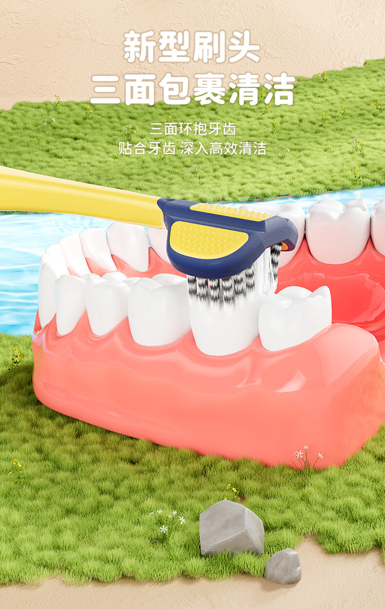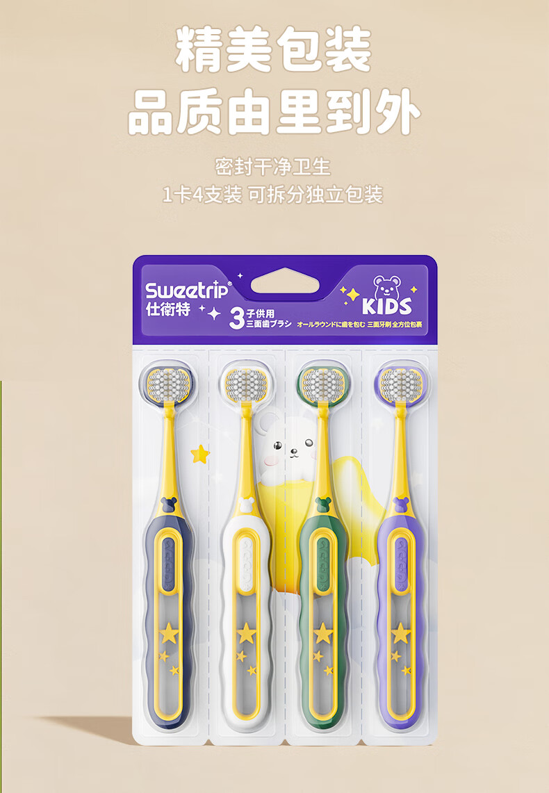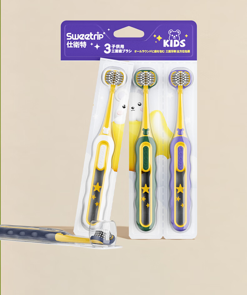 Sweetrip三面牙刷儿童软毛3-6-12岁u型全包裹清洁宝宝口腔三头刷牙神器 三倍效率(儿童牙刷)4支4支