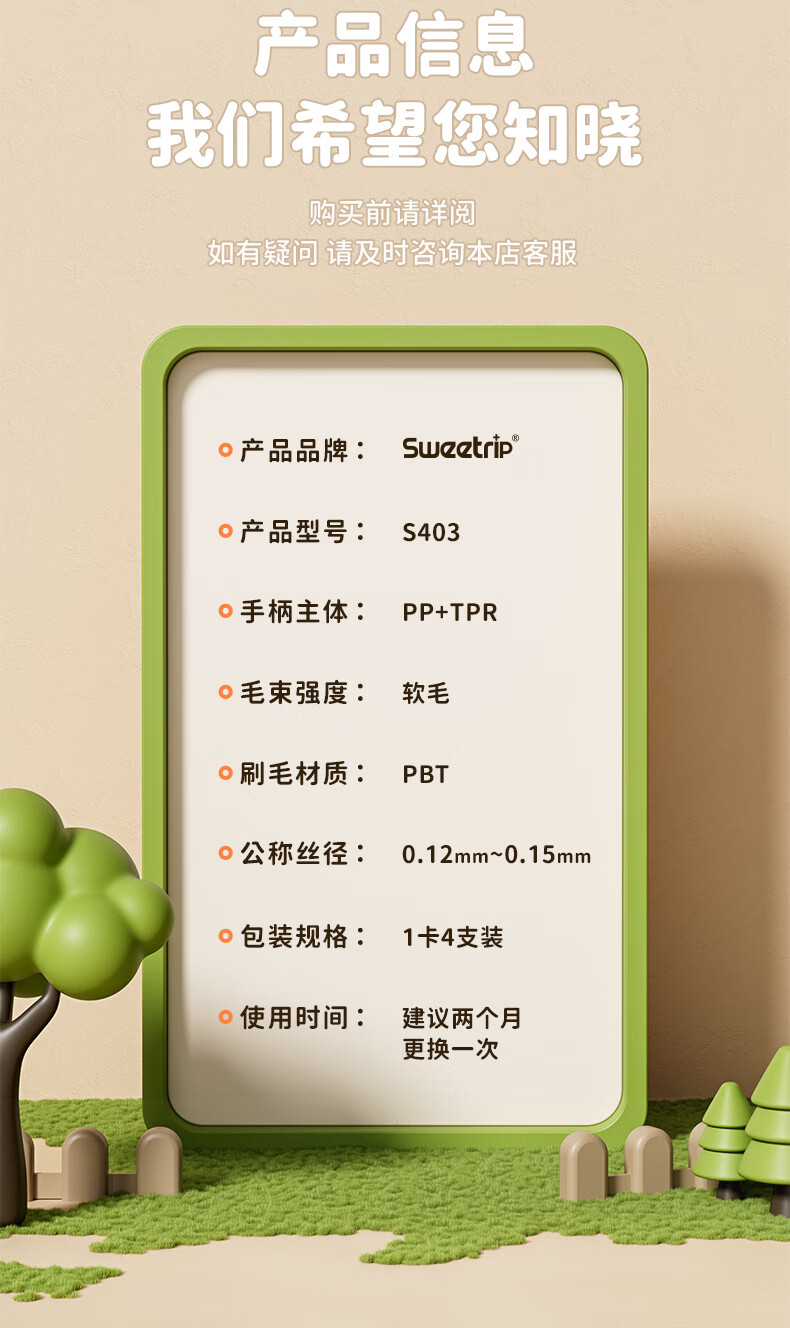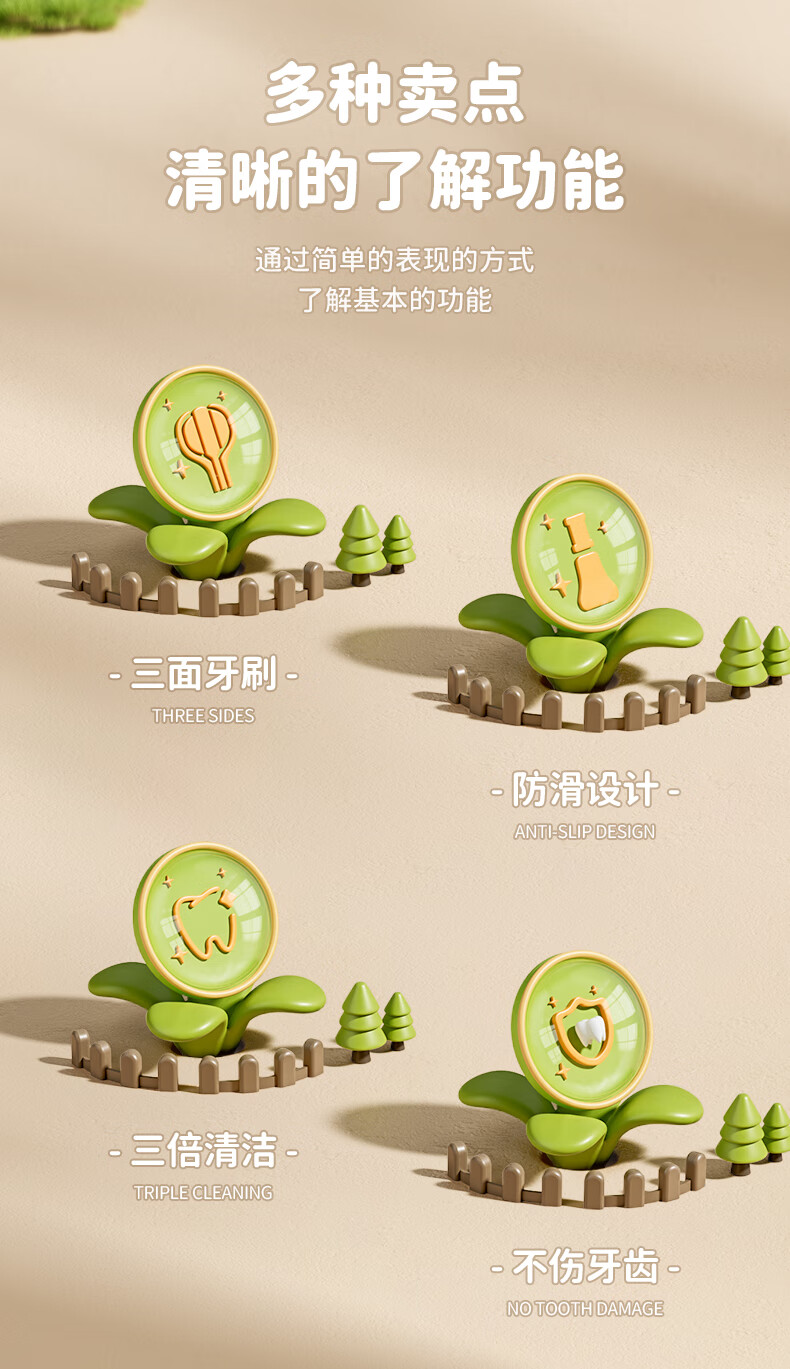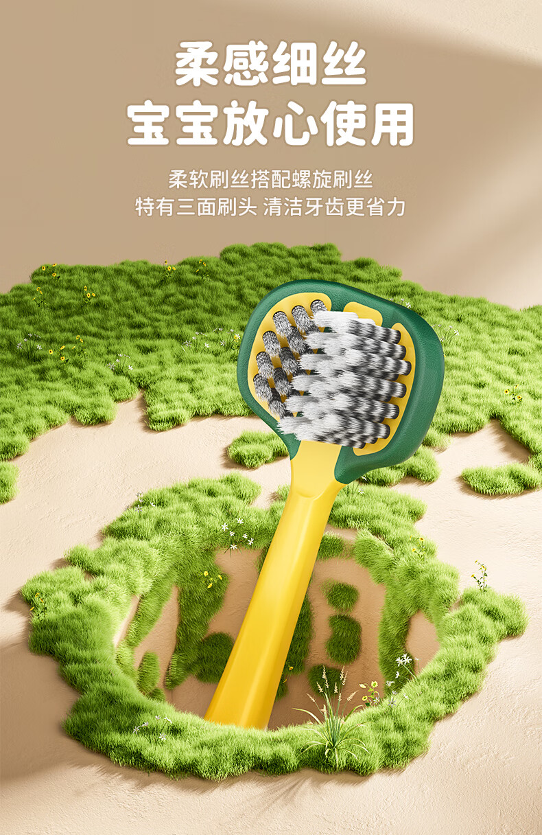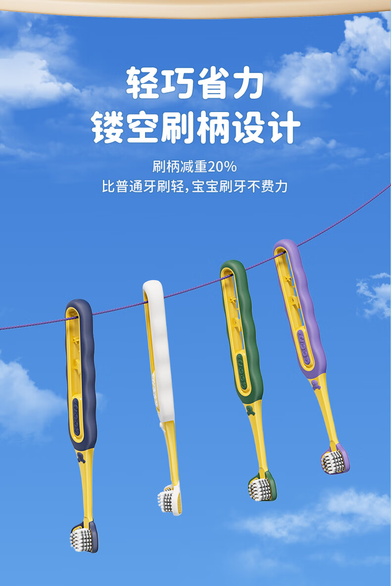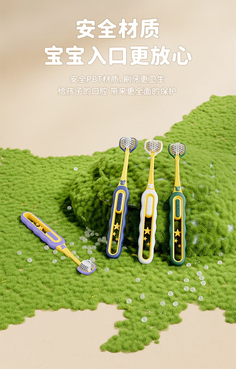 Sweetrip三面牙刷儿童软毛3-6-12岁u型全包裹清洁宝宝口腔三头刷牙神器 三倍效率(儿童牙刷)4支4支