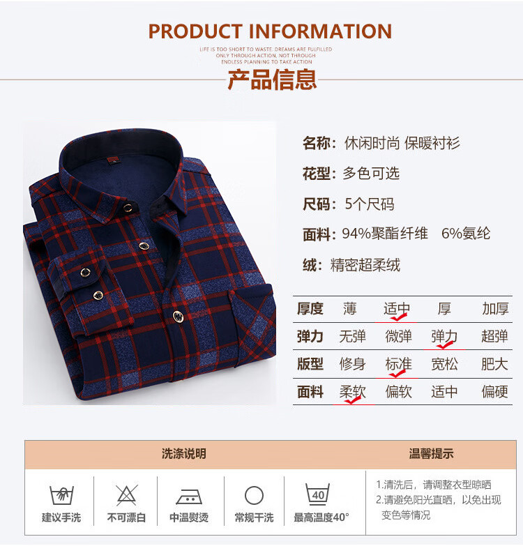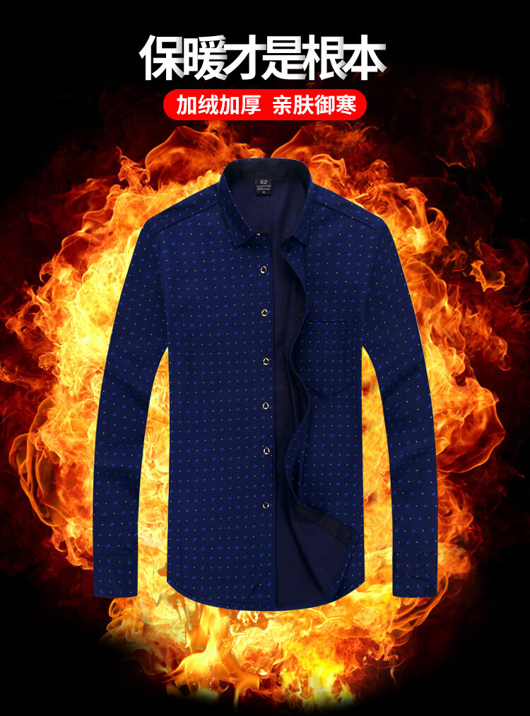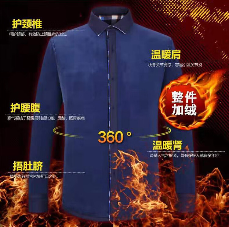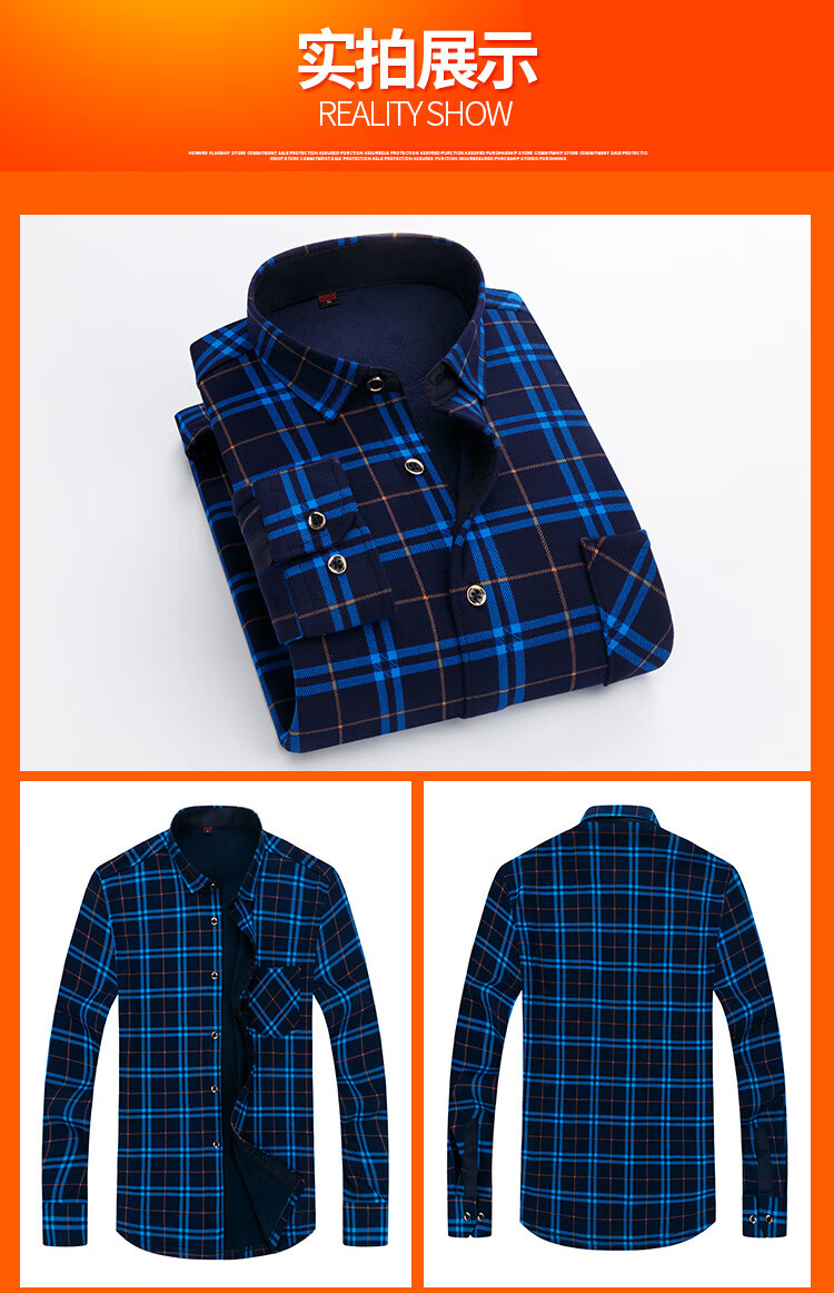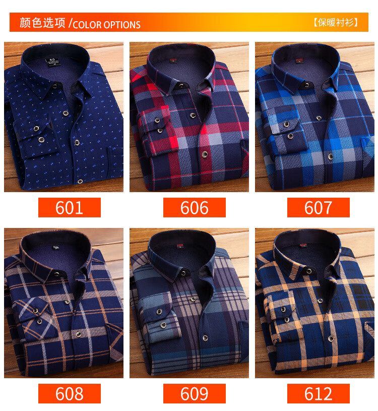 kainifu秋冬男士加绒衬衫不起球格子上衣保暖中年衬衣 牛奶丝601 L