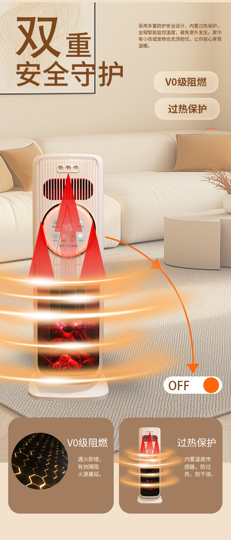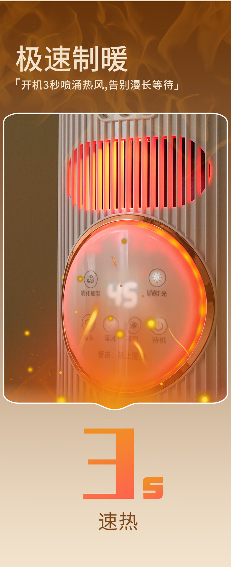 德国火焰暖风机智能空调扇家用冷暖风机家用小型空调扇冷暖两用 取暖器