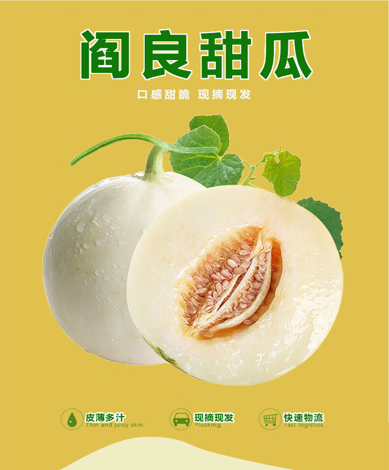 遇见悯农正宗阎良甜瓜香瓜甜瓜黄河蜜瓜黄金瓜黄金蜜生鲜新鲜水果 阎良甜瓜净重4.5斤【红白肉随机】 鲜甜蜜瓜