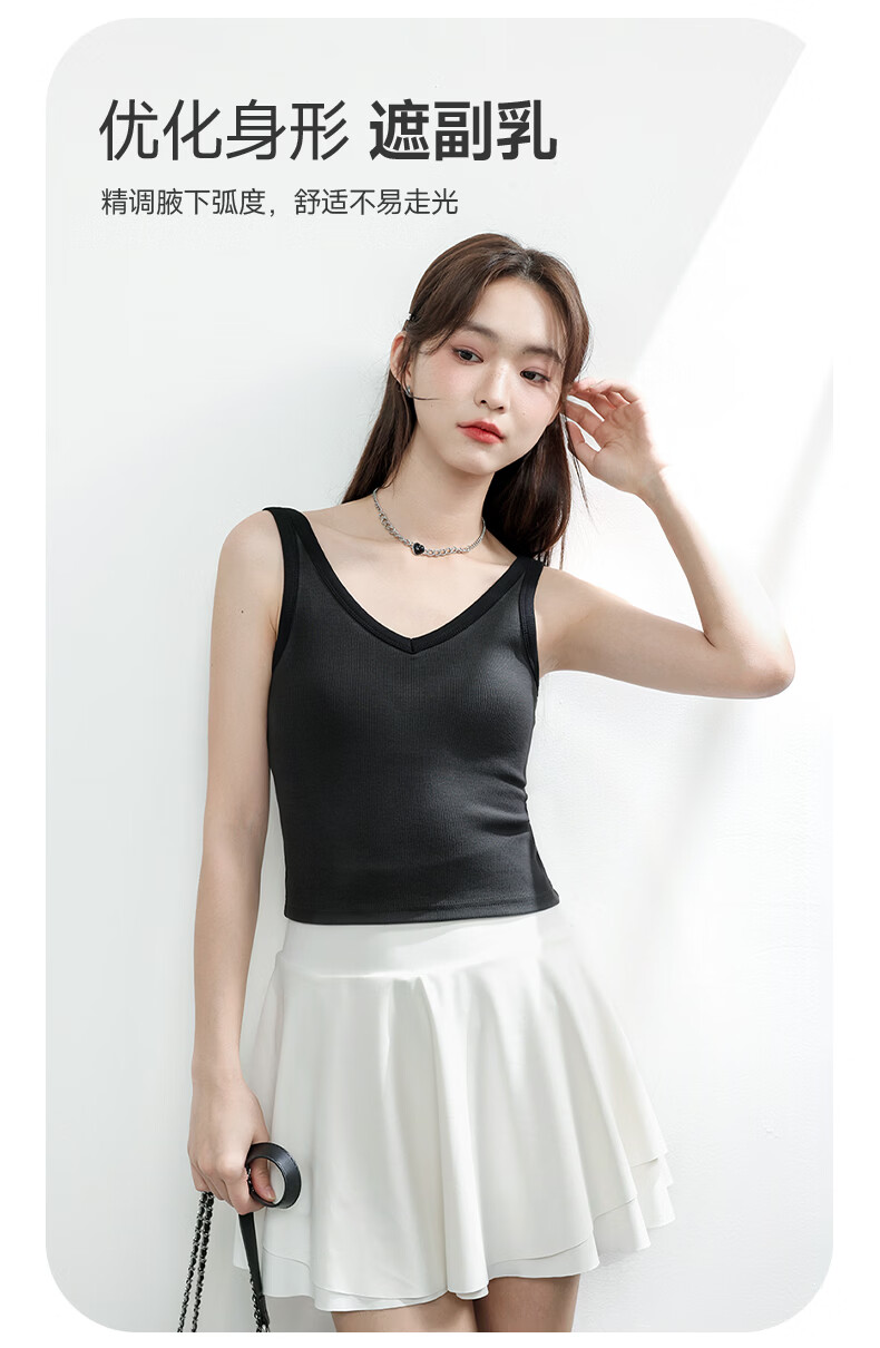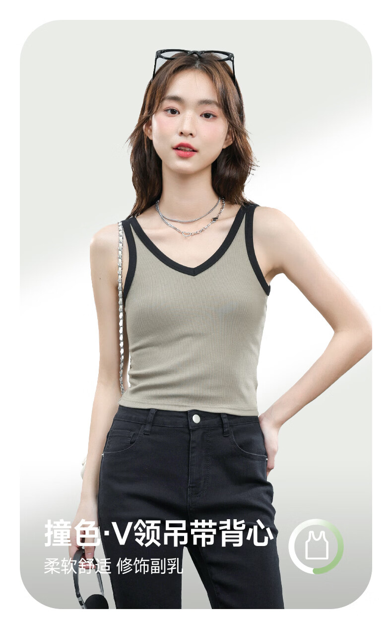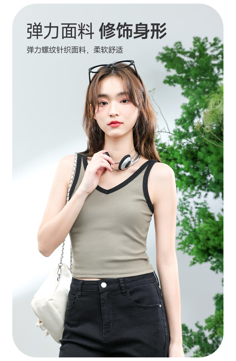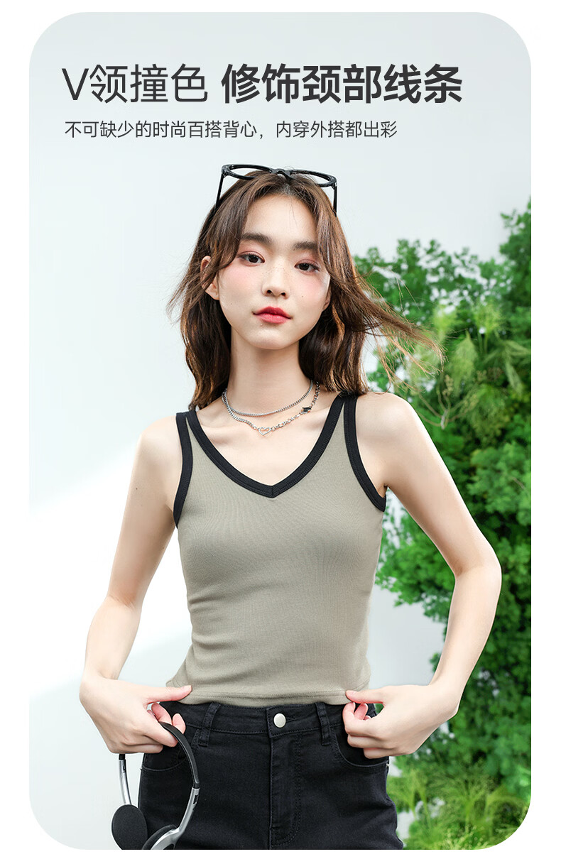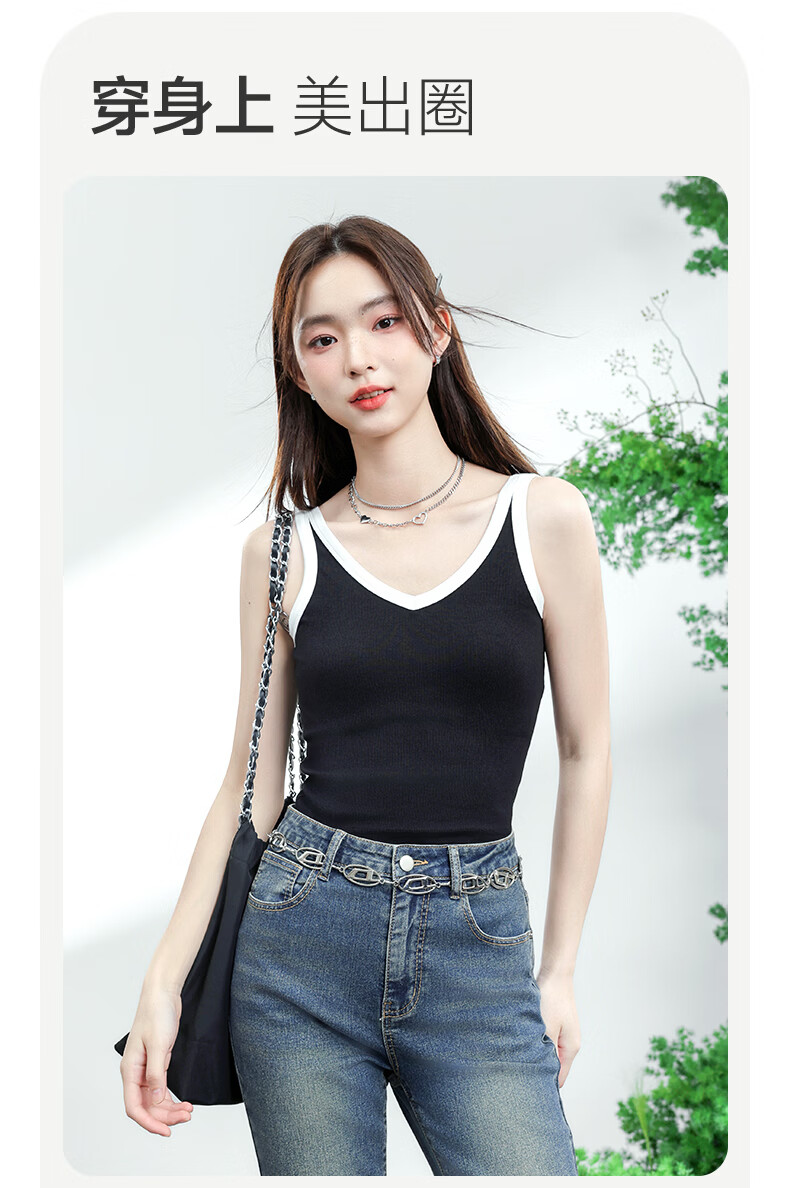 回力(Warrior)撞色V领吊带背心女2026年夏季女装新款时尚休闲简约百搭轻熟上衣 黑#纯色 XL