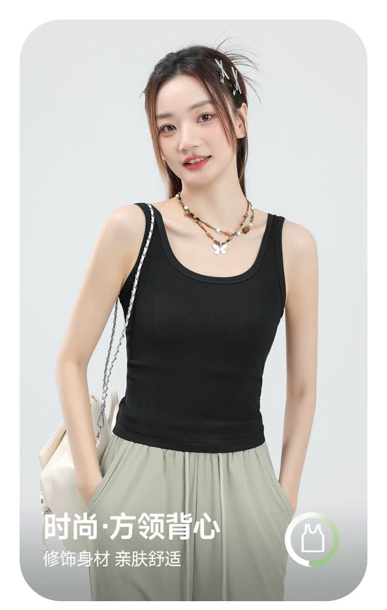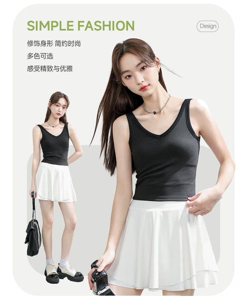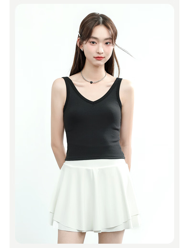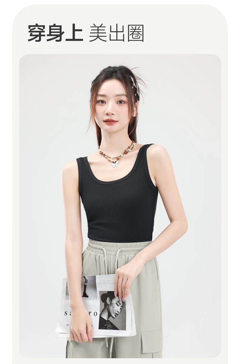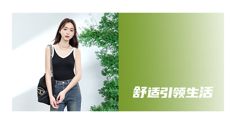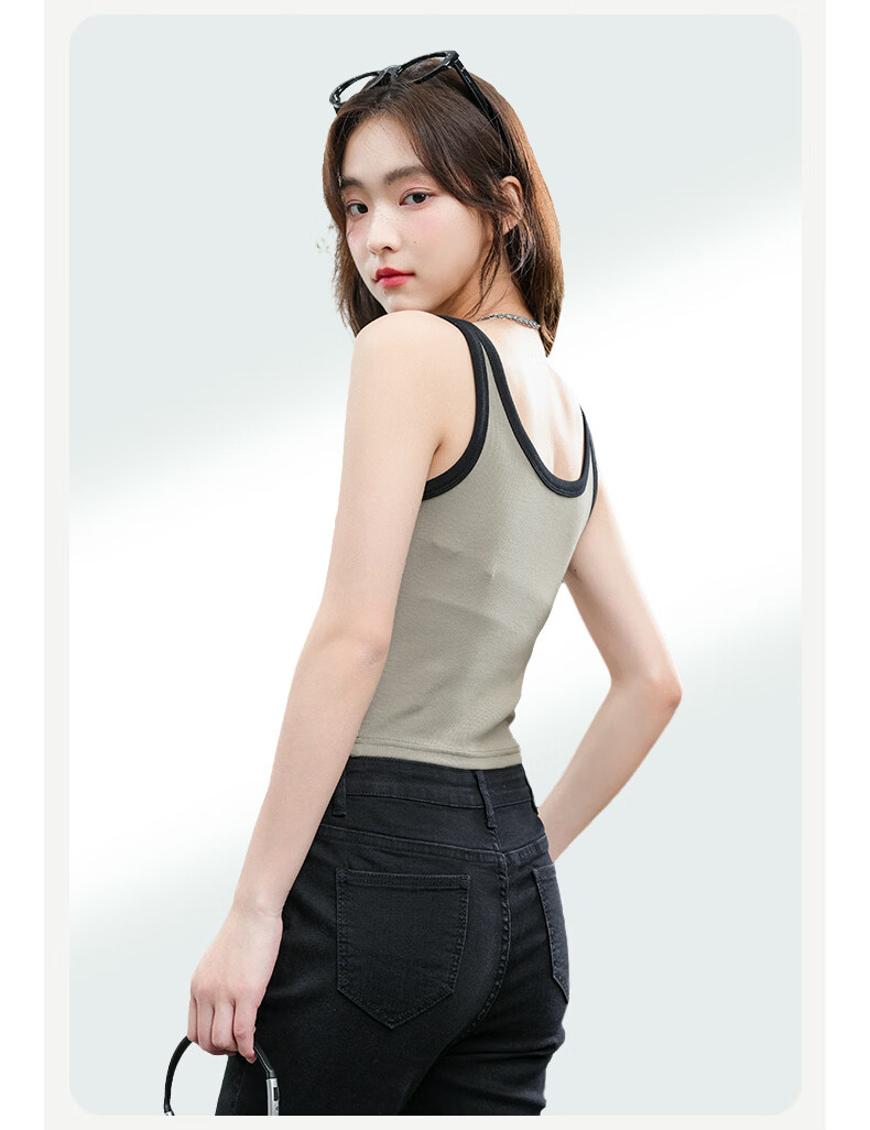 回力(Warrior)撞色V领吊带背心女2026年夏季女装新款时尚休闲简约百搭轻熟上衣 黑#纯色 XL