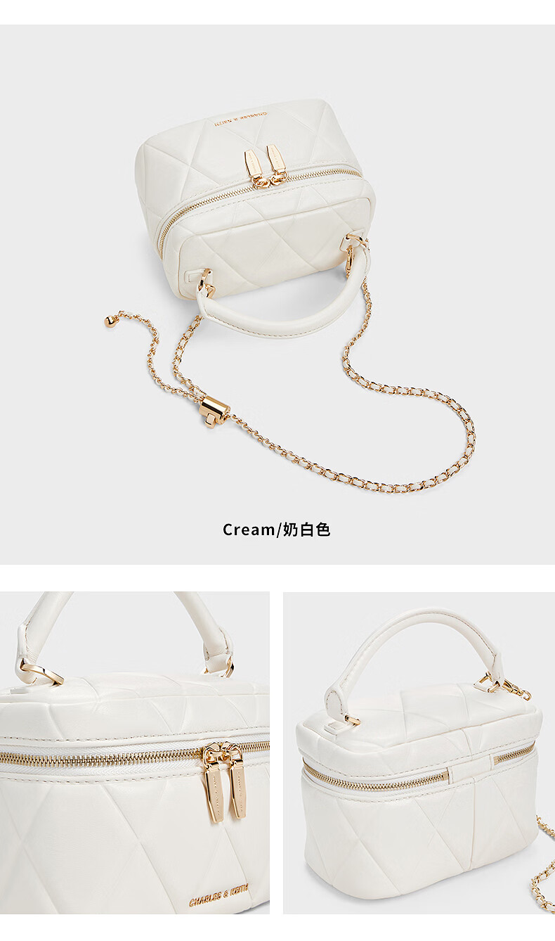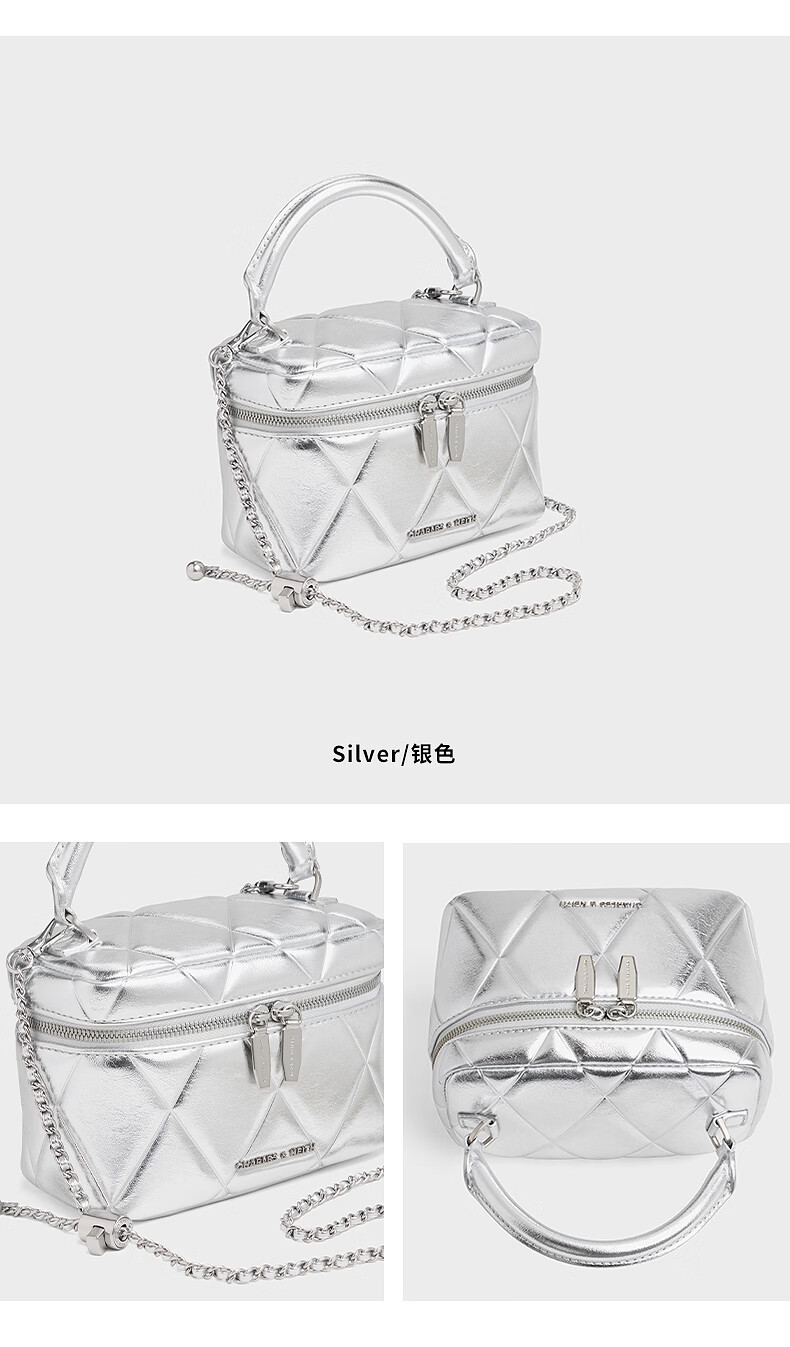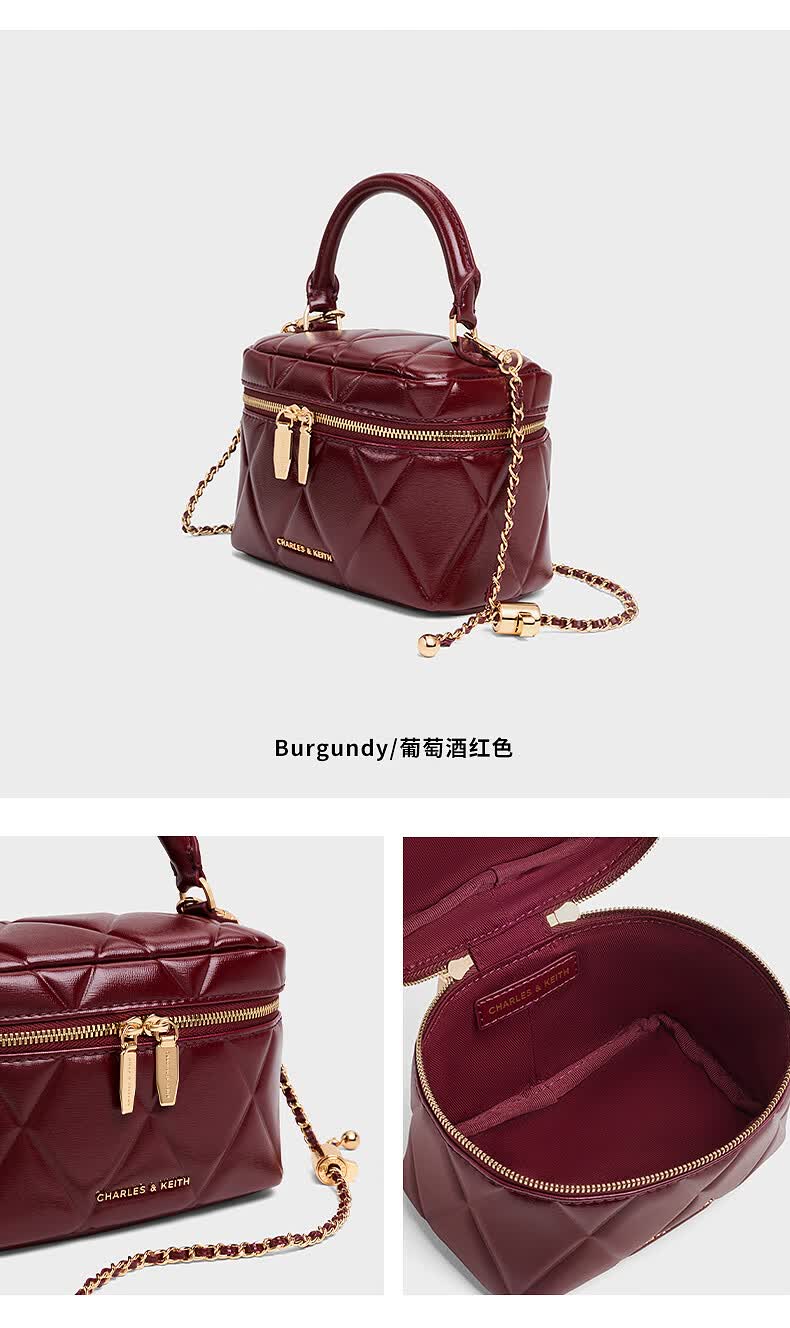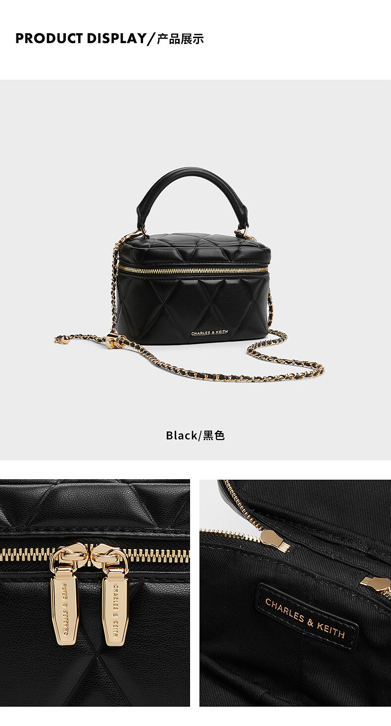 CHARLES&KEITH菱格链条手提斜挎小方包盒子包包女包生日礼物CK2-80782534