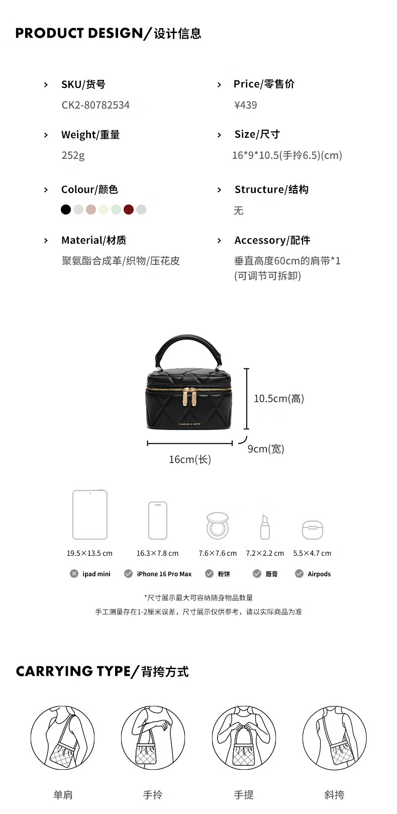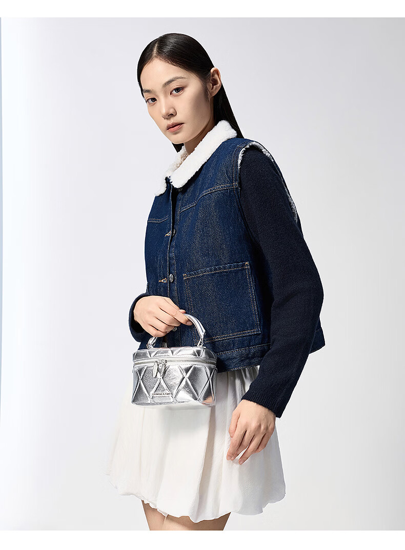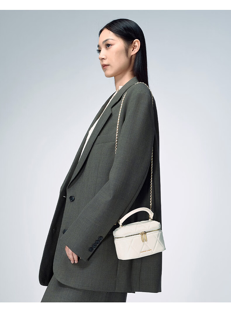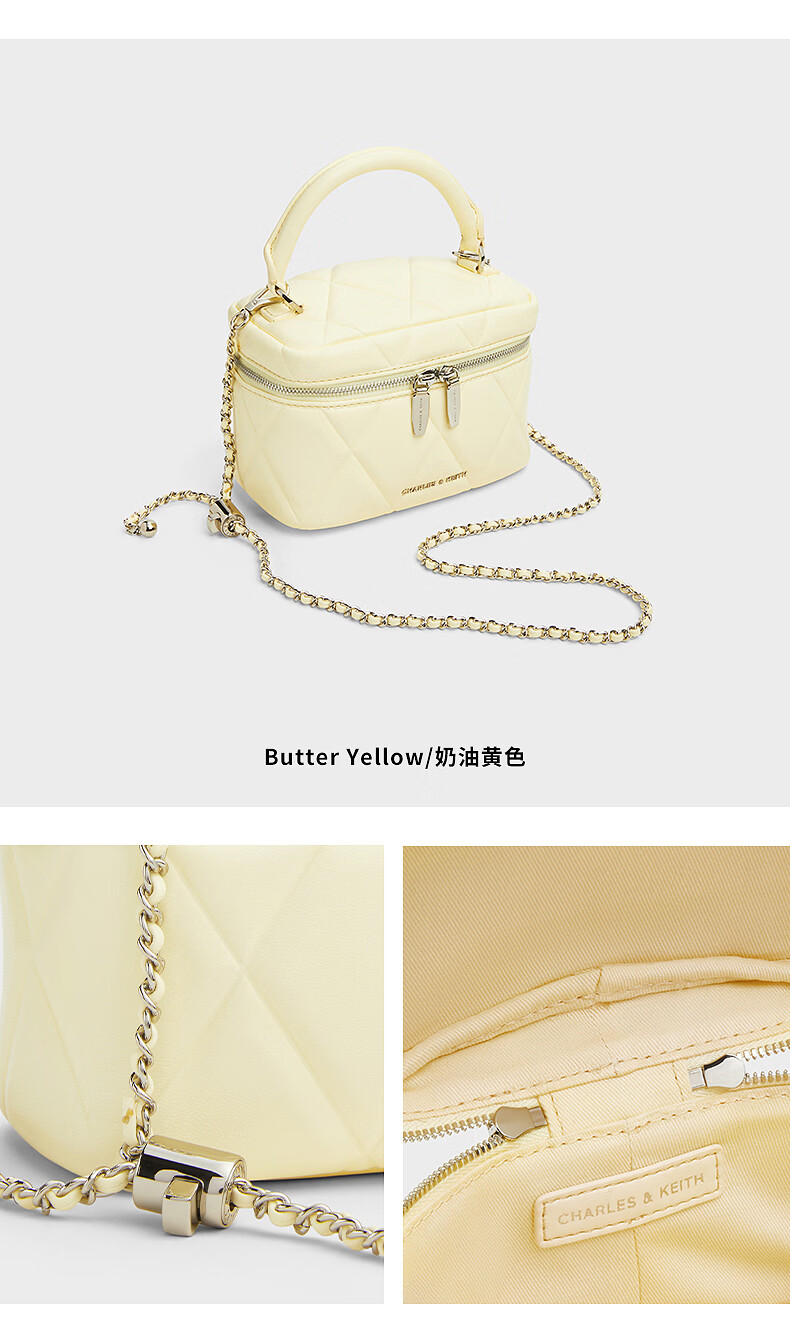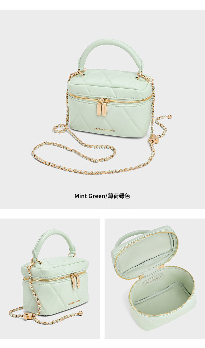 CHARLES&KEITH菱格链条手提斜挎小方包盒子包包女包生日礼物CK2-80782534