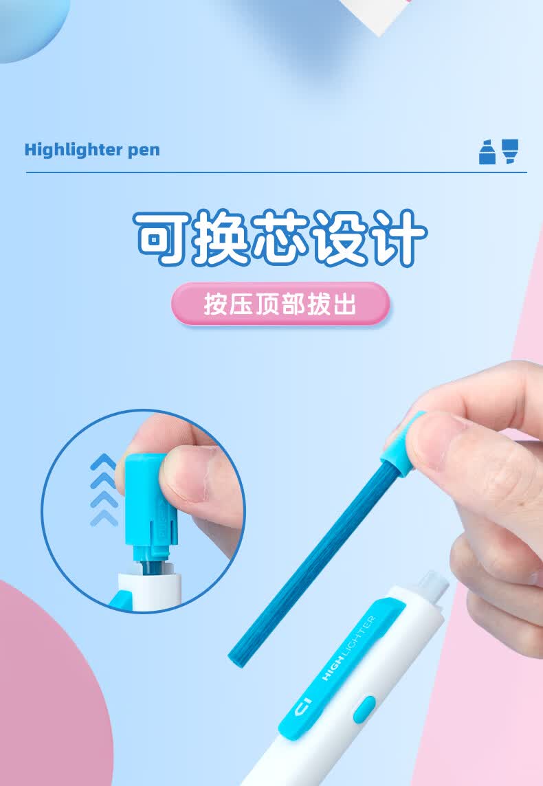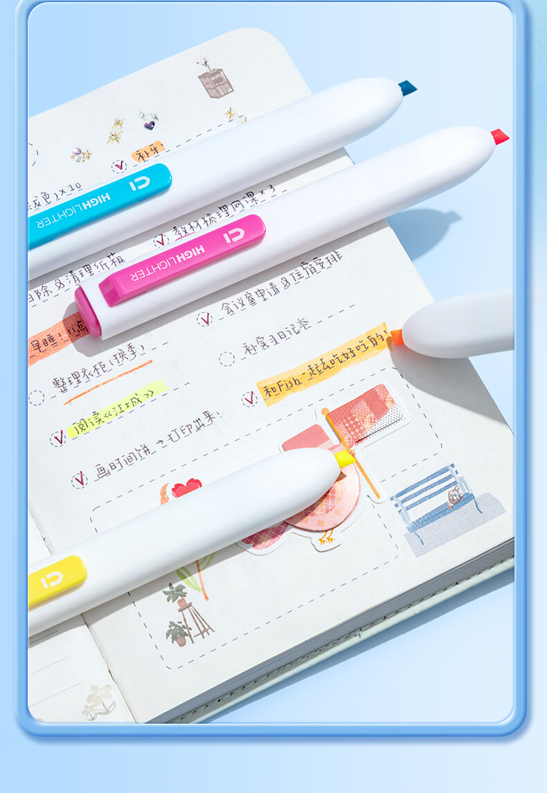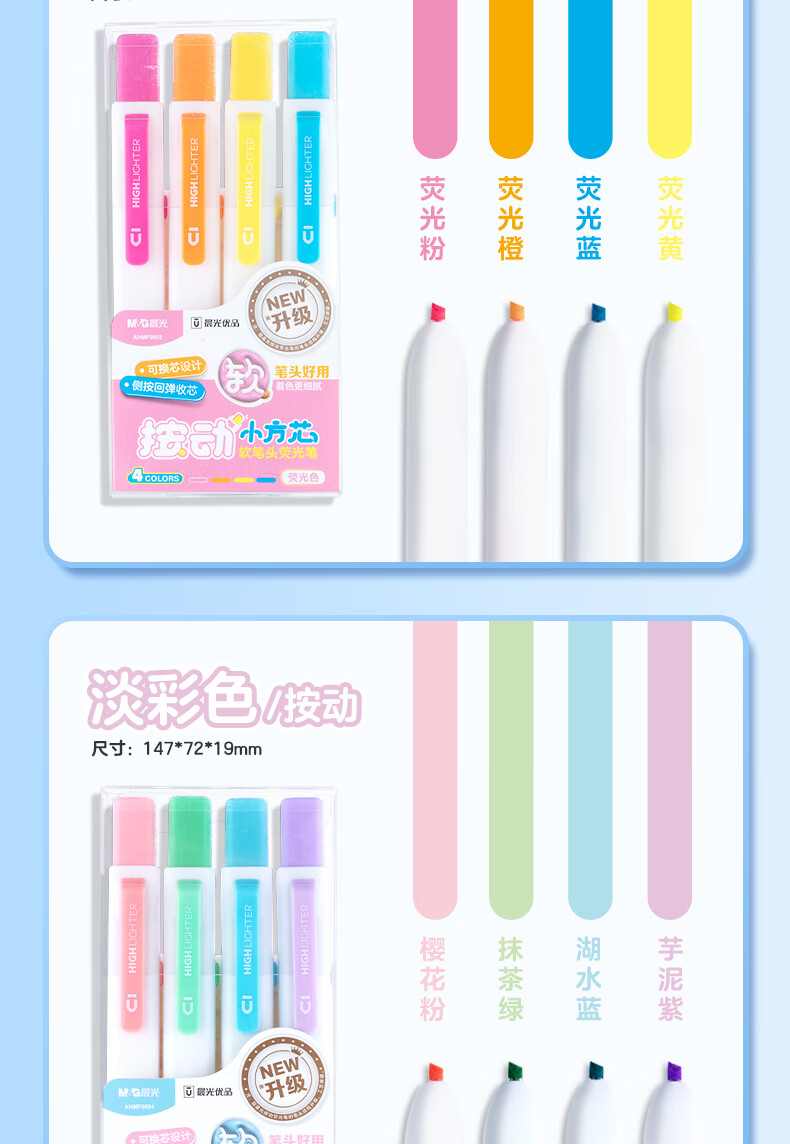 晨光优品按动小方芯淡彩四色荧光笔学生专用标记笔划重点彩色记号笔高颜值轮廓笔手帐笔1盒AHMF0604