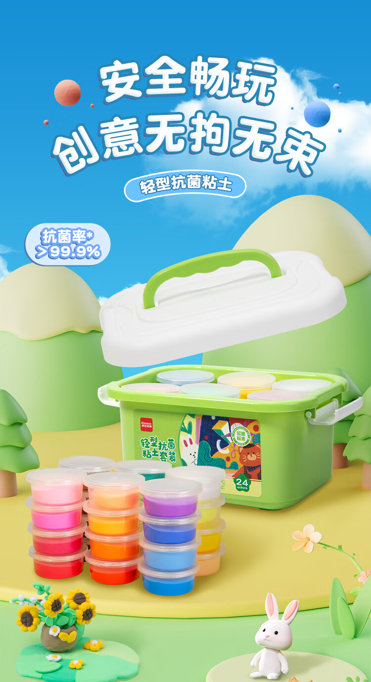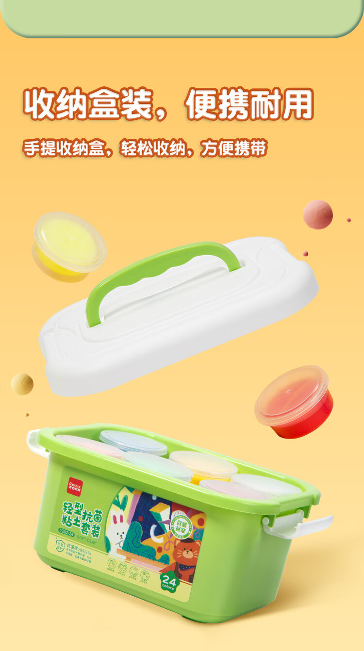 齐心(Comix)24色超轻粘土 抗菌彩泥橡皮泥儿童手工DIY玩具欧盟标准 盒装易收纳儿童六一礼物YZ02-24