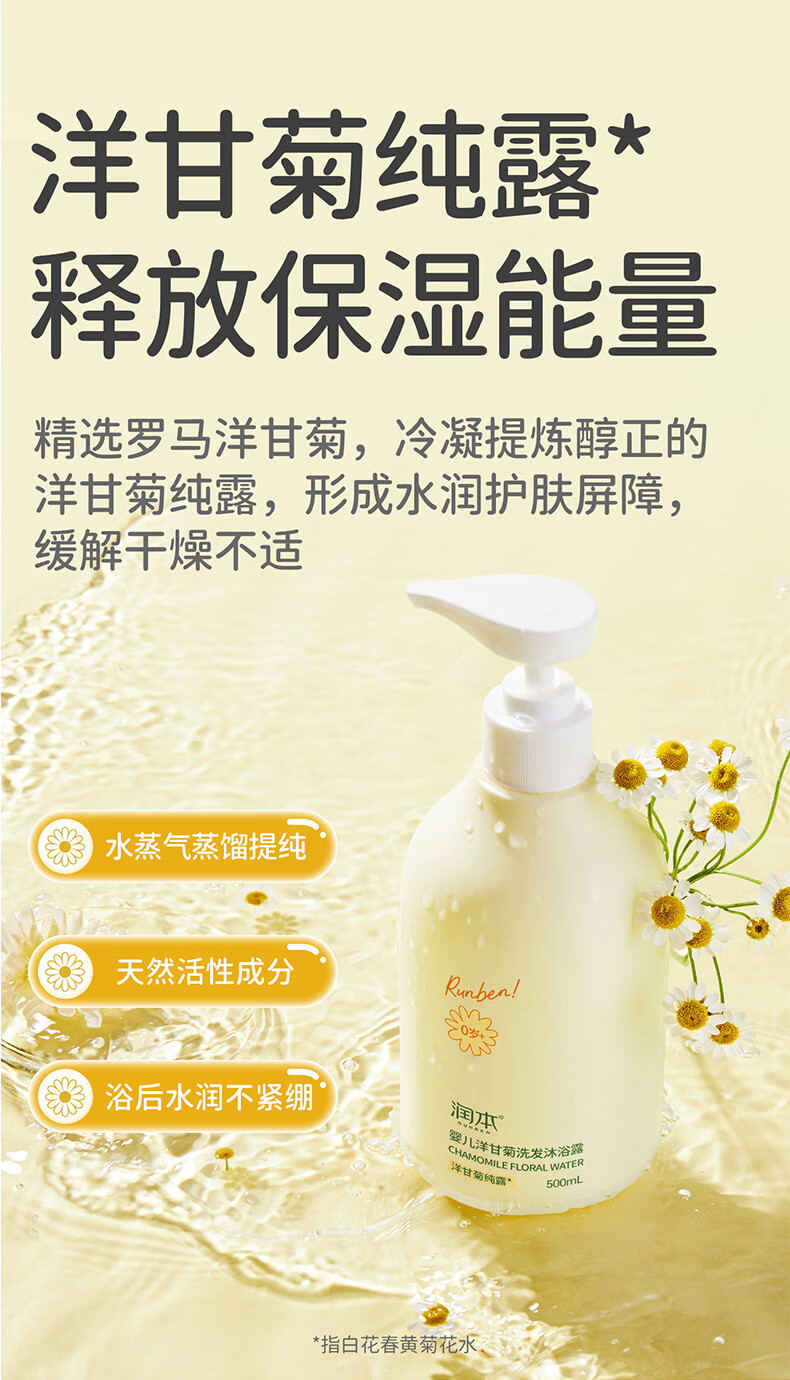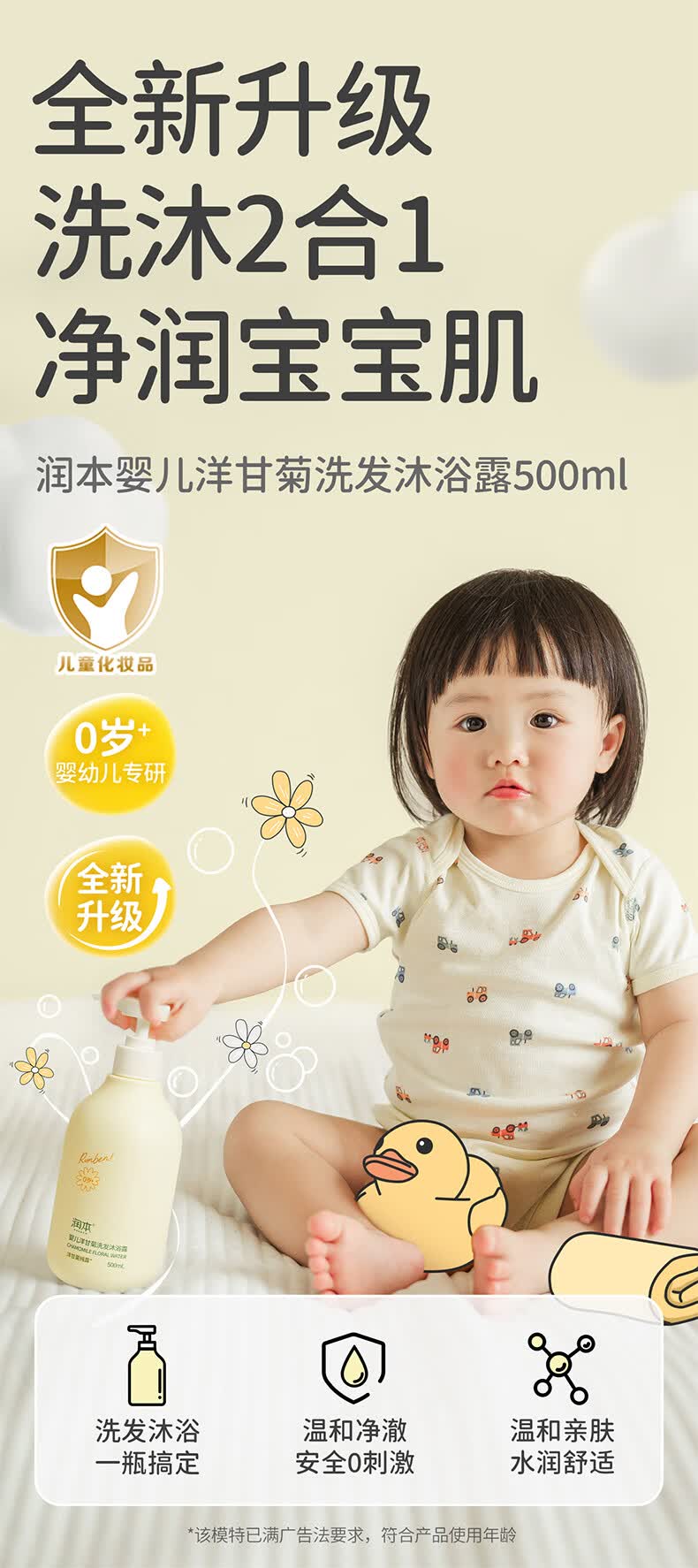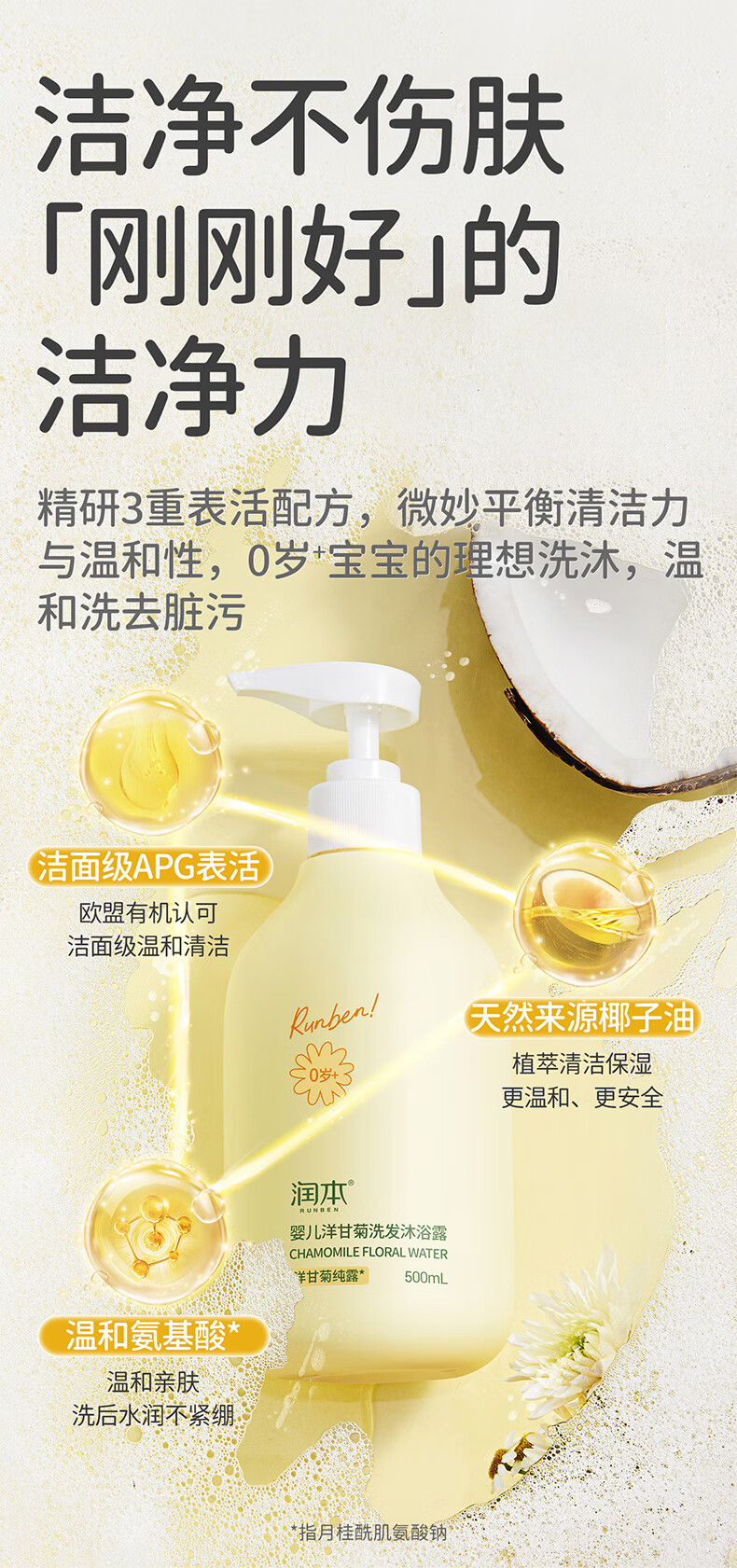 润本婴儿洋甘菊洗发水沐浴露儿童宝宝洗护二合一温和保湿洗澡500ml