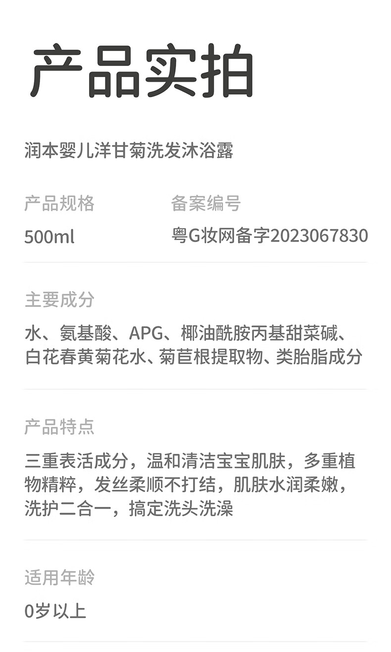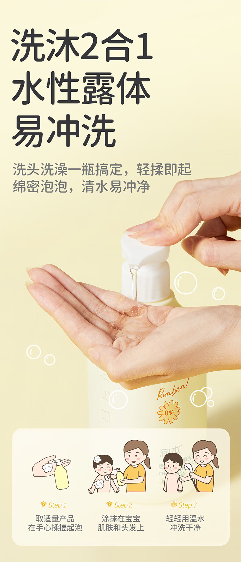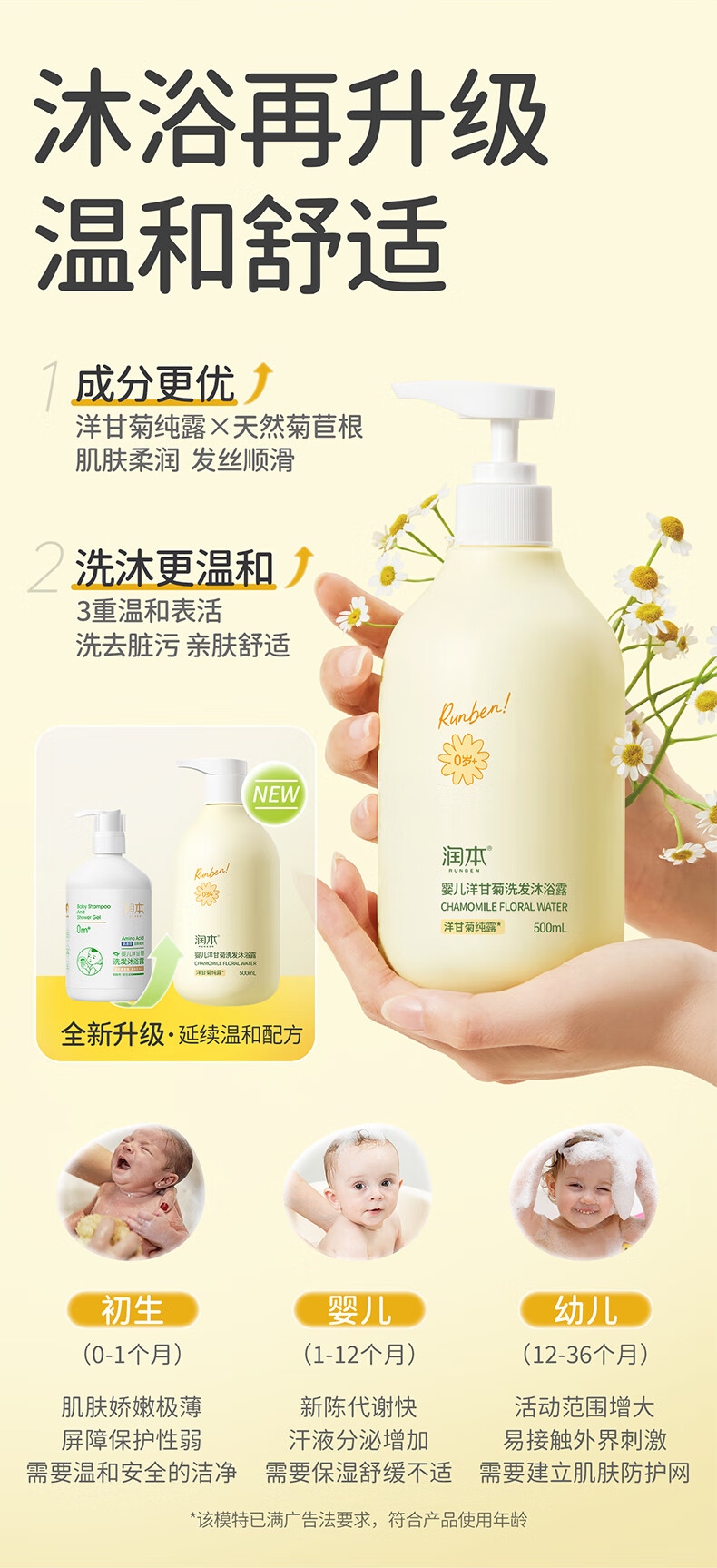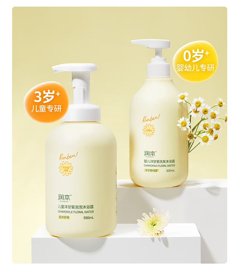 润本婴儿洋甘菊洗发水沐浴露儿童宝宝洗护二合一温和保湿洗澡500ml