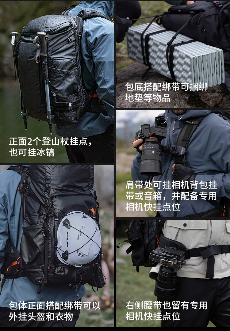 PGYTECH相机包蒲公英OneproFlex登山摄影包单反微单相机双肩包户外短途收纳大容量探险版50L大号L内胆套装