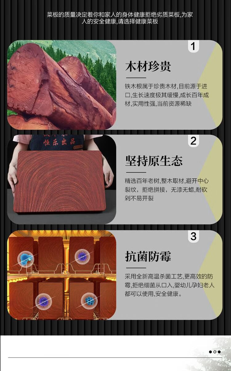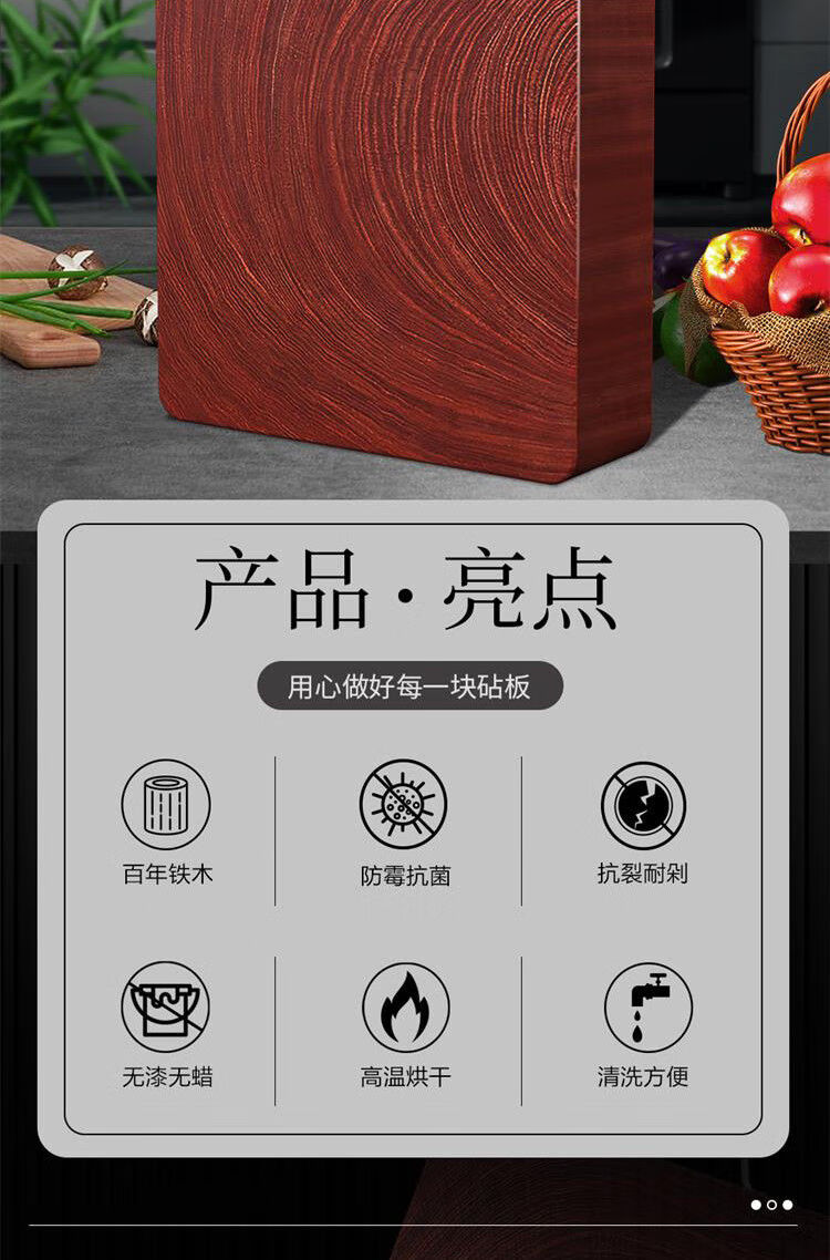 简漾正宗铁木砧板菜板家用防霉抗菌面板实木案板水果刀板加厚和面板子 26+38+4cm