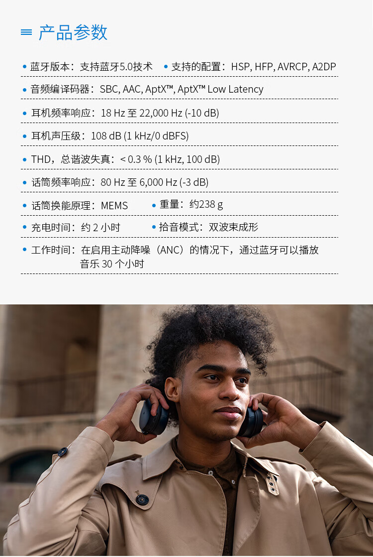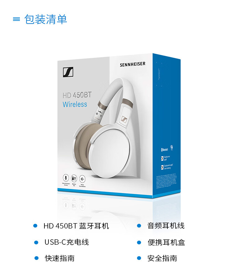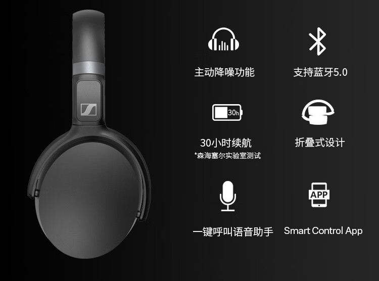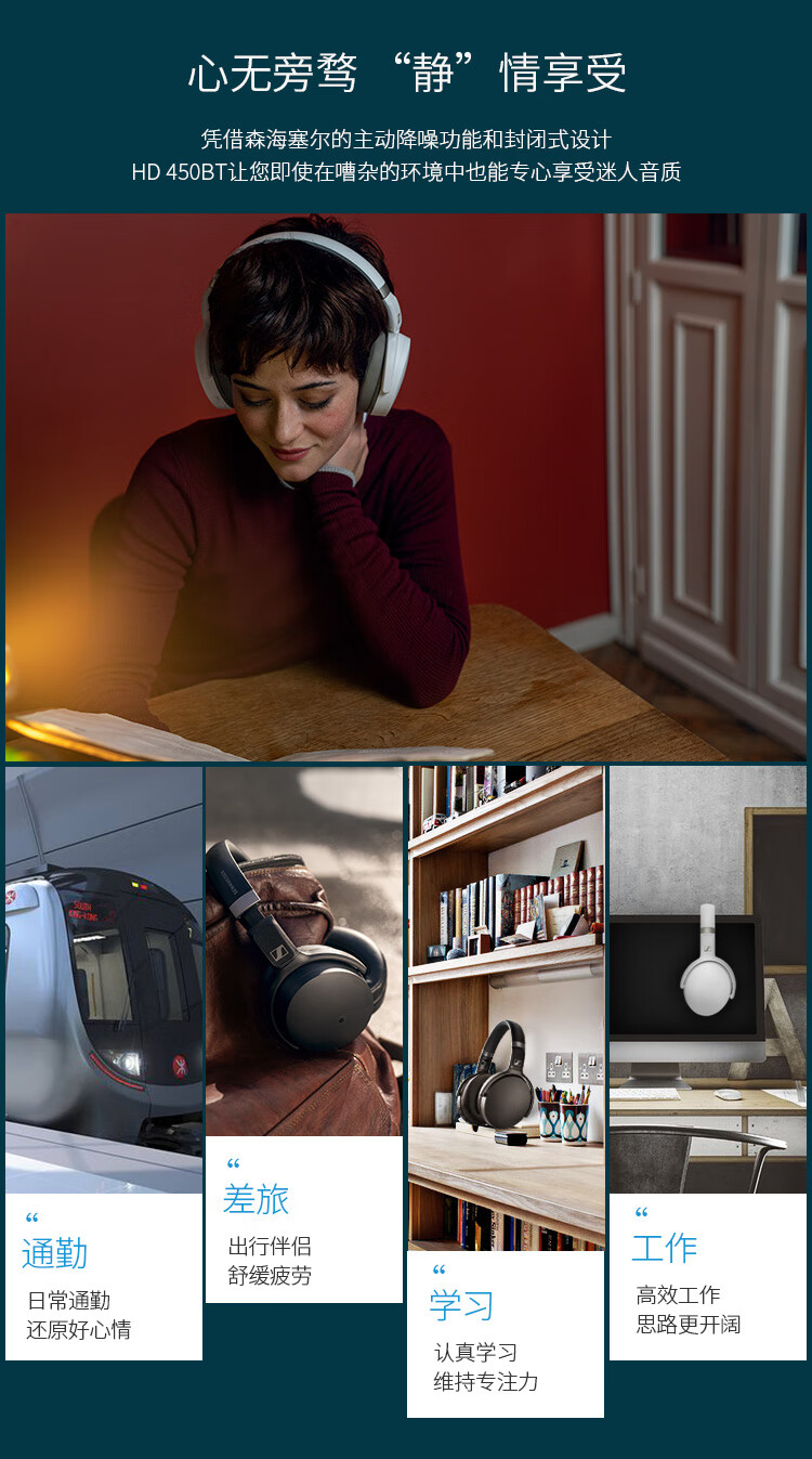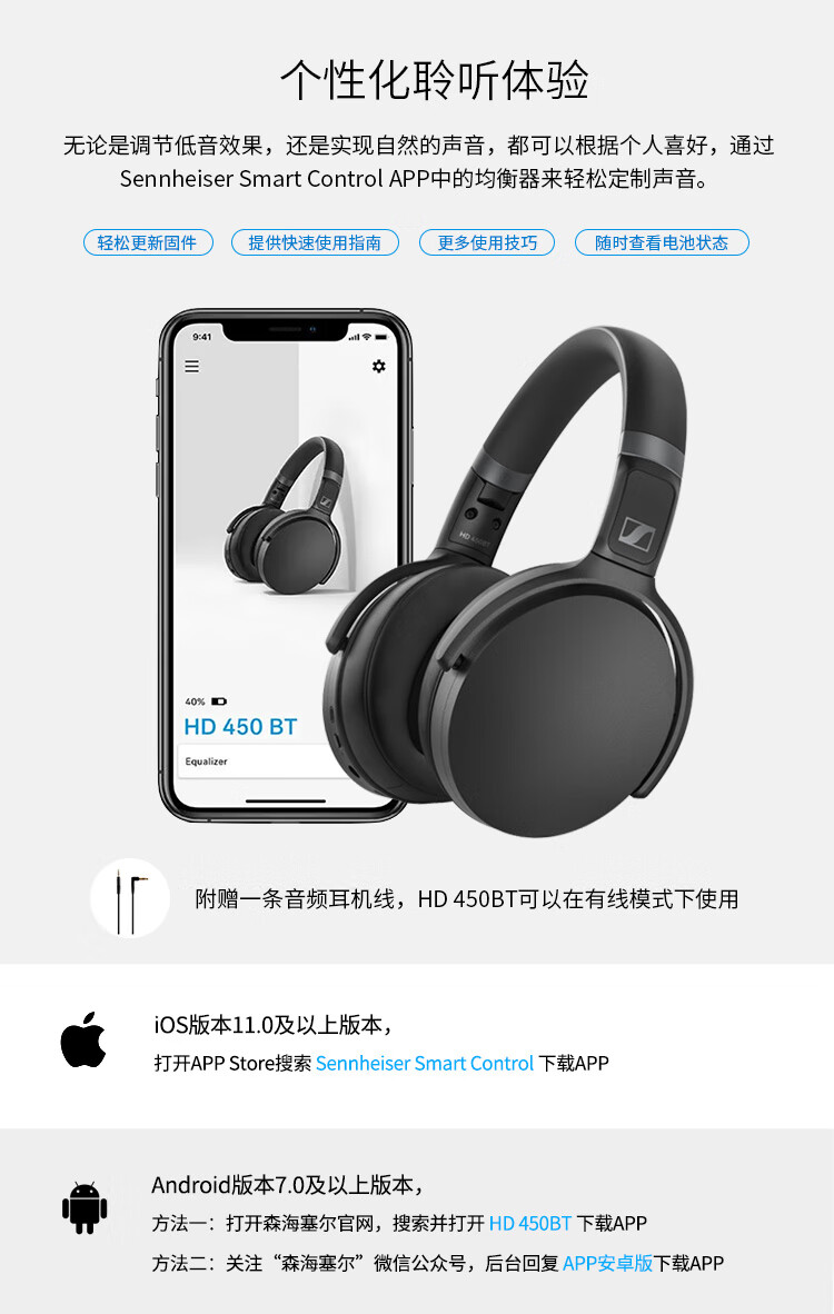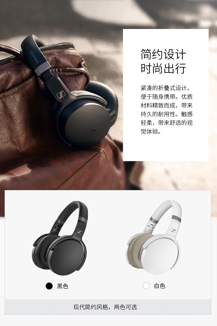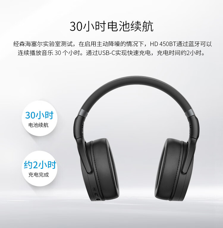 森海塞尔HD450BT头戴式无线蓝牙主动降噪包耳式折叠便携HIFI高保真音乐游戏耳机生日礼物礼品 HD 450BT黑色(主动降噪)