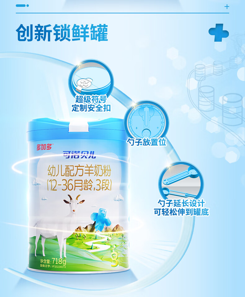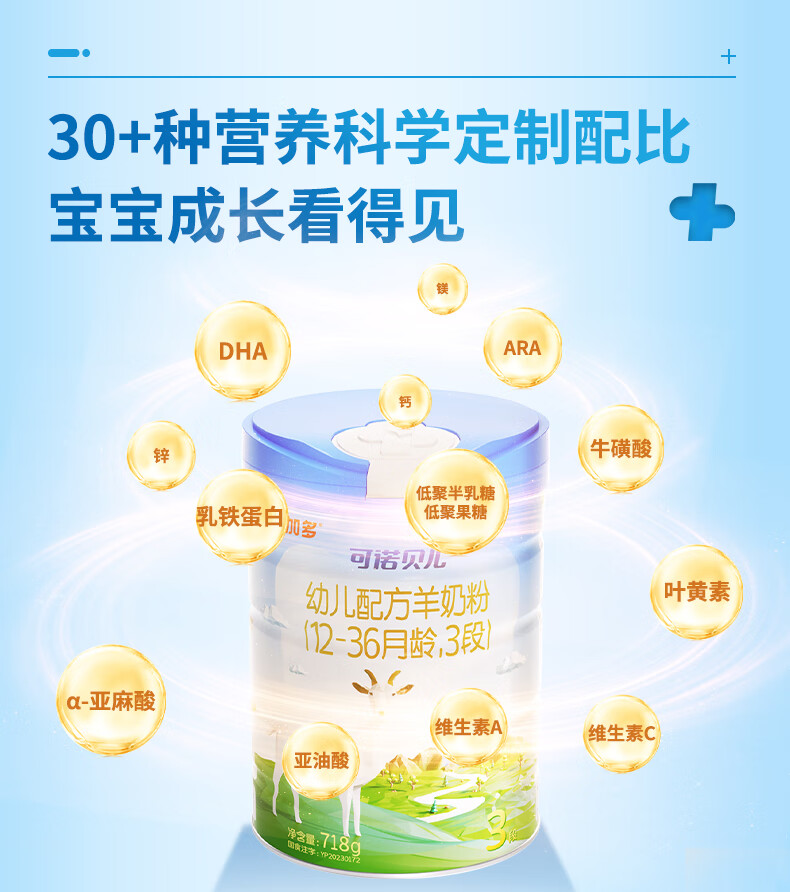 可诺贝儿多加多幼儿配方羊奶粉3段12-36月龄宝宝羊奶粉幼儿3段718g 可诺3段718g*3