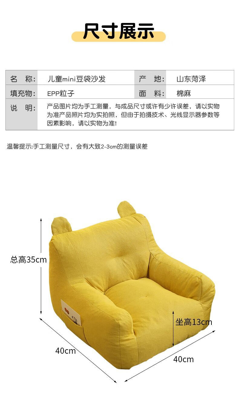 婴儿沙发宝宝小沙发小月龄儿童懒人沙发座椅可躺可睡拍 黄色40*40*35cm