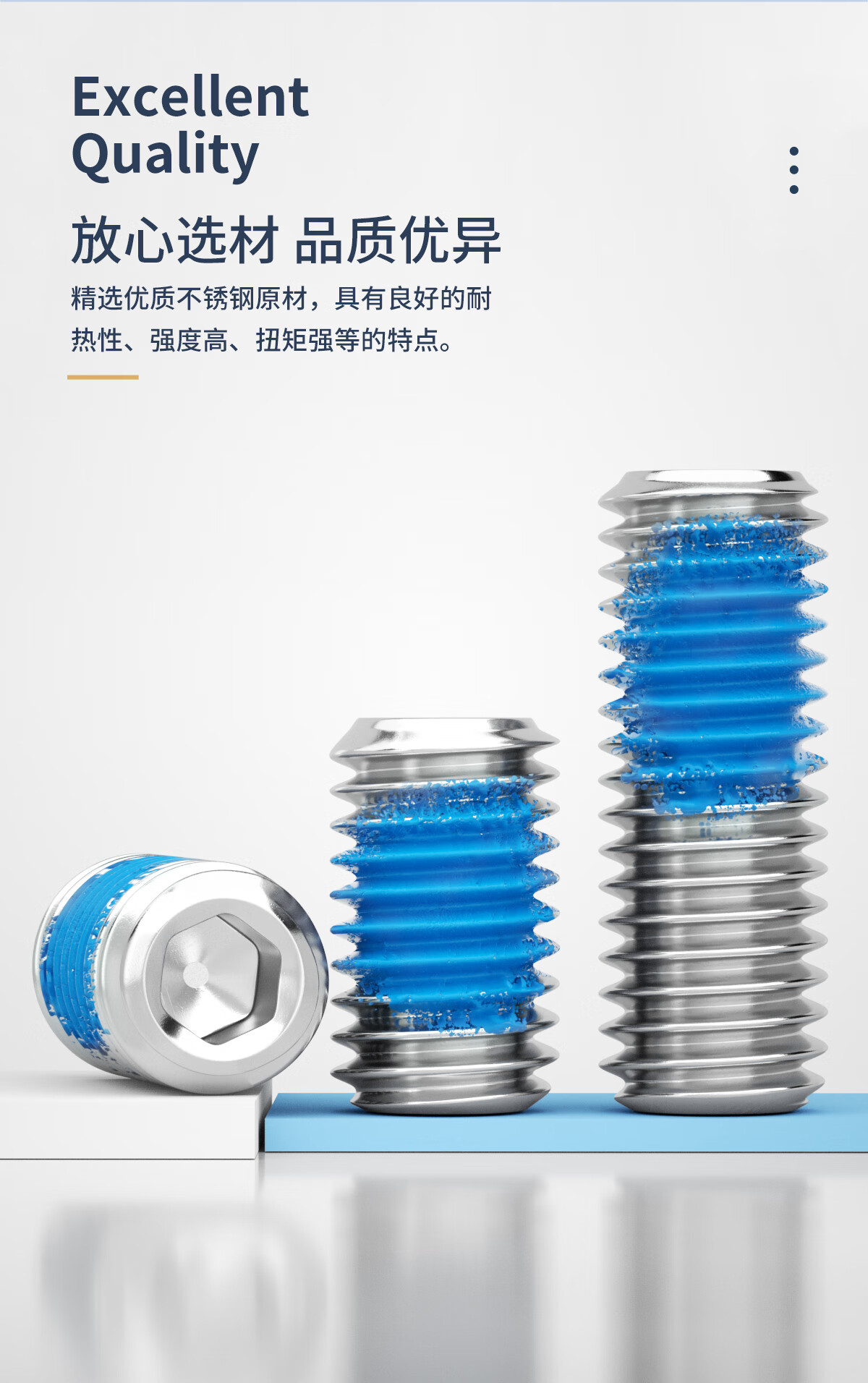 固万基(GUWANJI)304不锈钢内六角点胶平端紧定基米机米防松动涂蓝胶螺丝钉M2-M8 M2x3[50只]