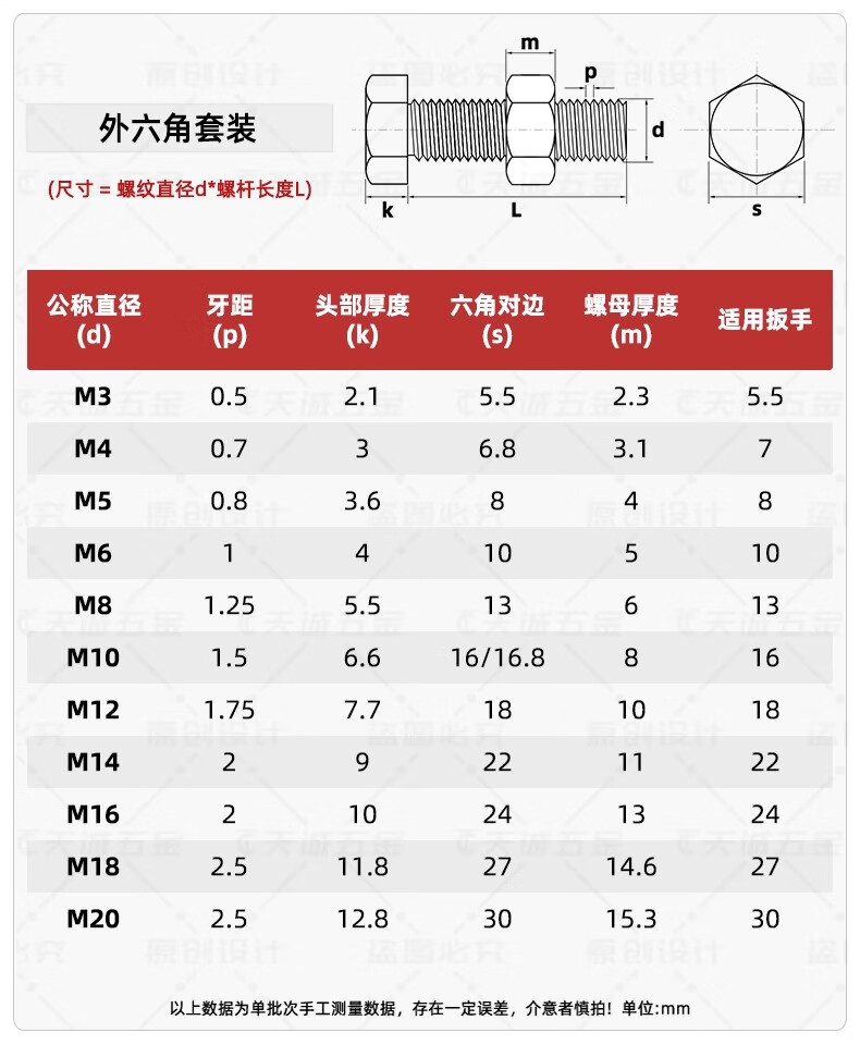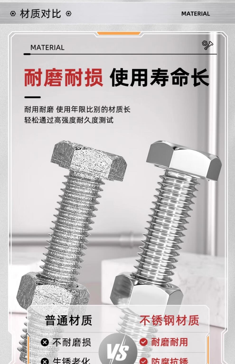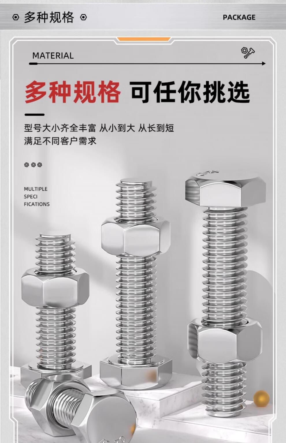 天卓五金M3-M20 304不锈钢外六角螺丝钉螺杆螺母组合套装六角螺栓M4M5M6M8 M3*6-80套