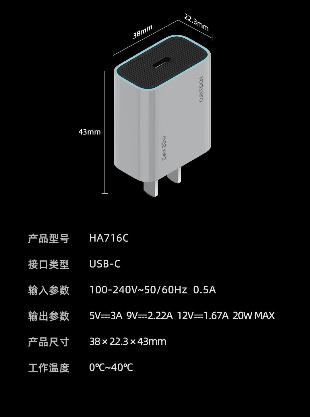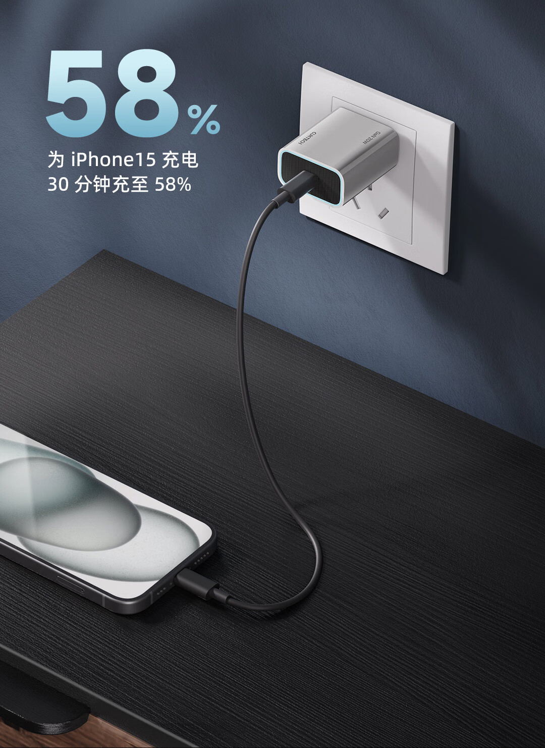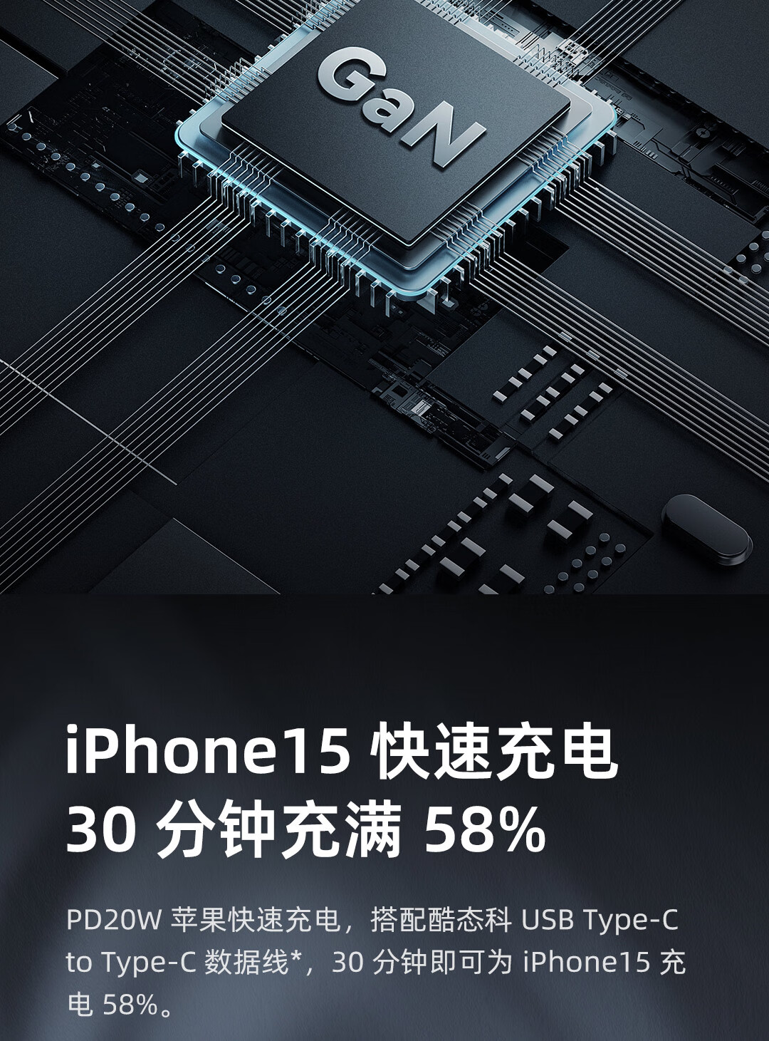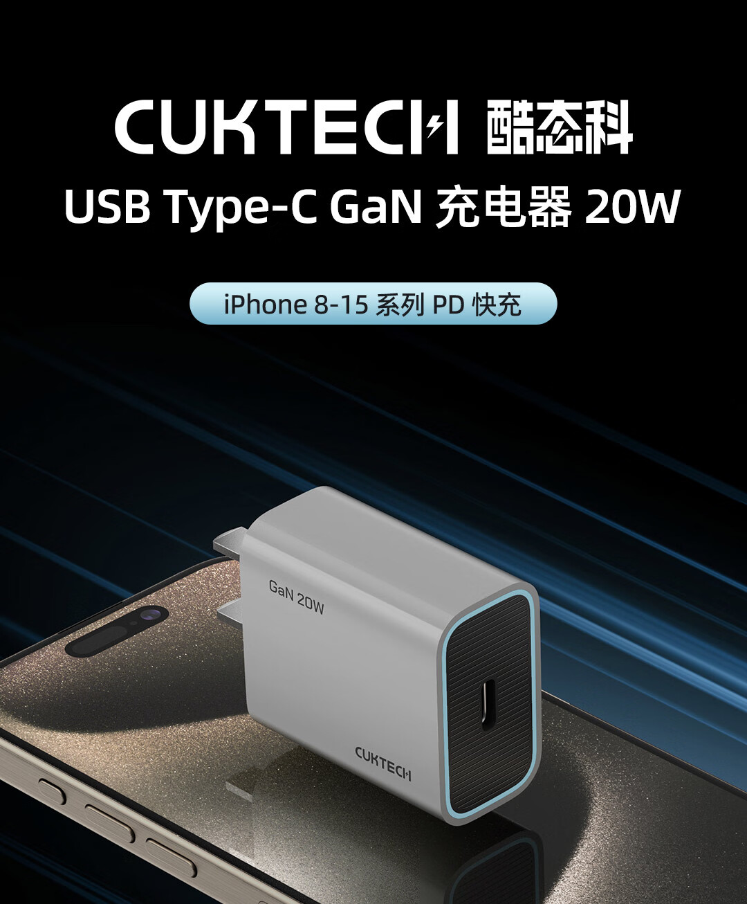 CUKTECH酷态科充电器 iPhone16充电头 PD20W快充 氮化镓充电器 Type-C适用苹果16/15/14/iPad手机平板 高性能氮化镓快充头 灰色 GaN20W氮化镓快充充电器