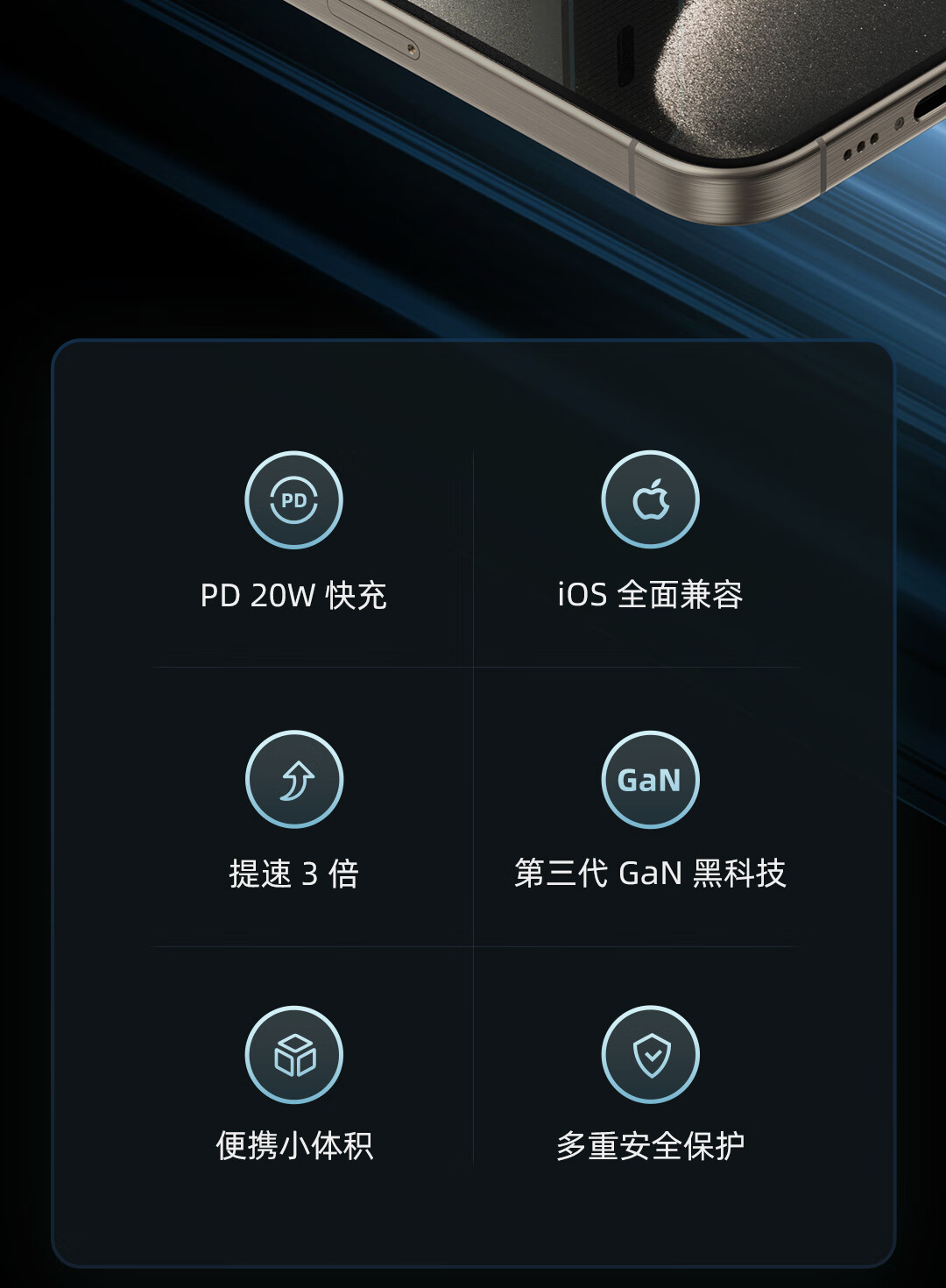 绿联氮化镓苹果充电头iPhone17充电器PD20W快充 适用苹果16/15/14ProMax/13/12手机iPad平板 【20W】氮化镓快充头-远峰蓝