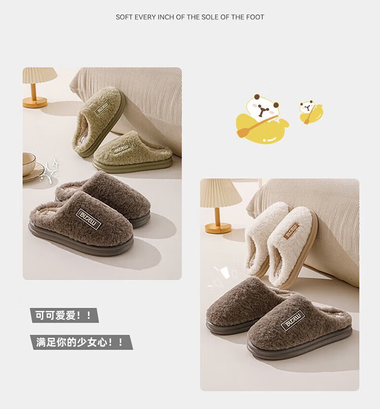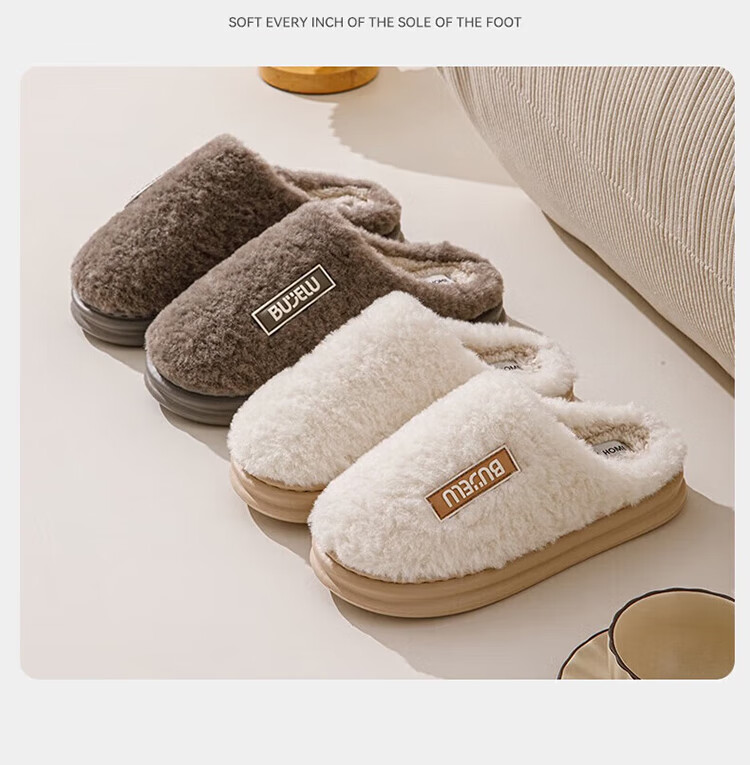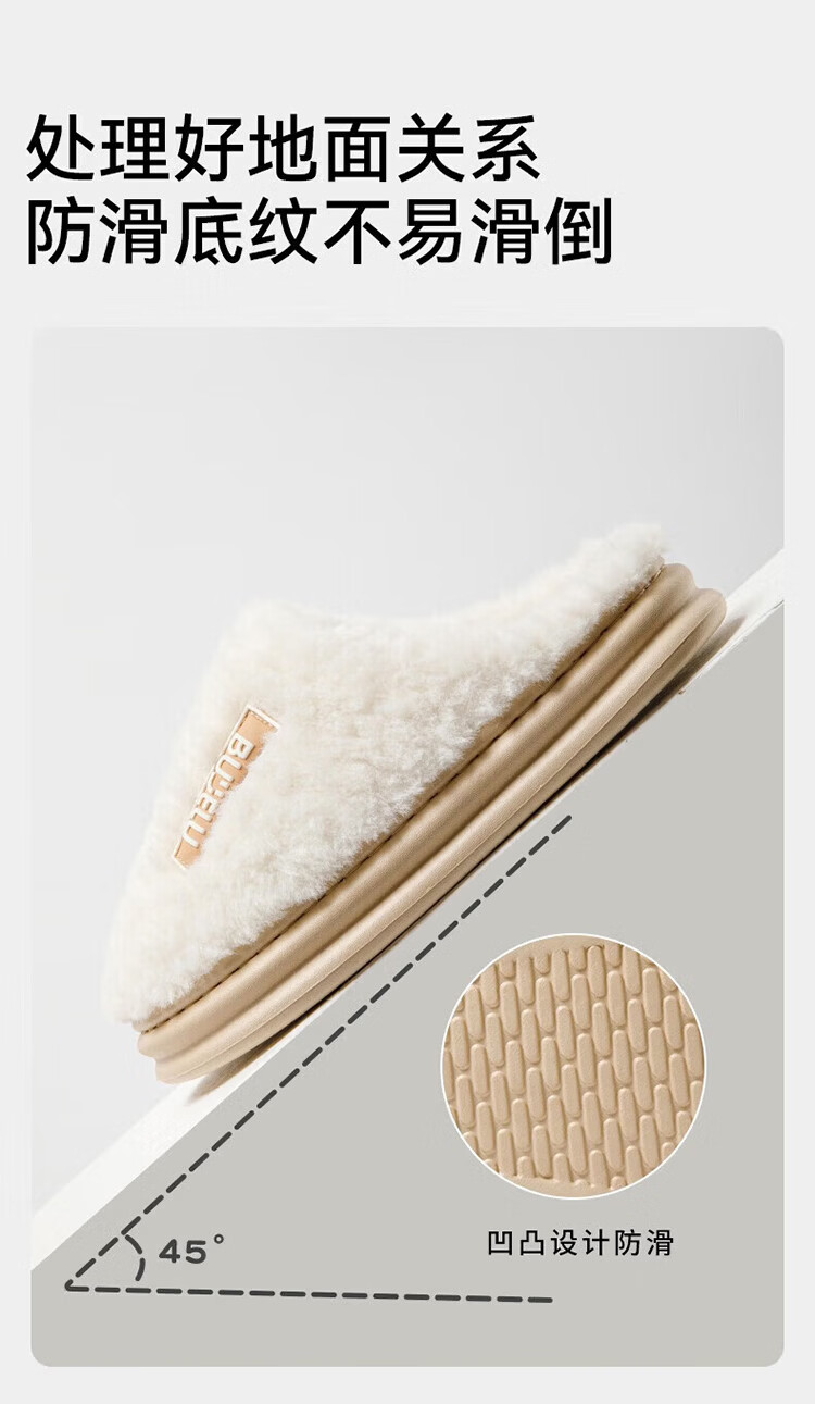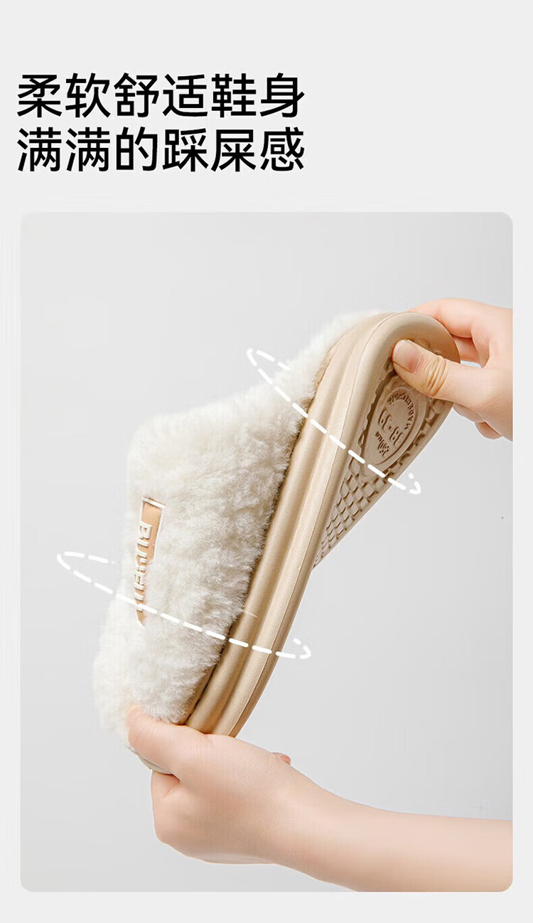 筏芯德国2025新款厚底棉拖鞋男款室内居家保暖加绒毛绒踩屎感男士 灰色【99%除臭抑菌】保暖防寒 35-36 【适合34 35】4.0踩屎感