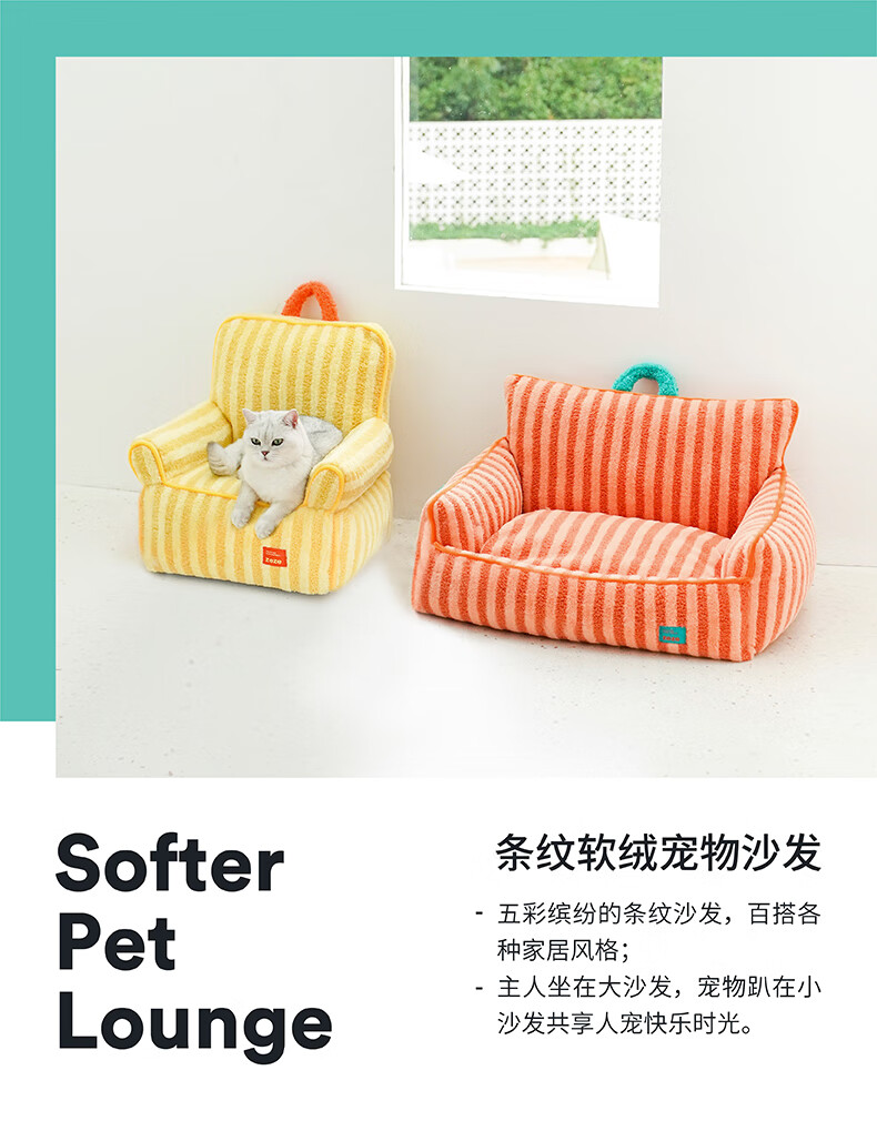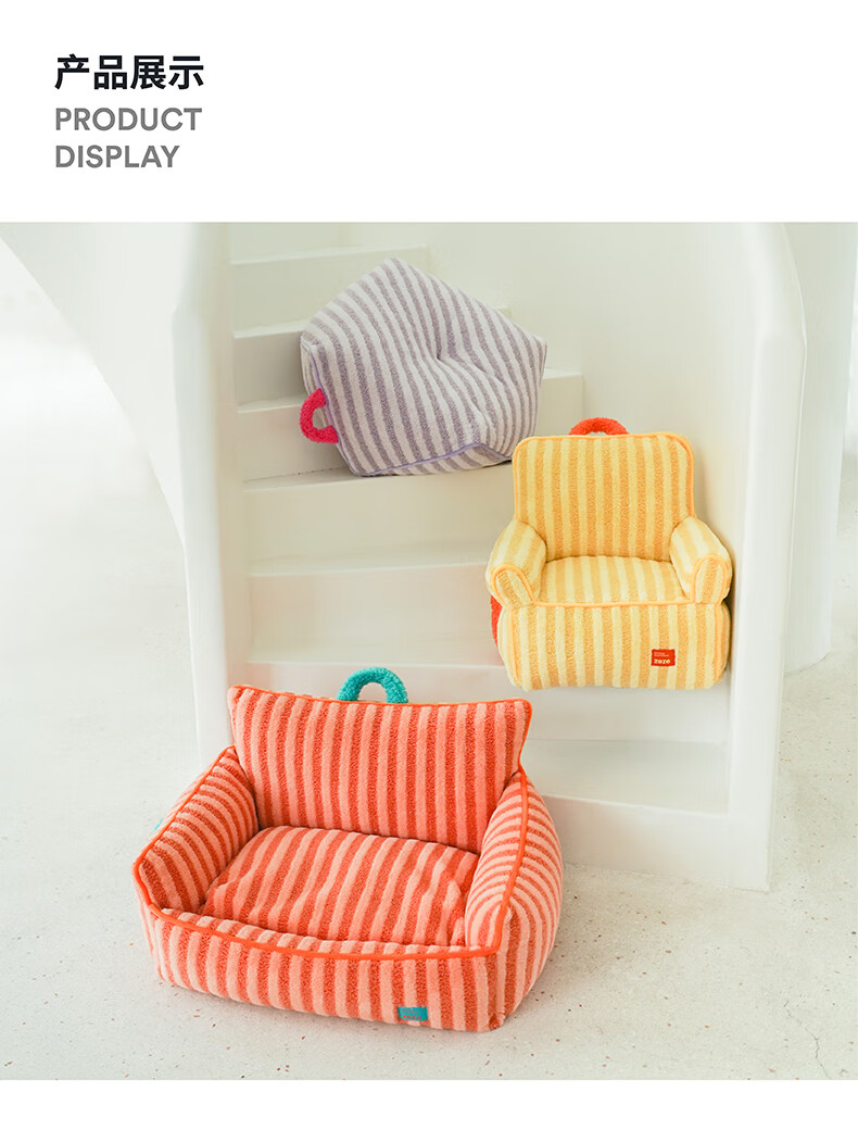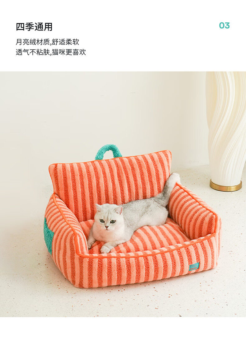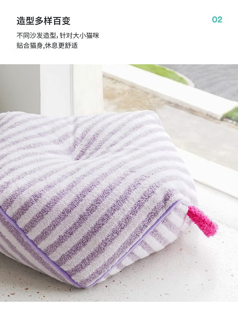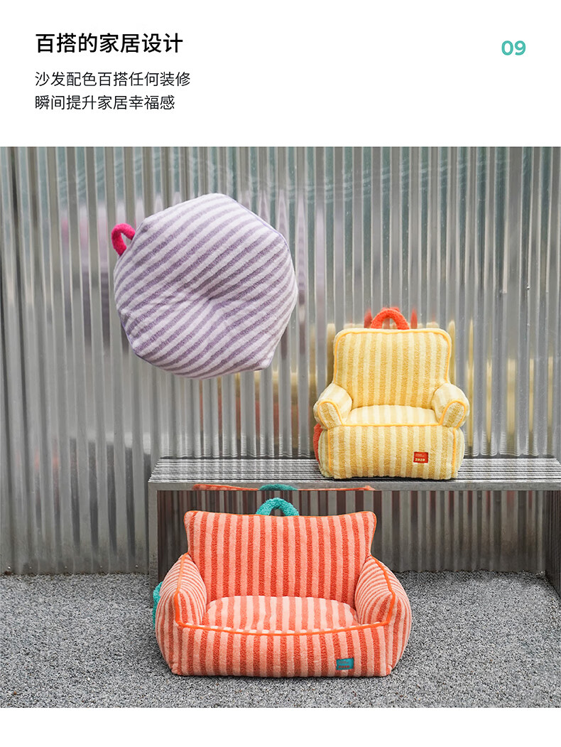 ZEZE条纹宠物床保暖猫床四季通用可拆洗可爱宠物沙发猫咪窝软绒垫