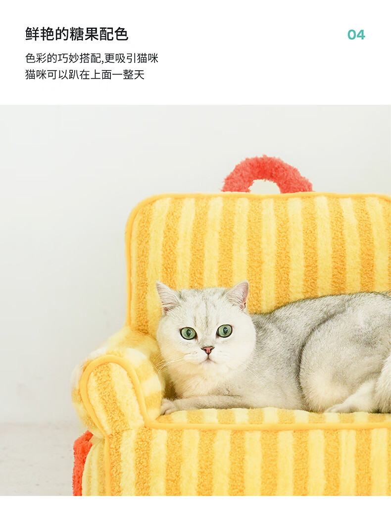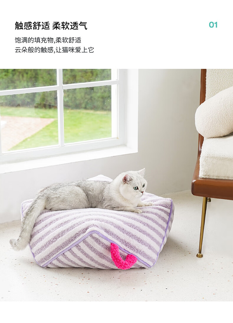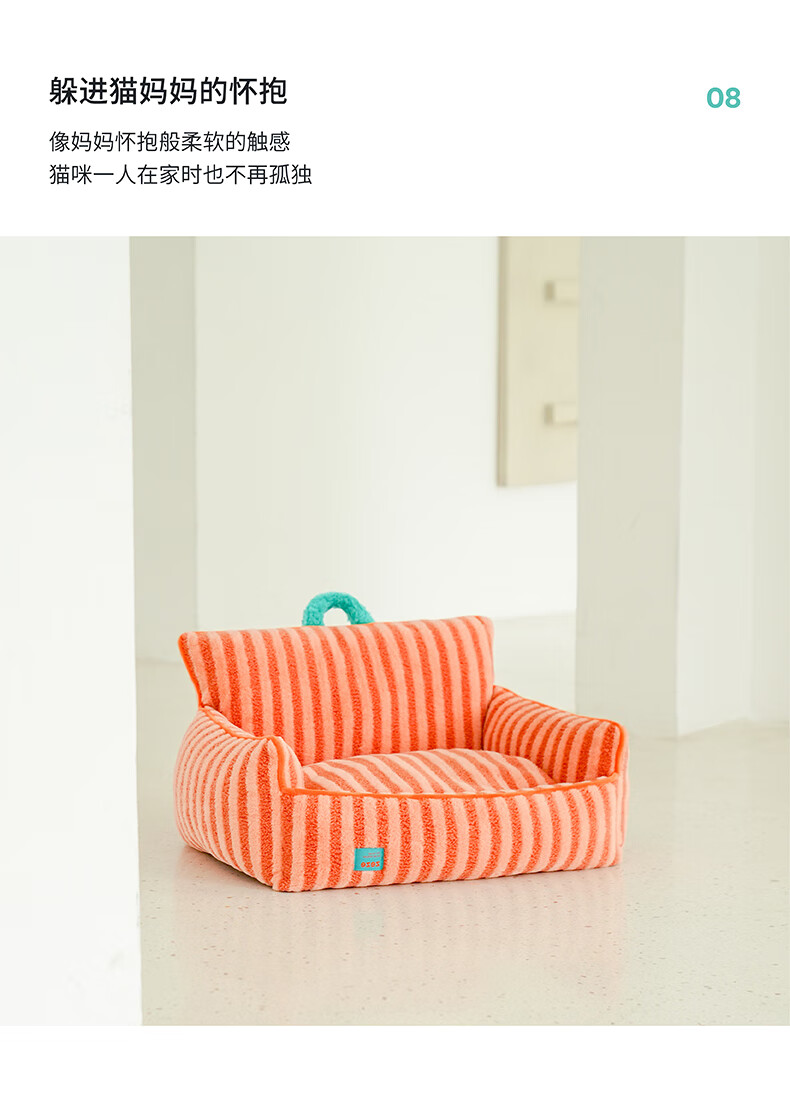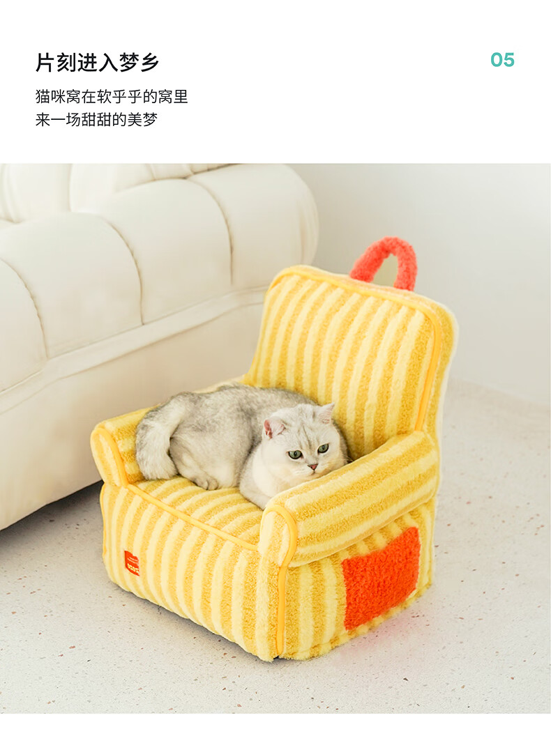 ZEZE条纹宠物床保暖猫床四季通用可拆洗可爱宠物沙发猫咪窝软绒垫