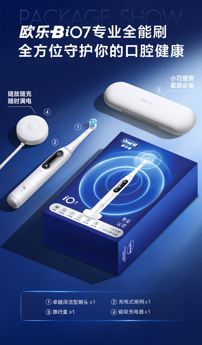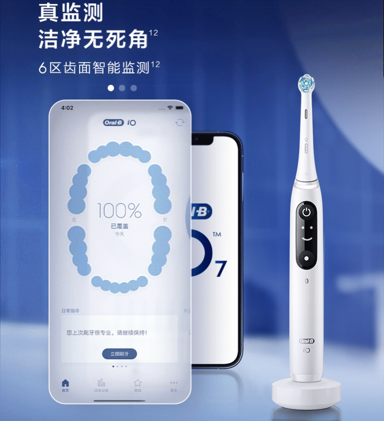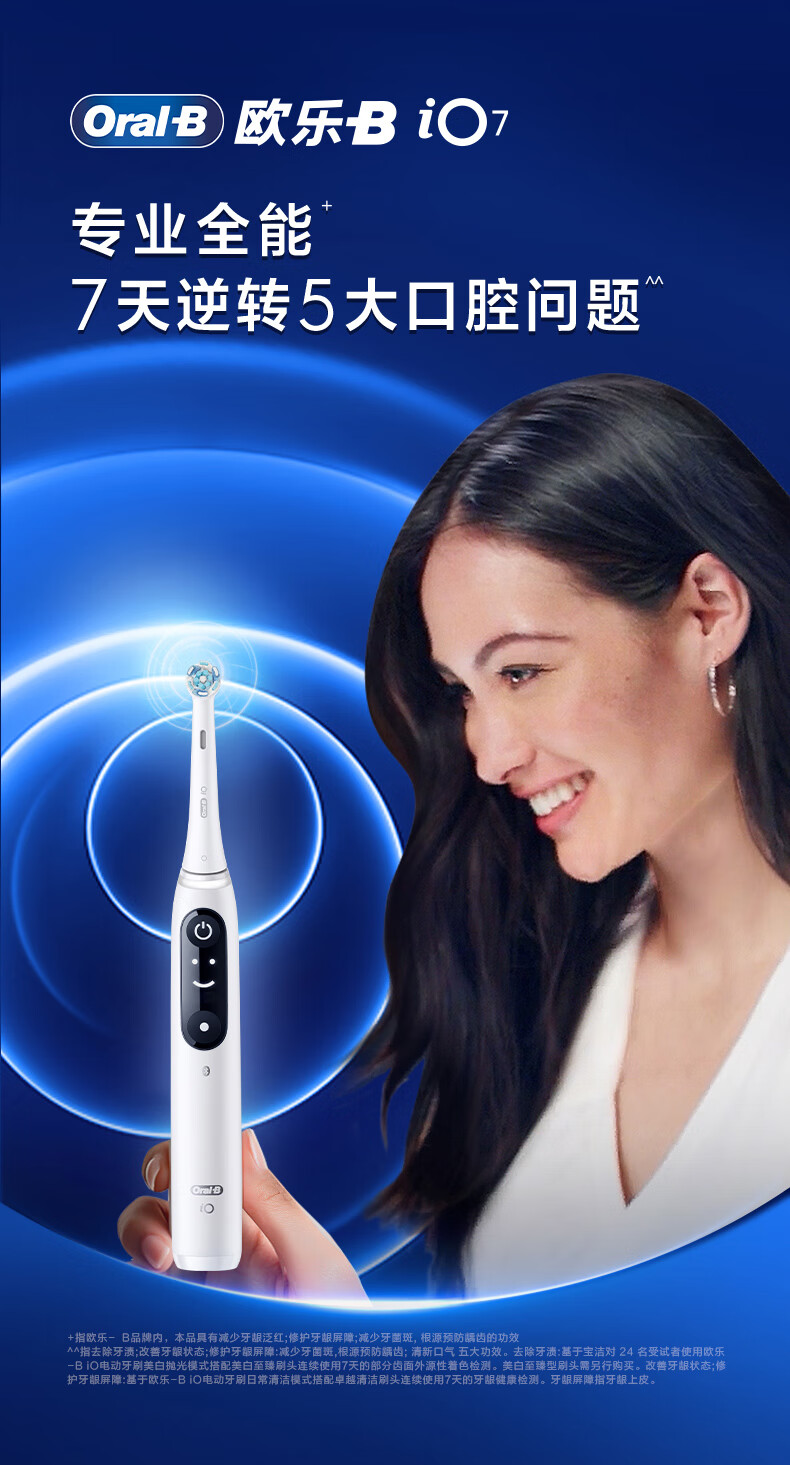 欧乐B智能电动牙刷iO7大理石白刷头*1深度清洁京东自营热卖榜生日礼物圣诞礼物商务送礼情侣送男友女友
