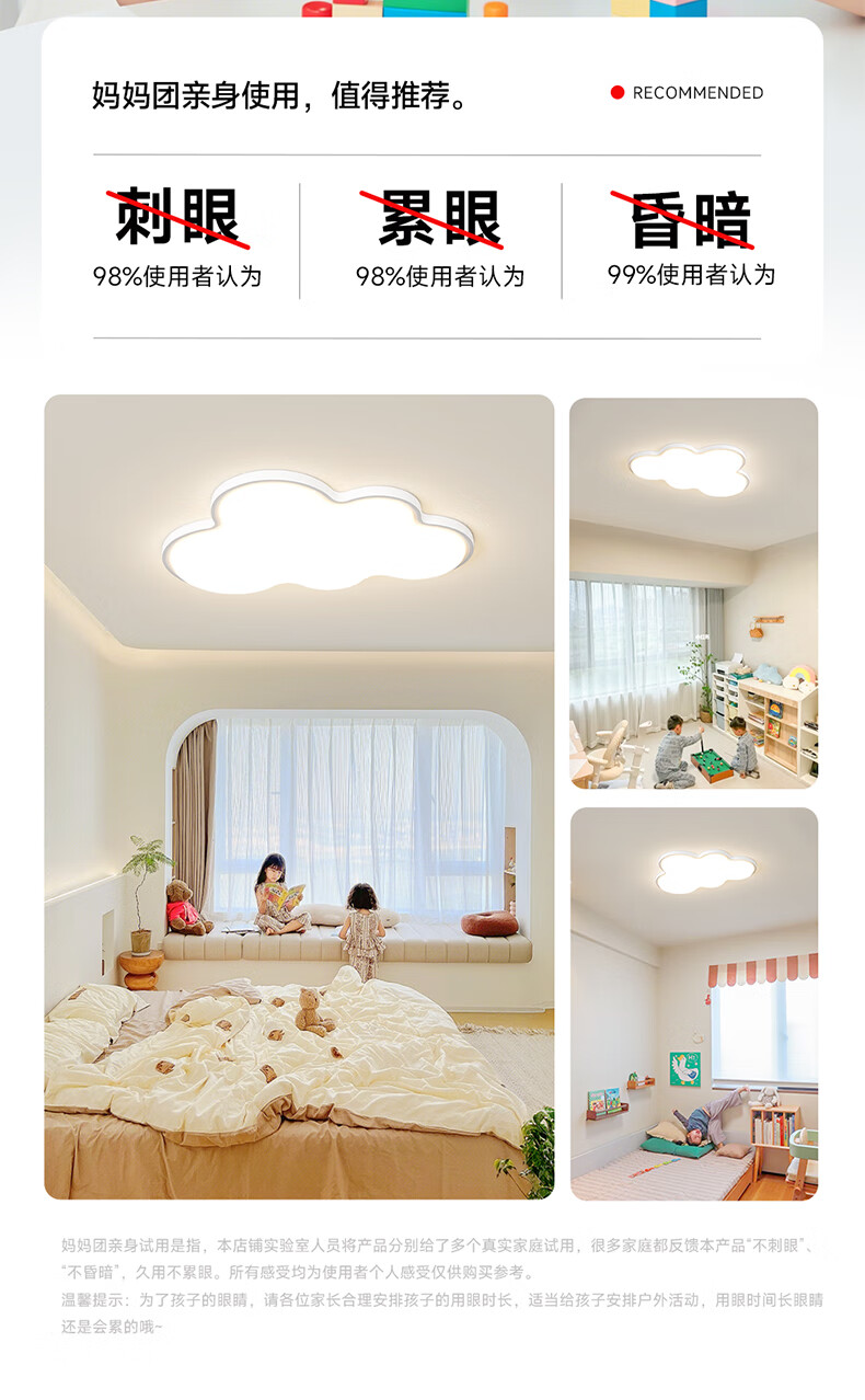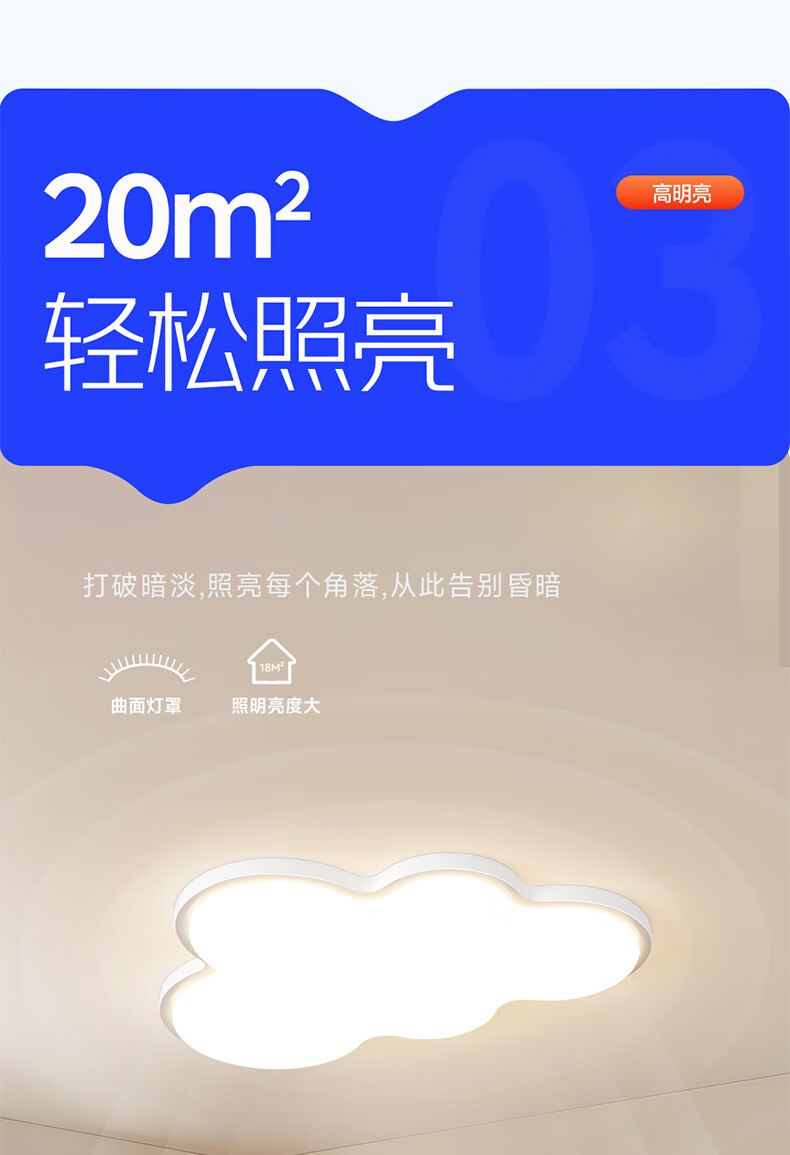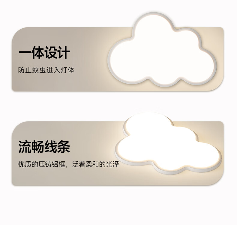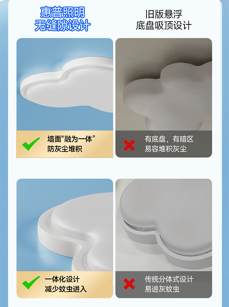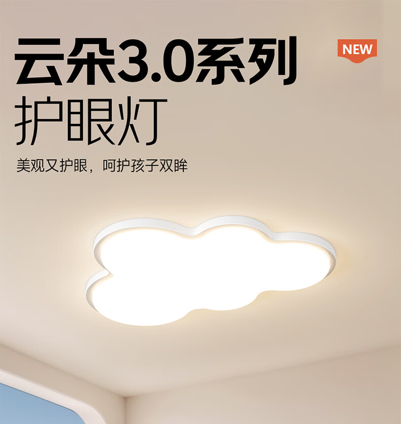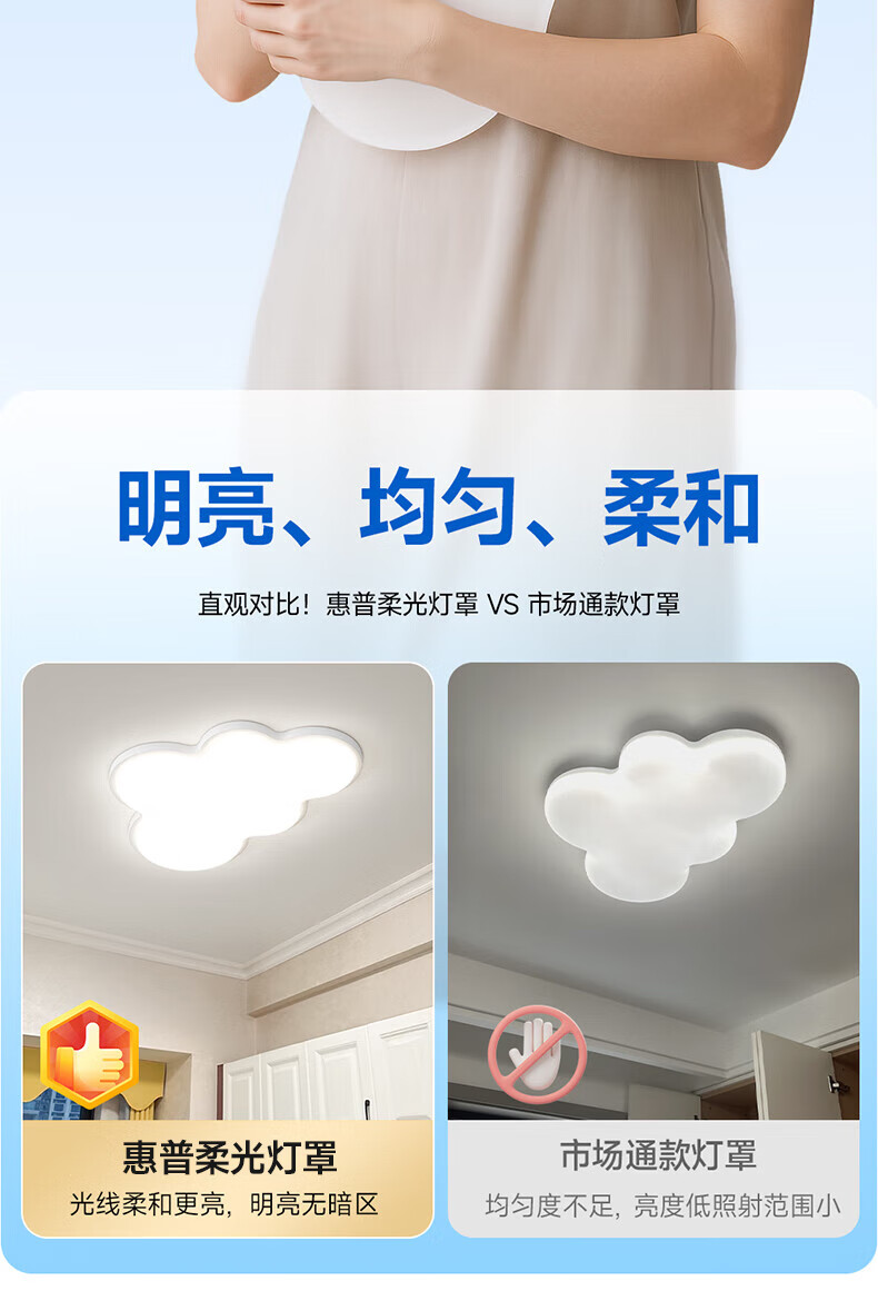 惠普普瑞护眼吸顶灯led卧室儿童房奶油风云朵灯中山灯具臻之光包安装