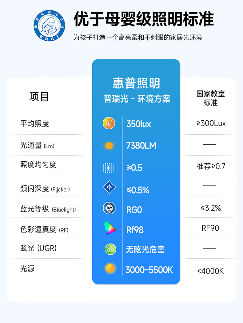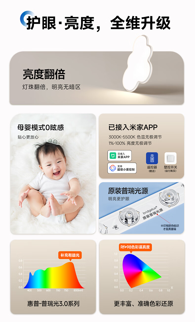 惠普普瑞护眼超薄无缝隙卧室吸顶灯智能儿童房灯中山灯具晨之光包安装