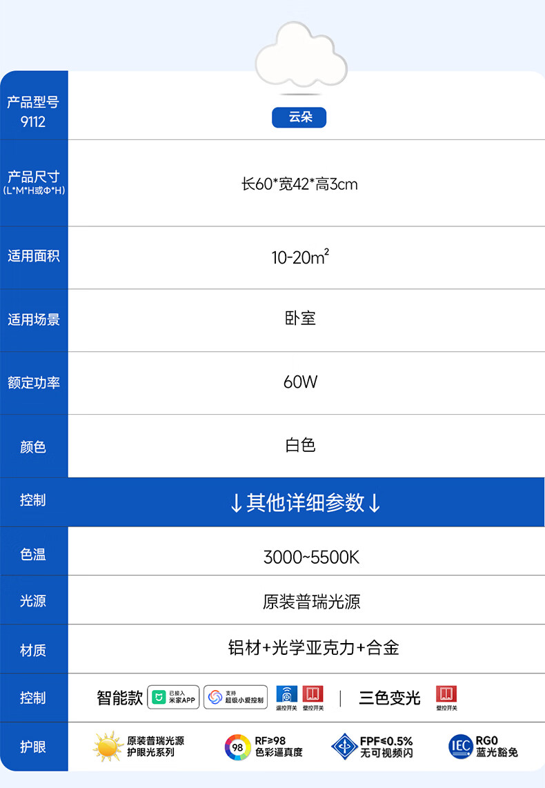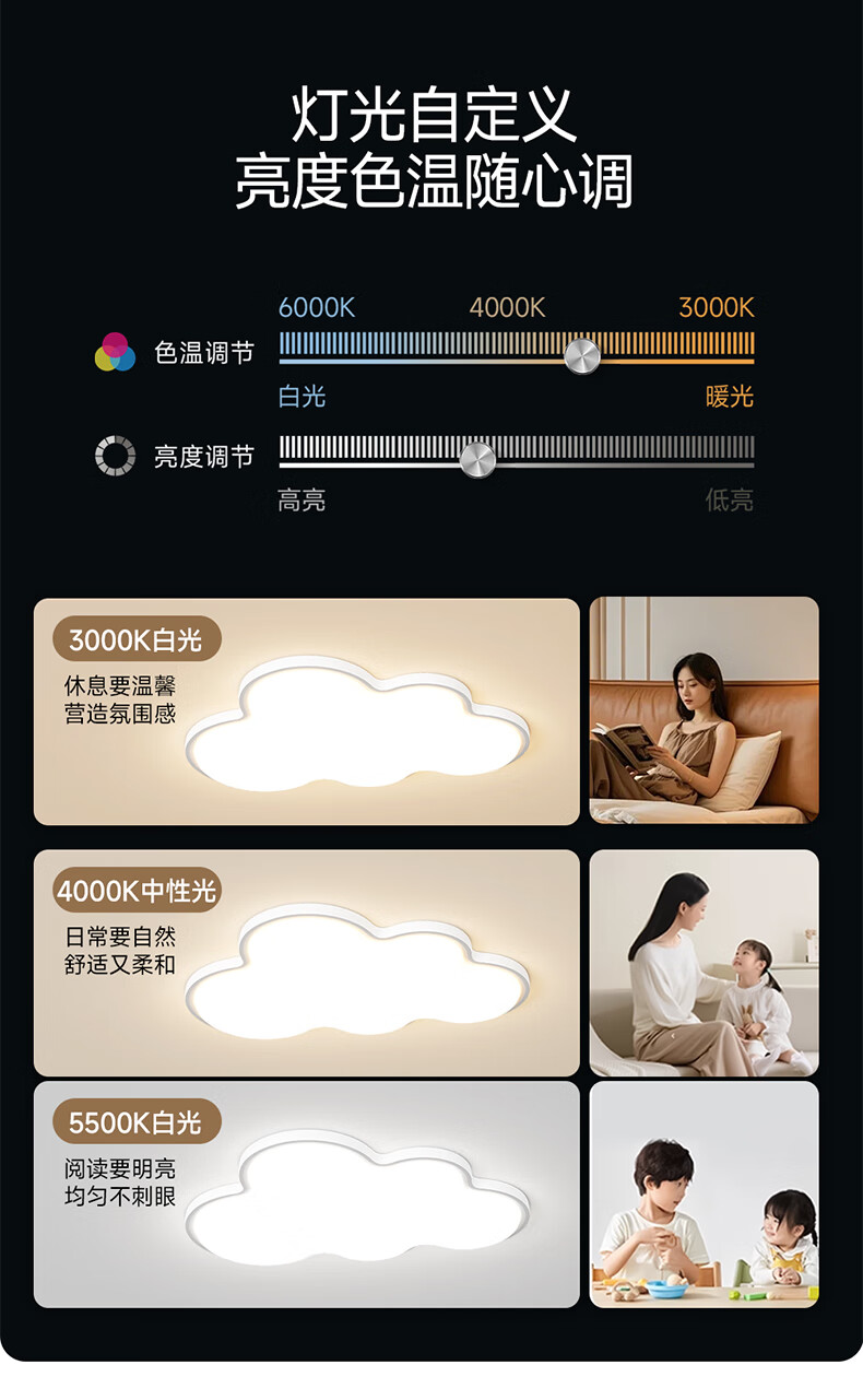 惠普普瑞护眼客厅大灯吸顶灯智控云朵奶油风全屋套餐中山臻之光包安装