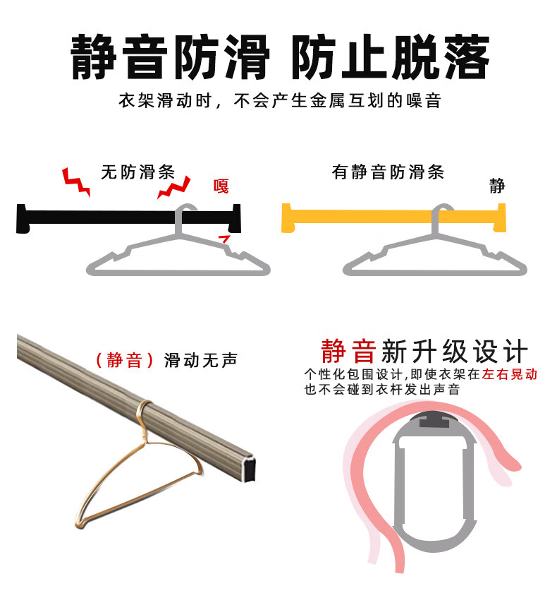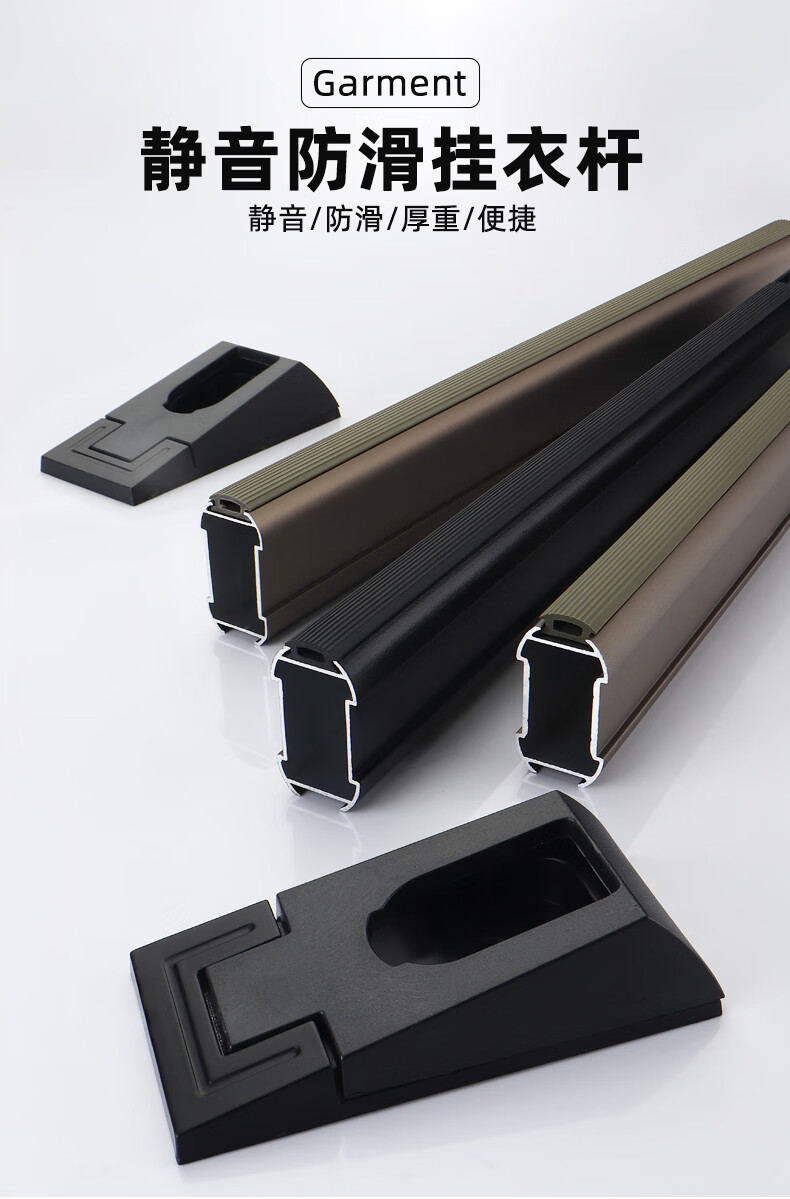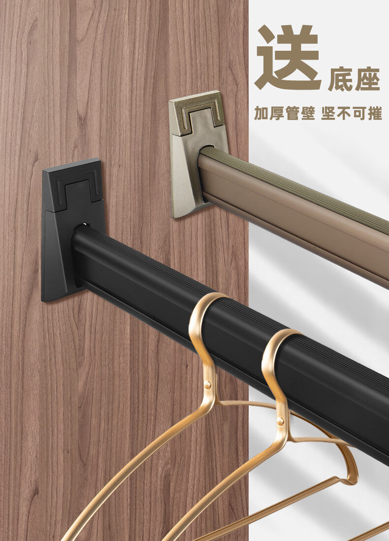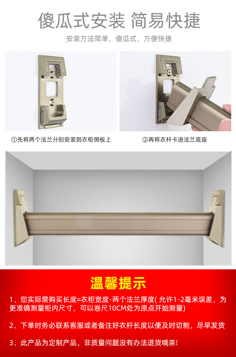固朵加厚防滑挂衣杆衣橱扁横杆衣通杆衣柜挂衣杆挂衣杆柜内法兰超厚 香槟色31-50CM【送法兰】